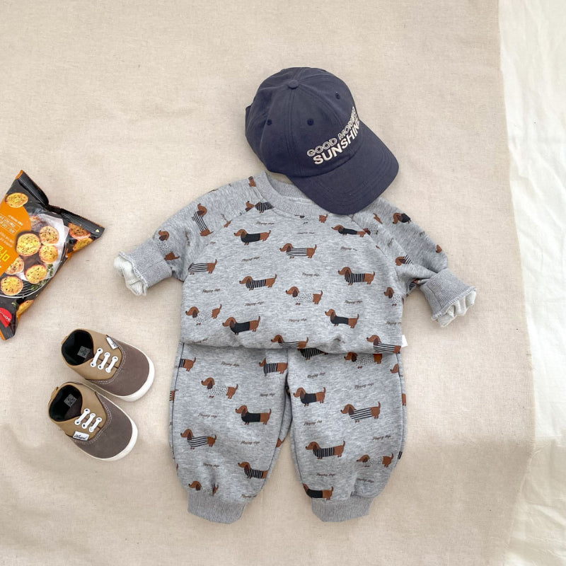 【BABY&KID】キュートなダックスフンドプリントセットアップSK092721