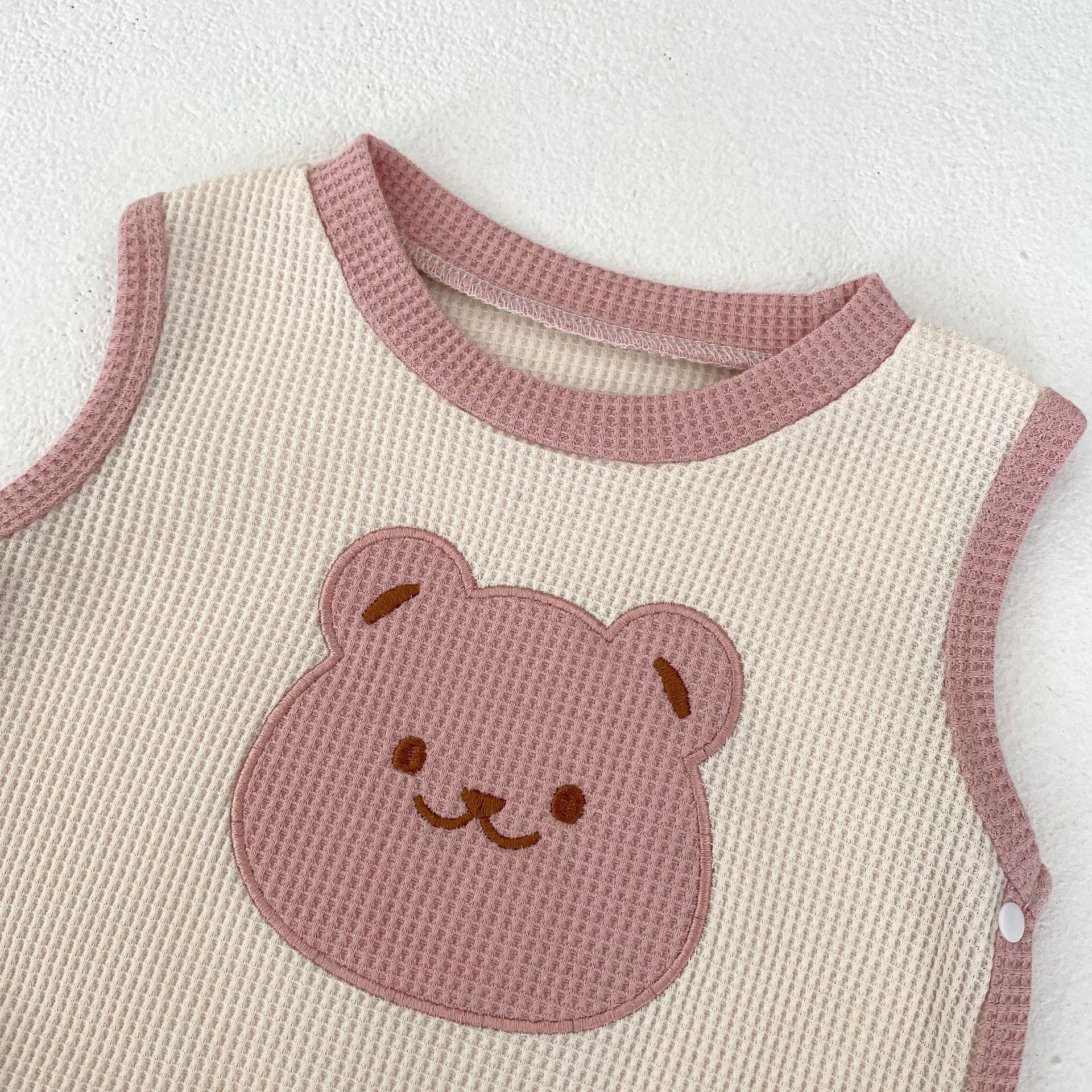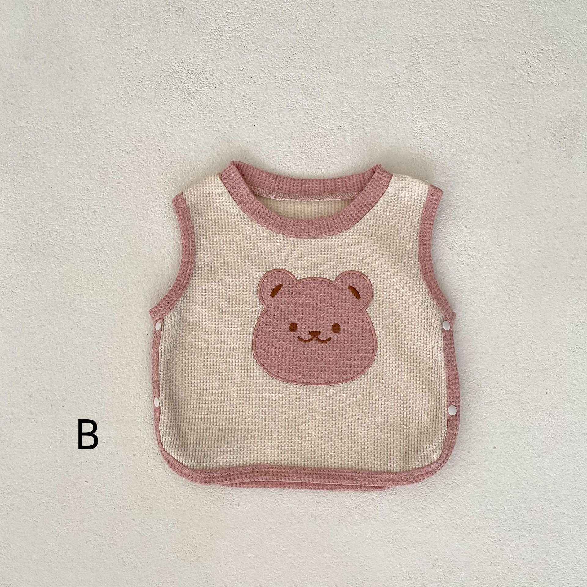【BABY&KID】クマ柄ベスト、カジュアル無地トップス、クマ柄レギンスSK022218