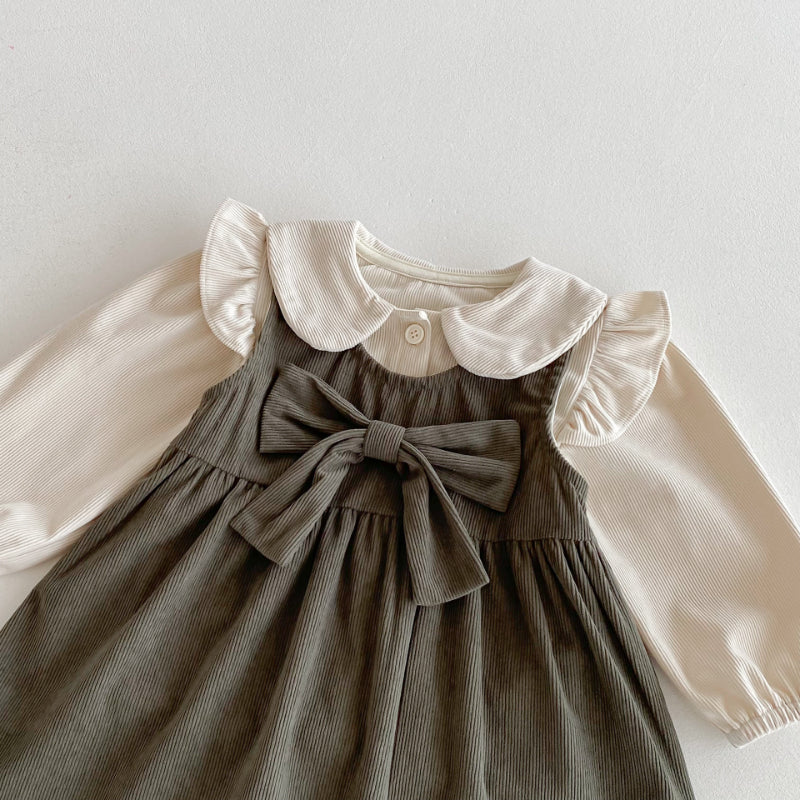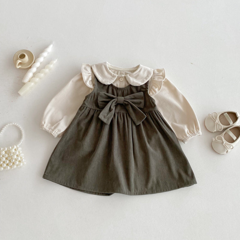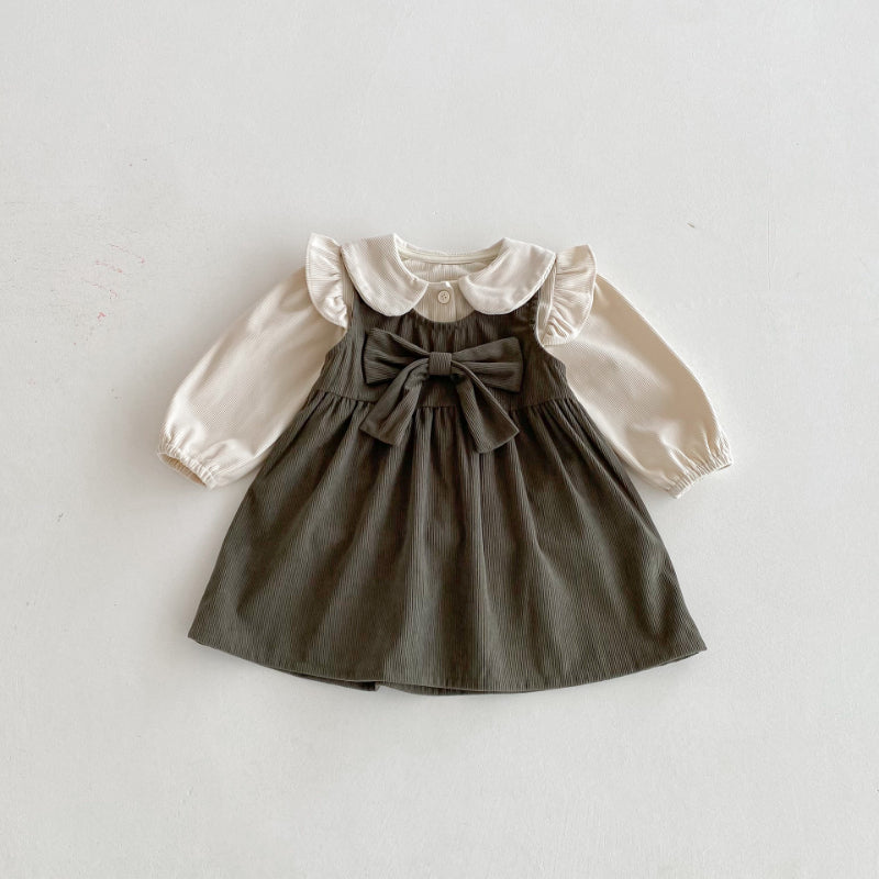 【BABY&KID】コーデュロイ蝶結びワンピース/ベージュトップスSK011027