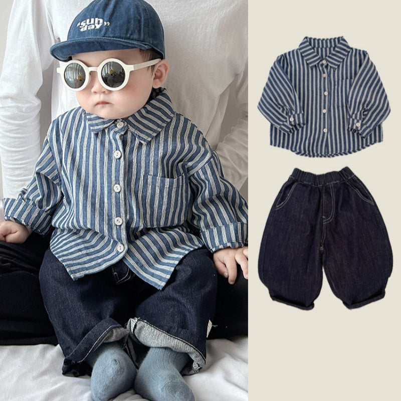 【BABY&KID】ストライプシャツ、デニムパンツSK100221