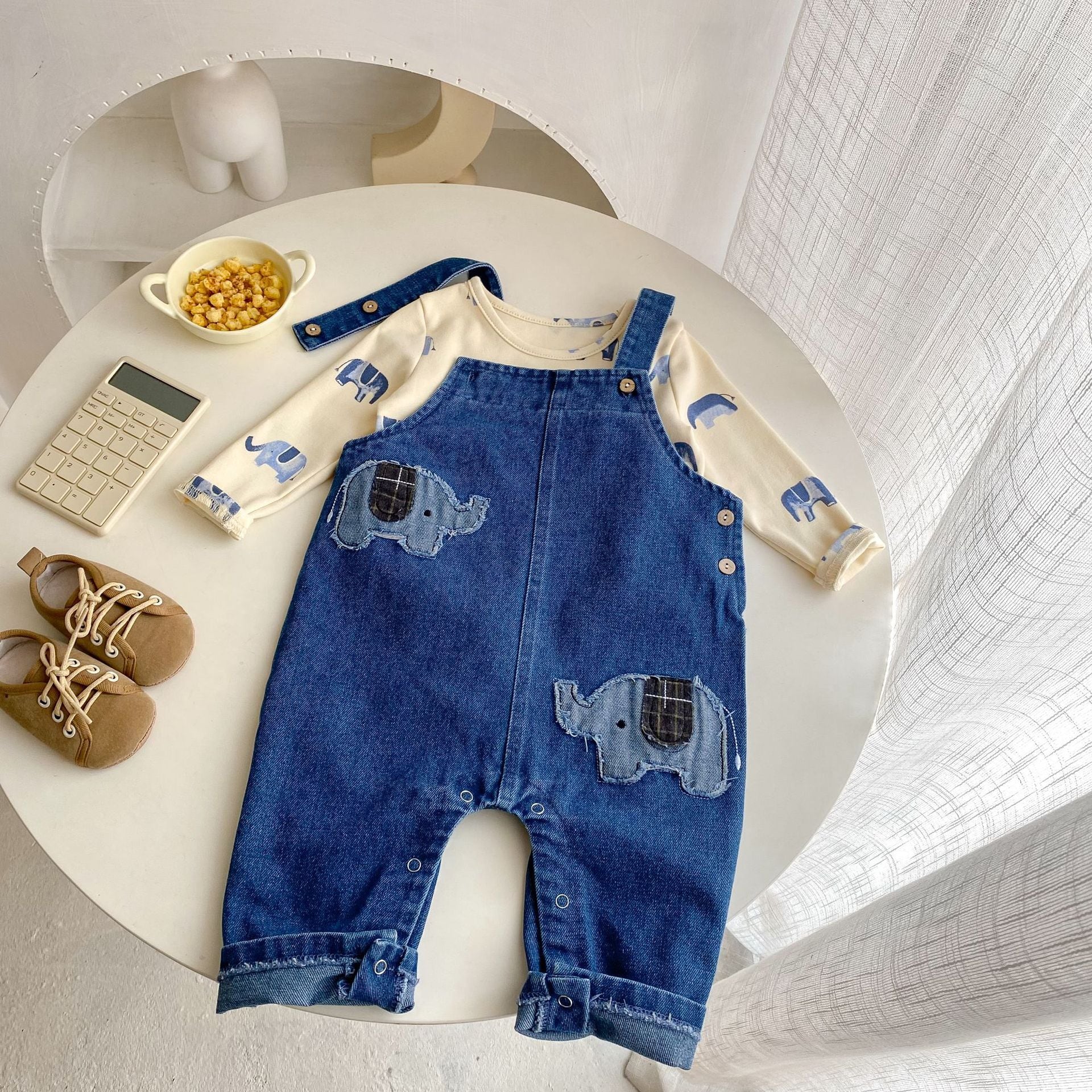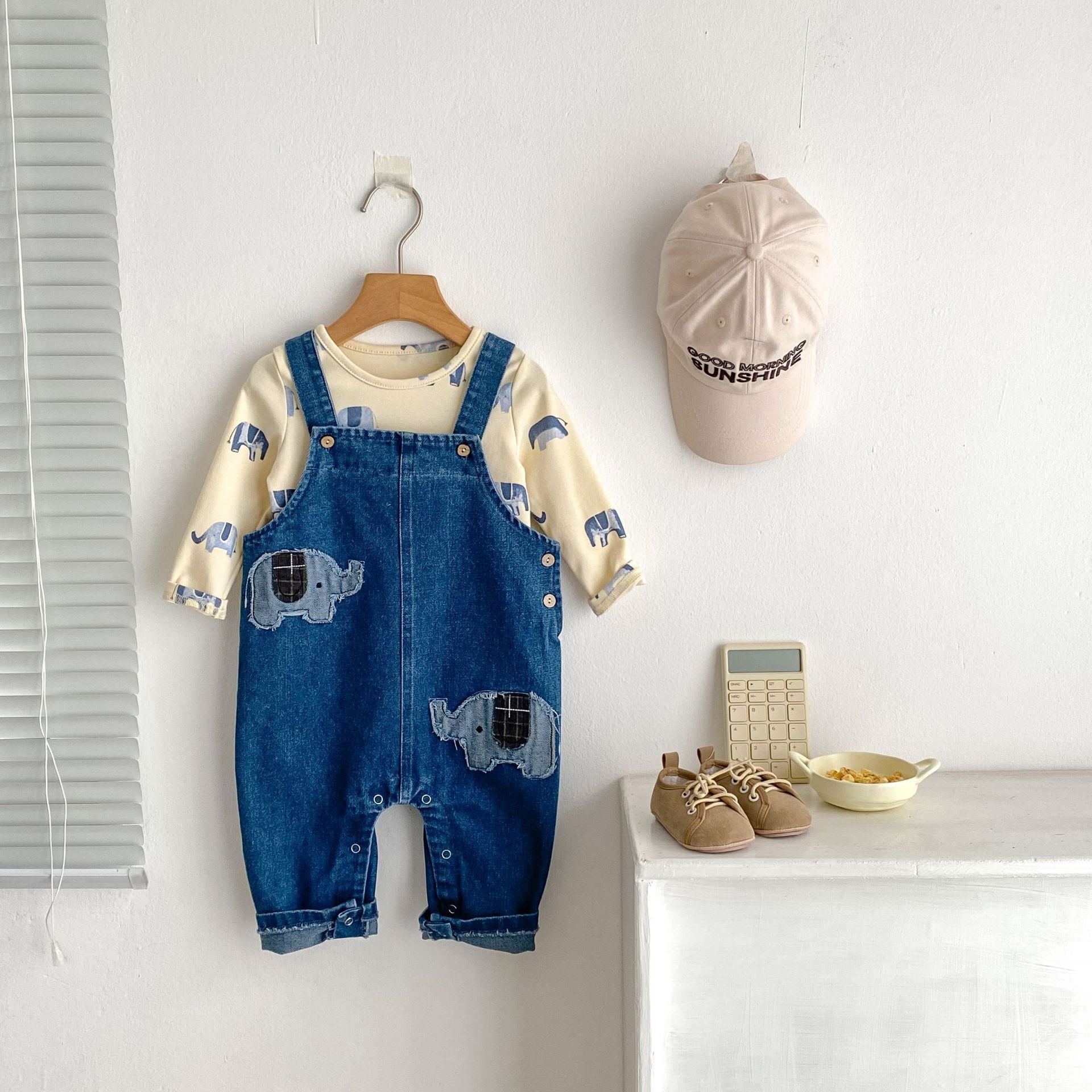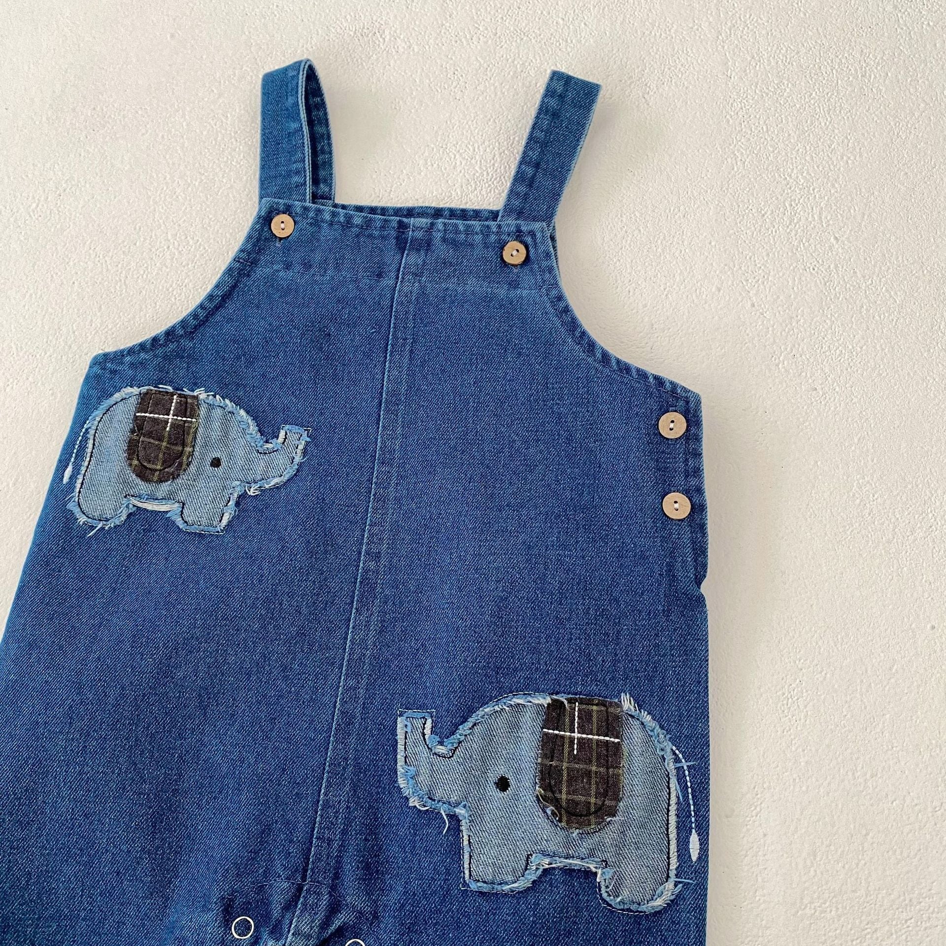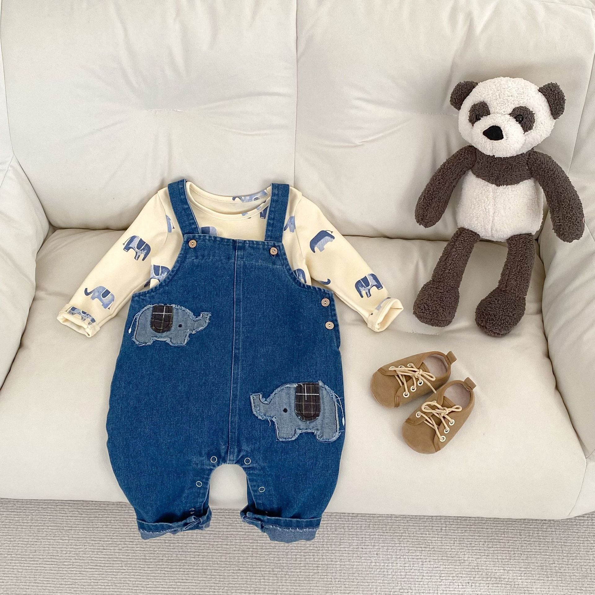【BABY&KID】ゾウ柄デニムサロペット、ゾウ柄TシャツSK062403