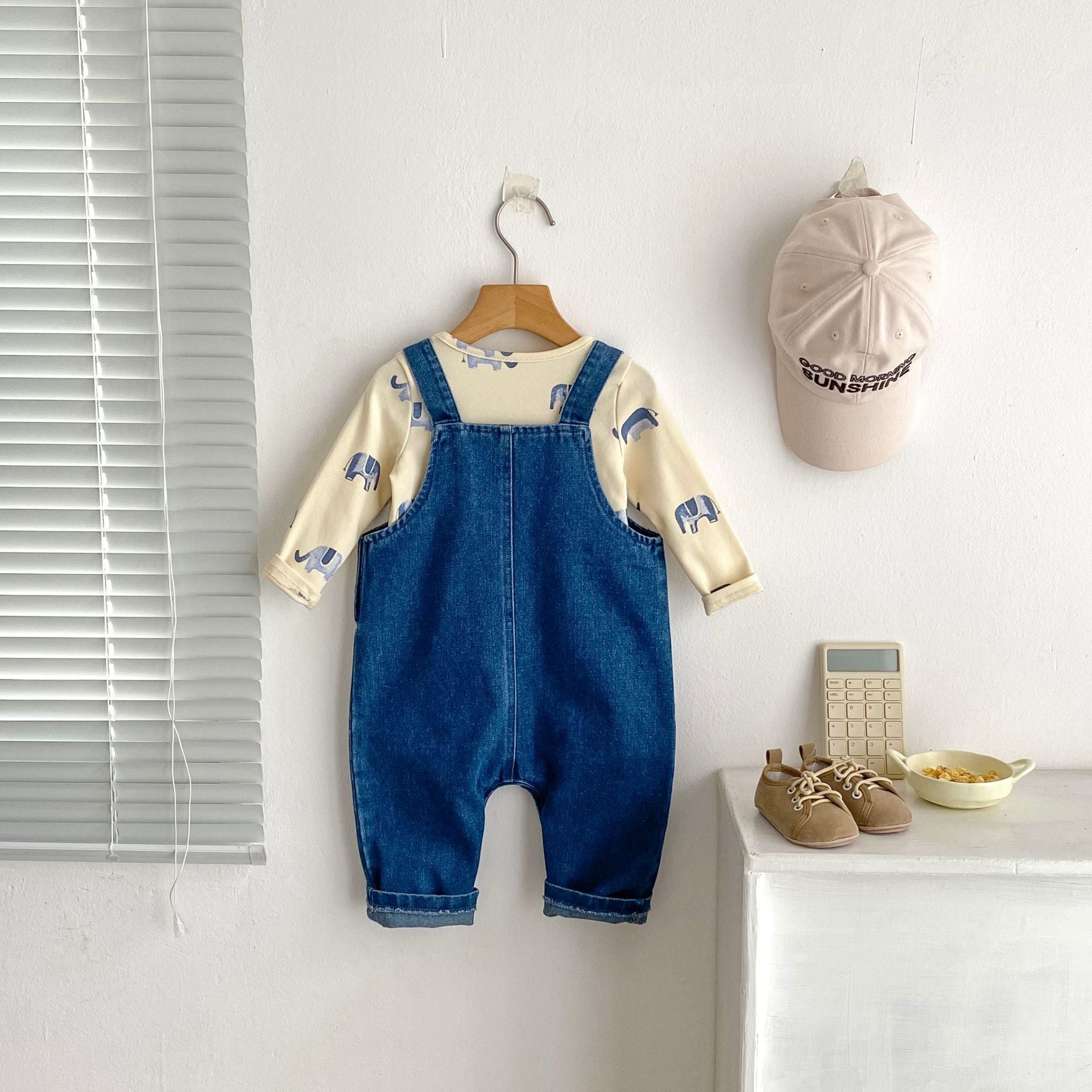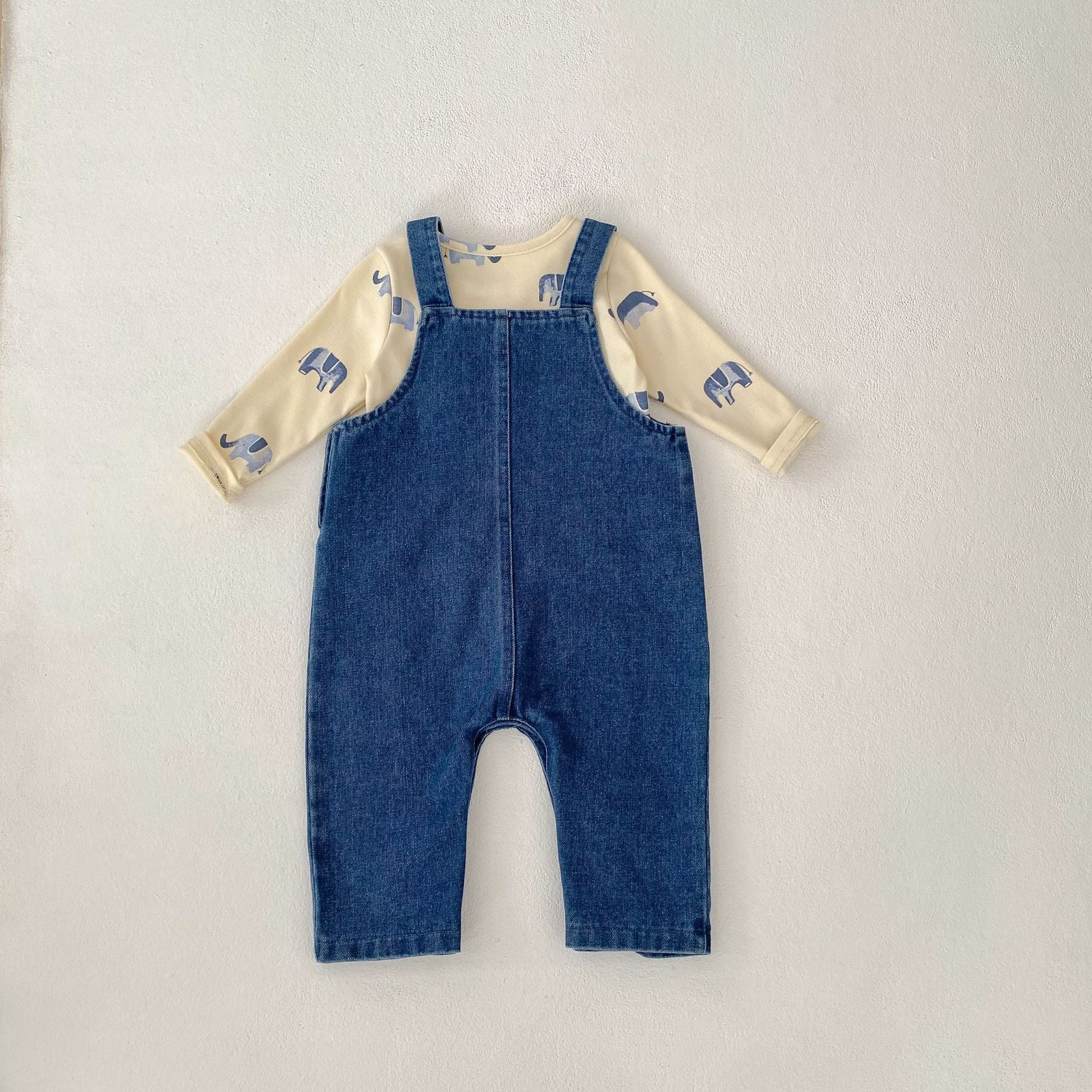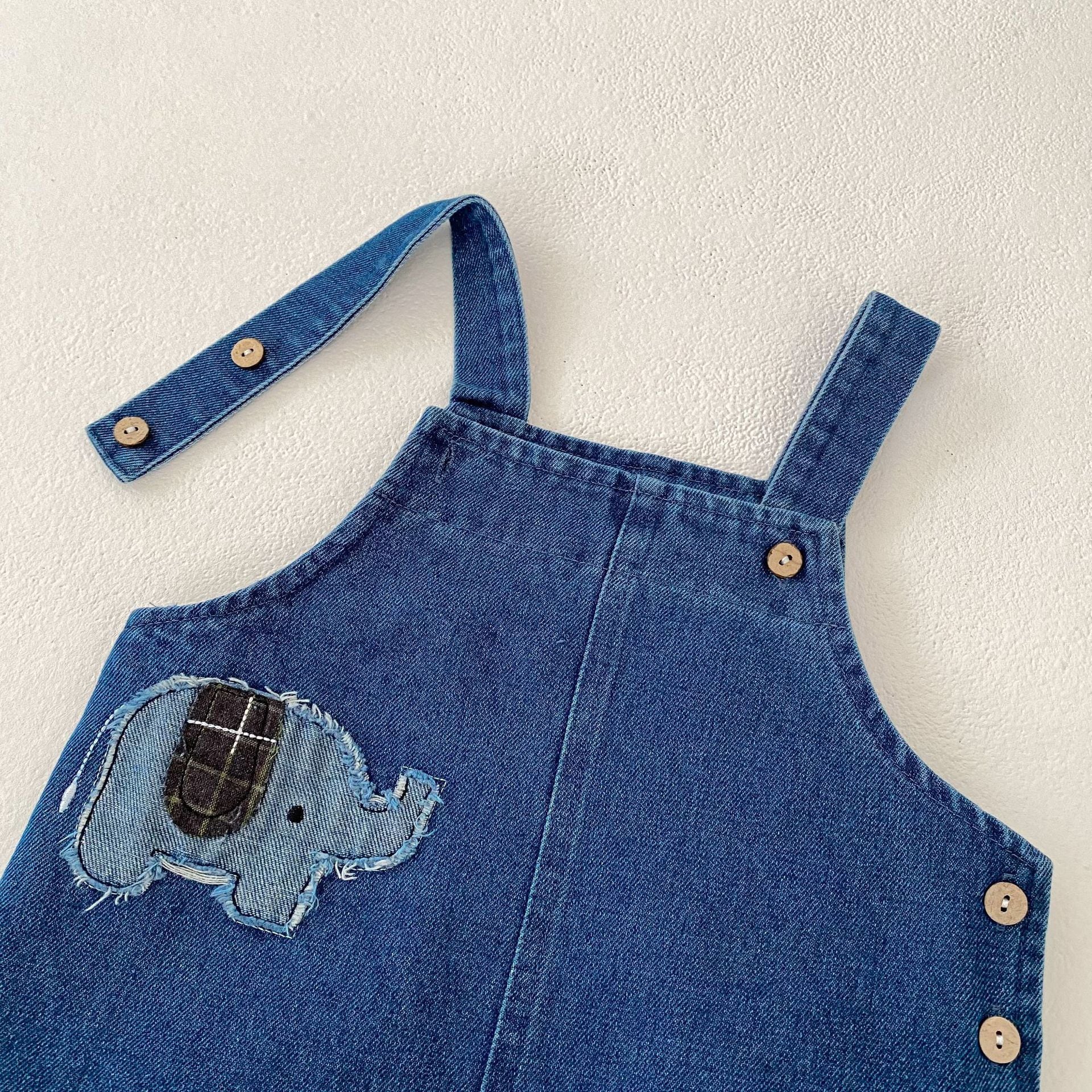 【BABY&KID】ゾウ柄デニムサロペット、ゾウ柄TシャツSK062403