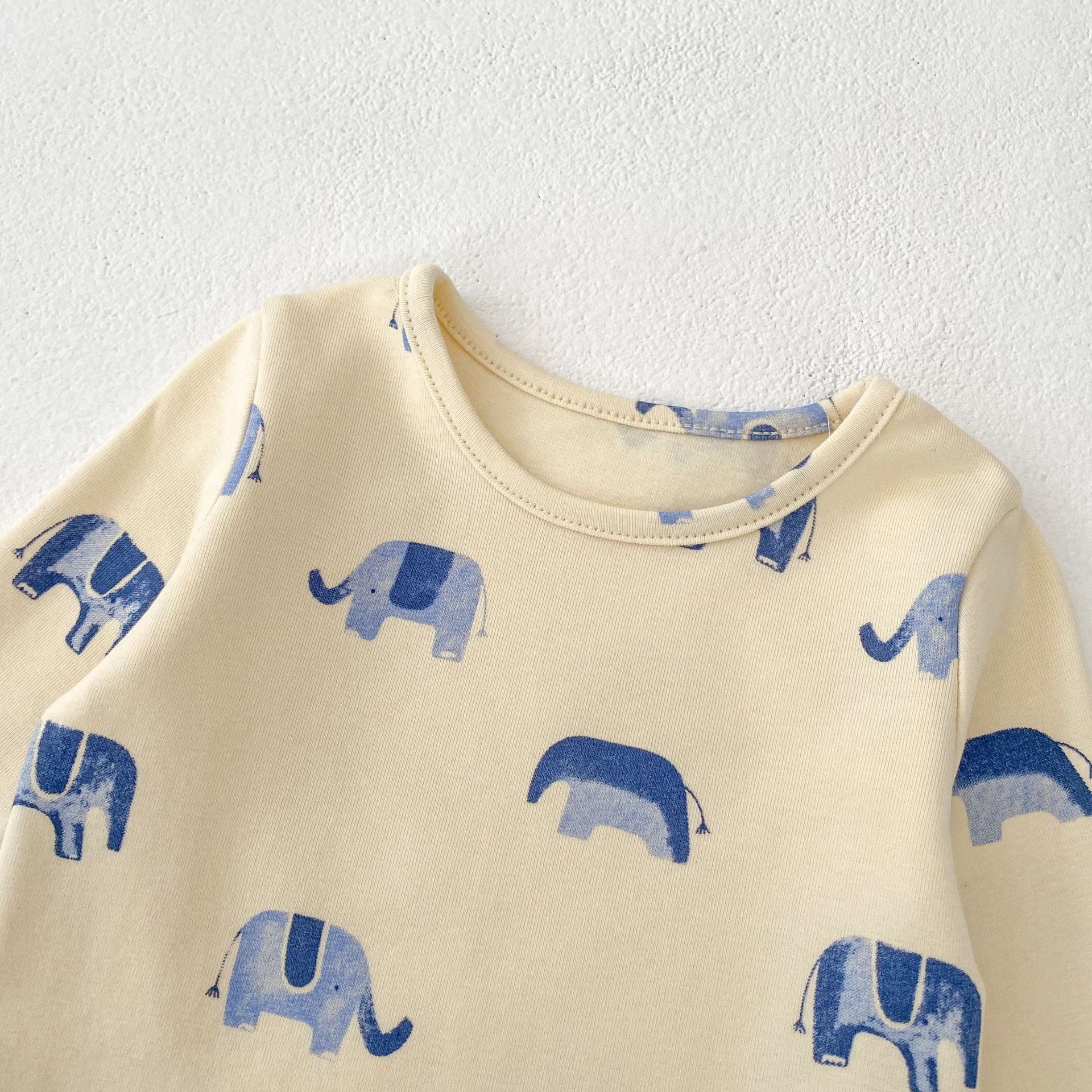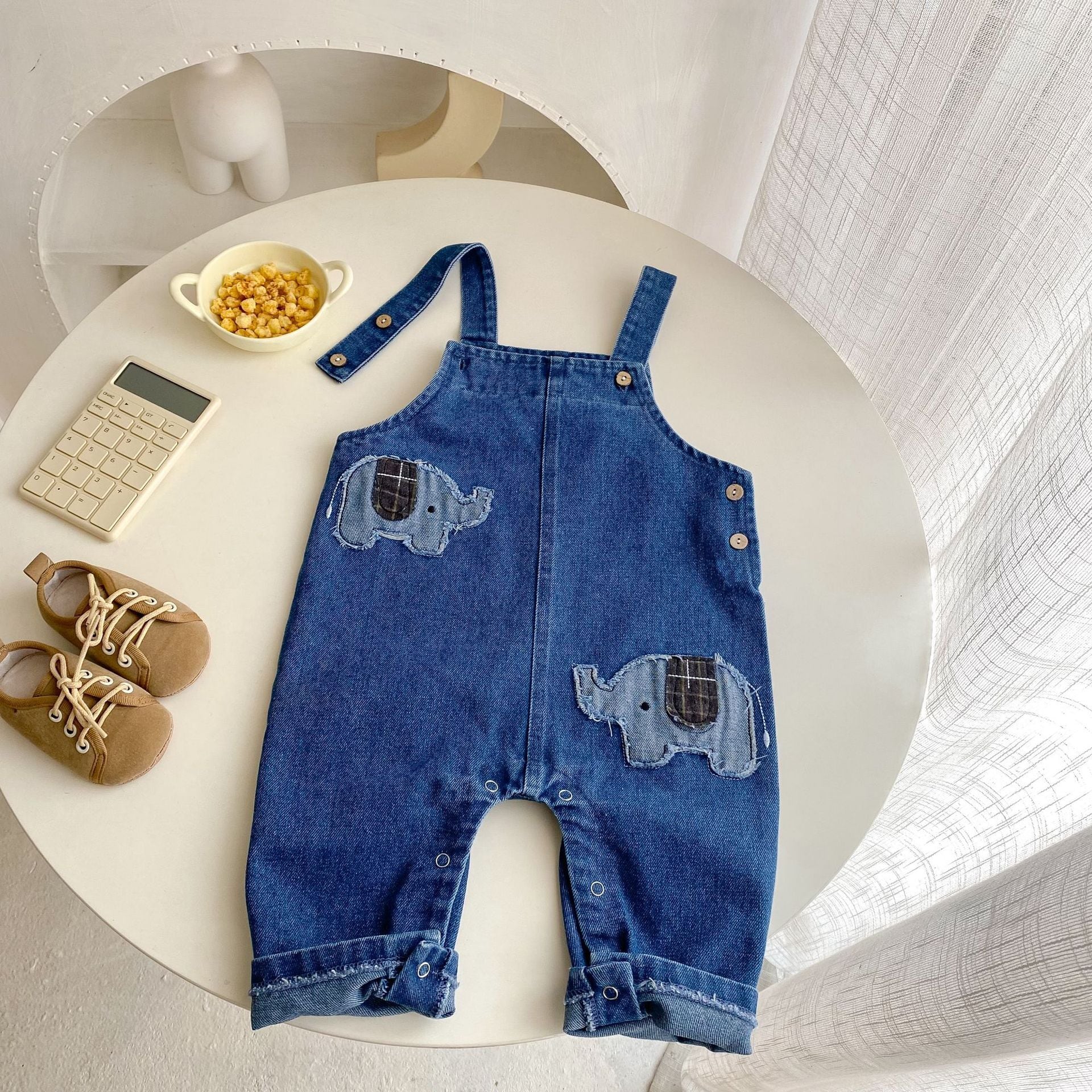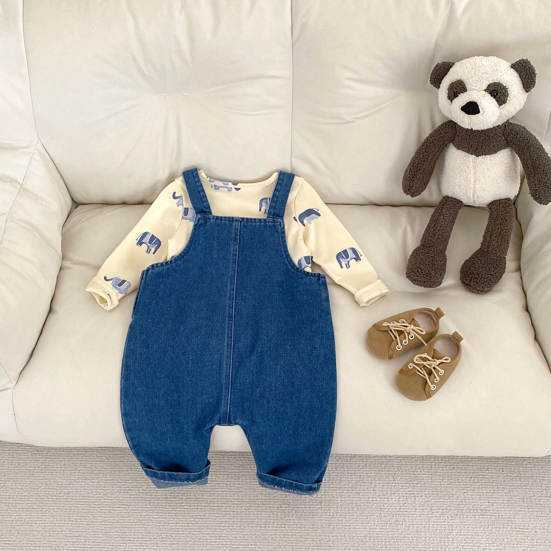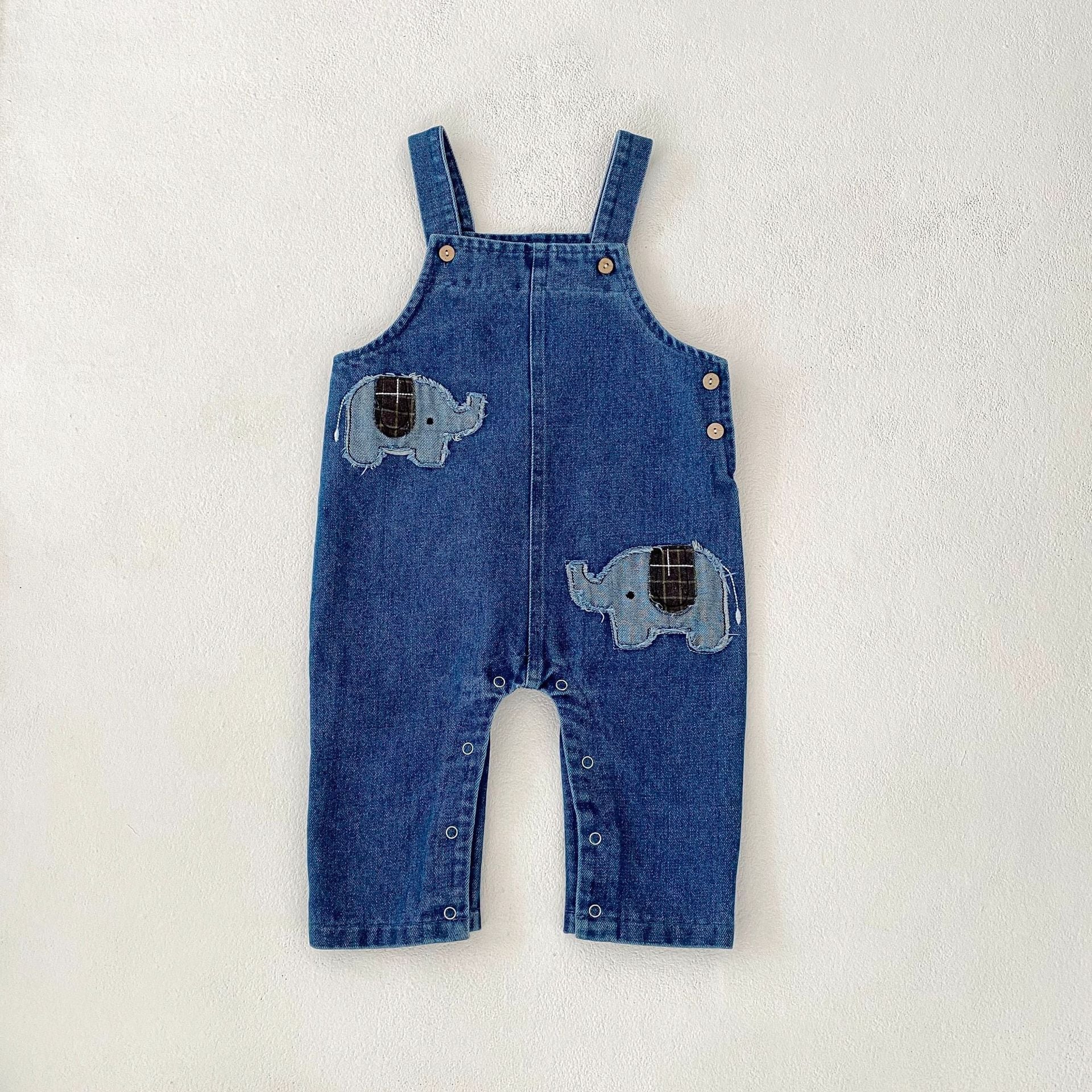 【BABY&KID】ゾウ柄デニムサロペット、ゾウ柄TシャツSK062403