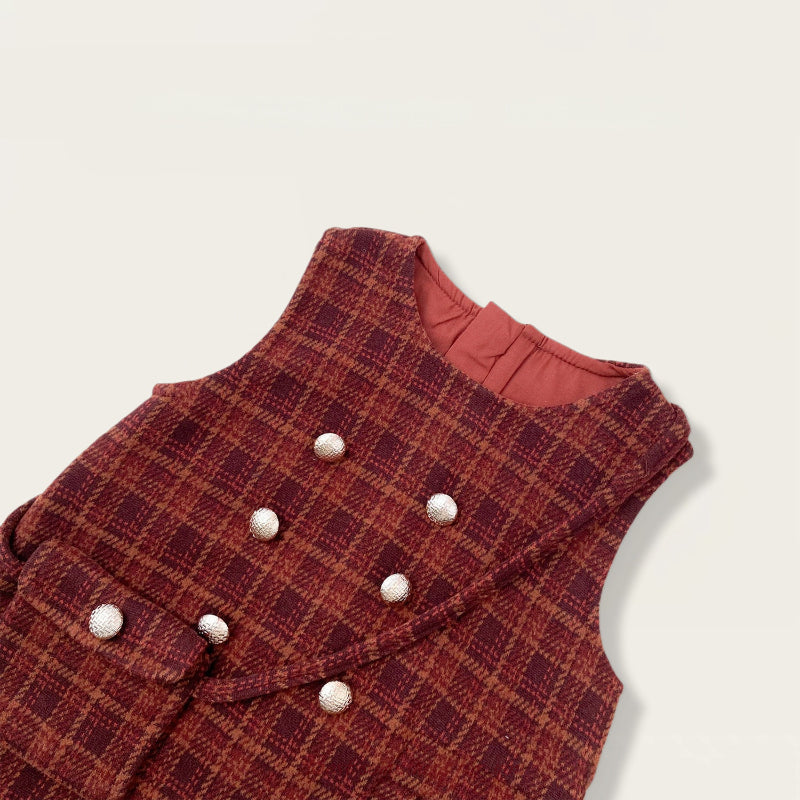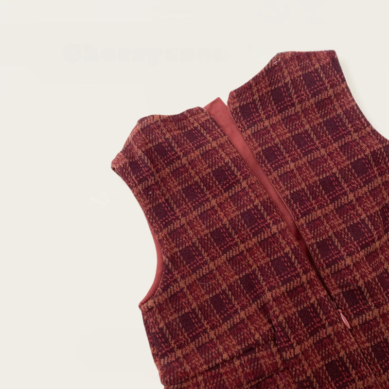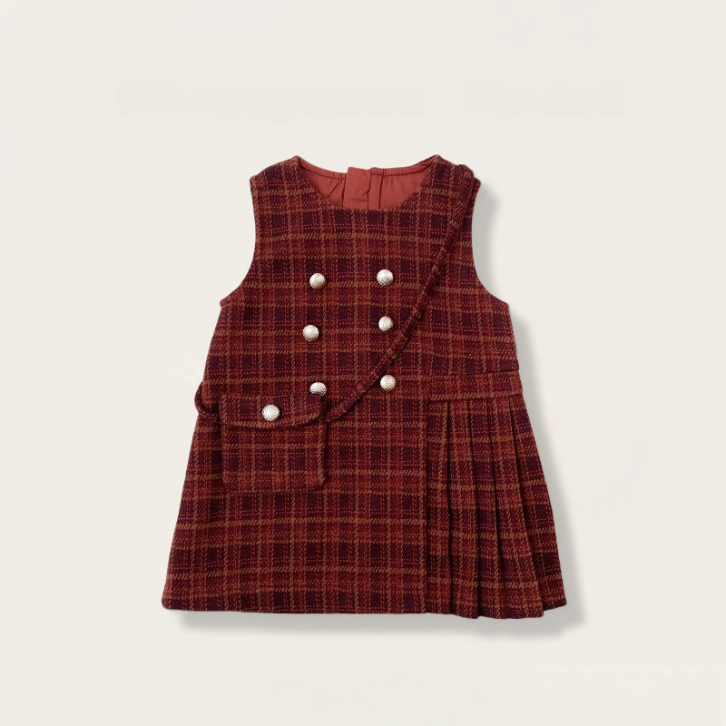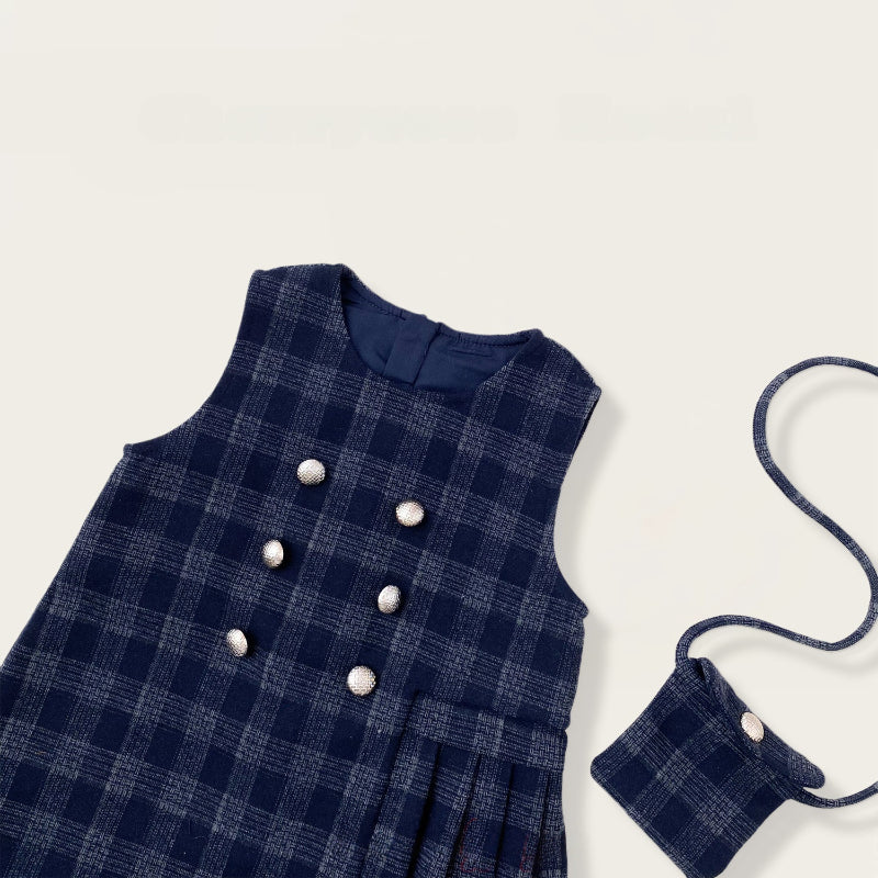【BABY&KID】冬新作 チェックジャンパースカート&フリルニット&バッグ3点セットSK102430