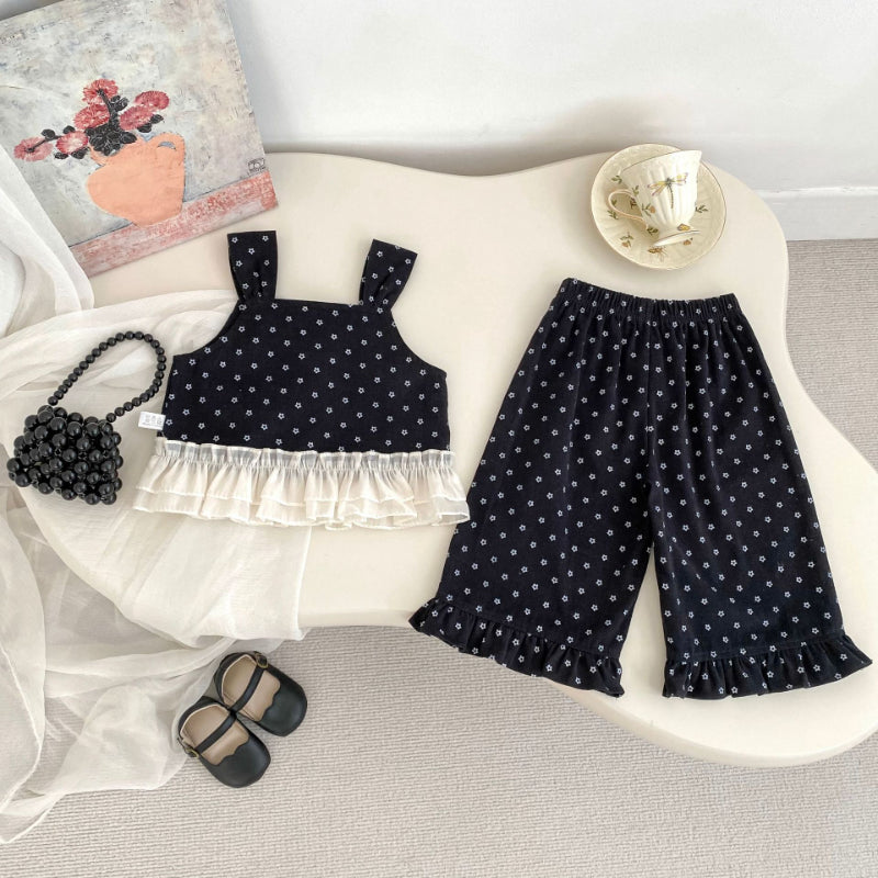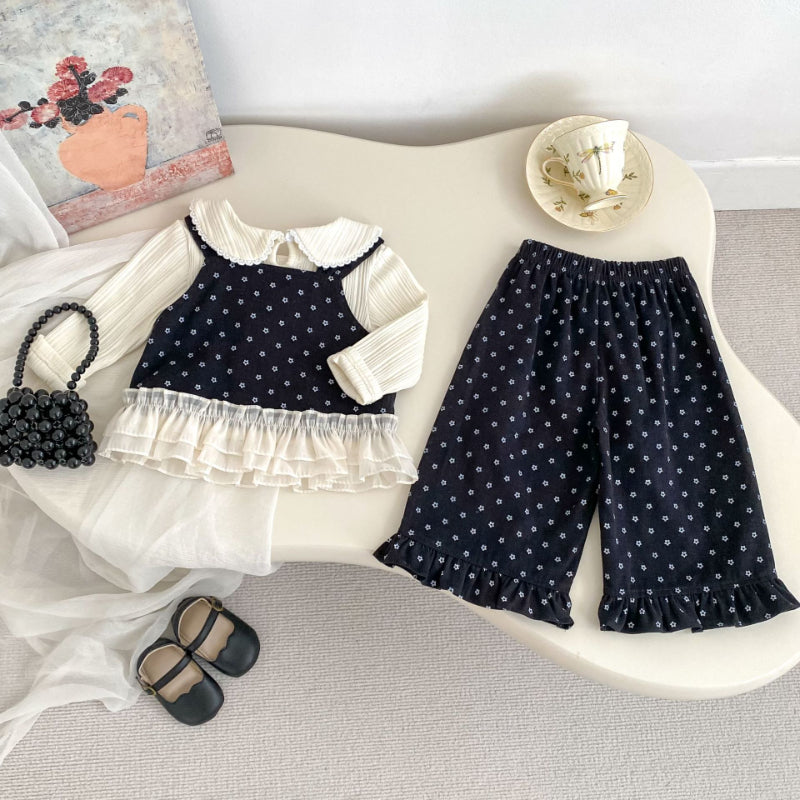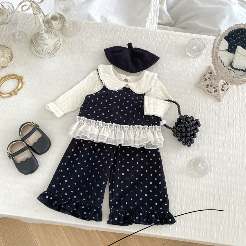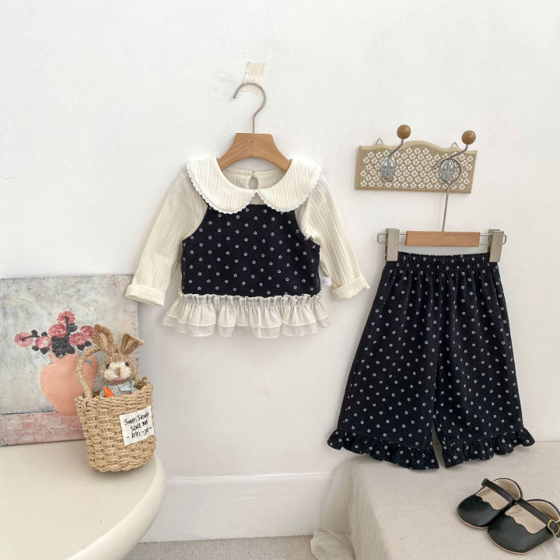 【BABY&KID】フリル裾ベスト&パンツ、レースドールカラーブラウスSK100844