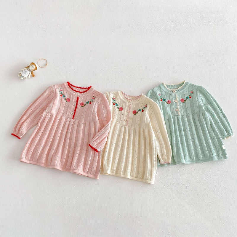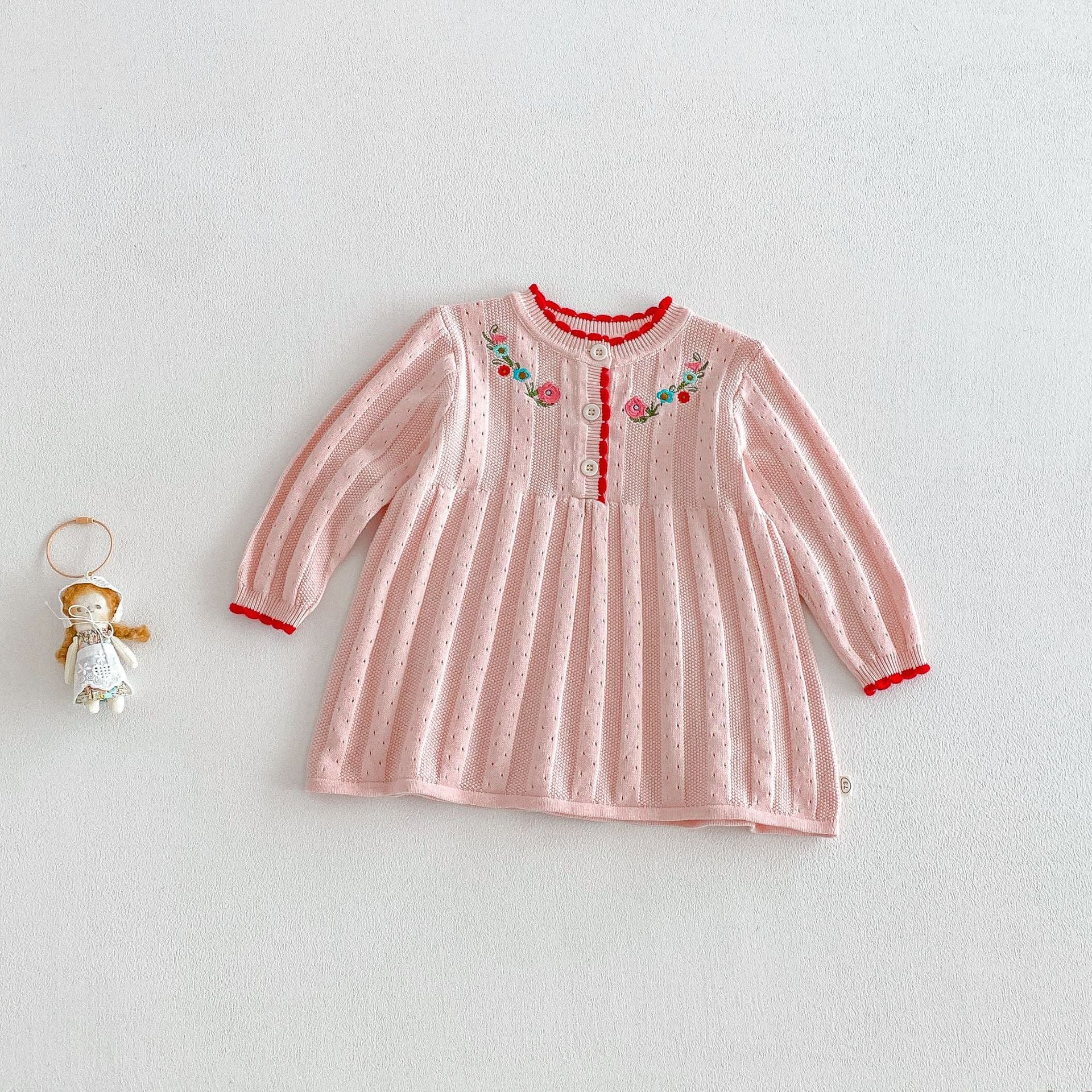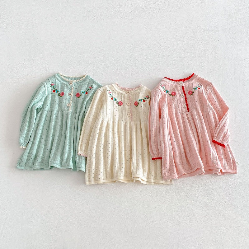【BABY&KID】フリル襟花刺繍ニットワンピースSK104119