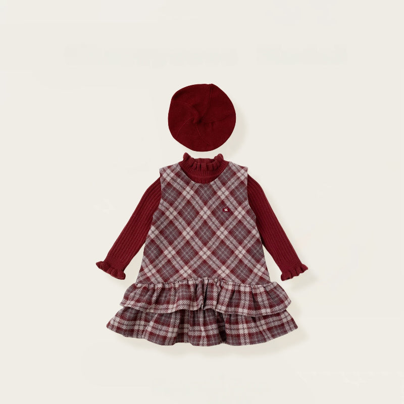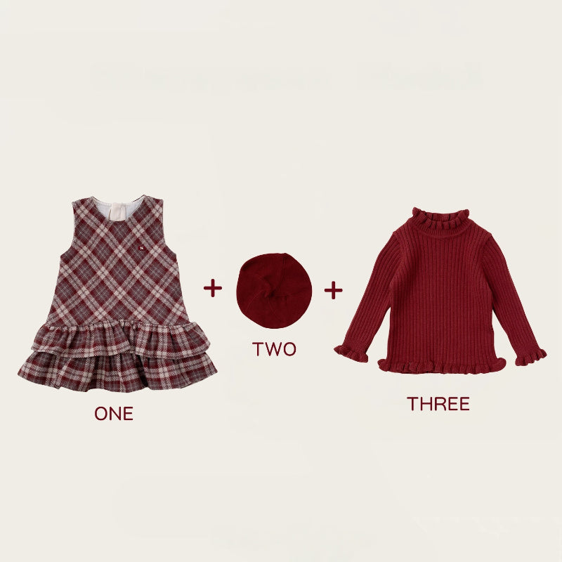 【BABY&KID】冬新作 プリンセス風ジャンパースカート&ニット&帽子3点セットSK102422