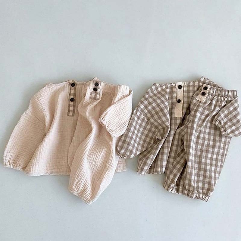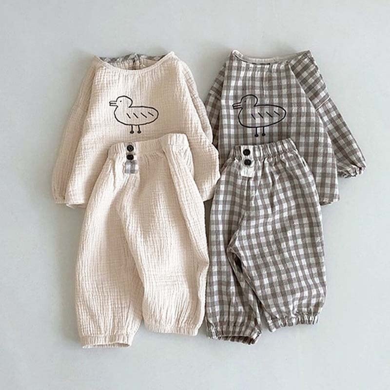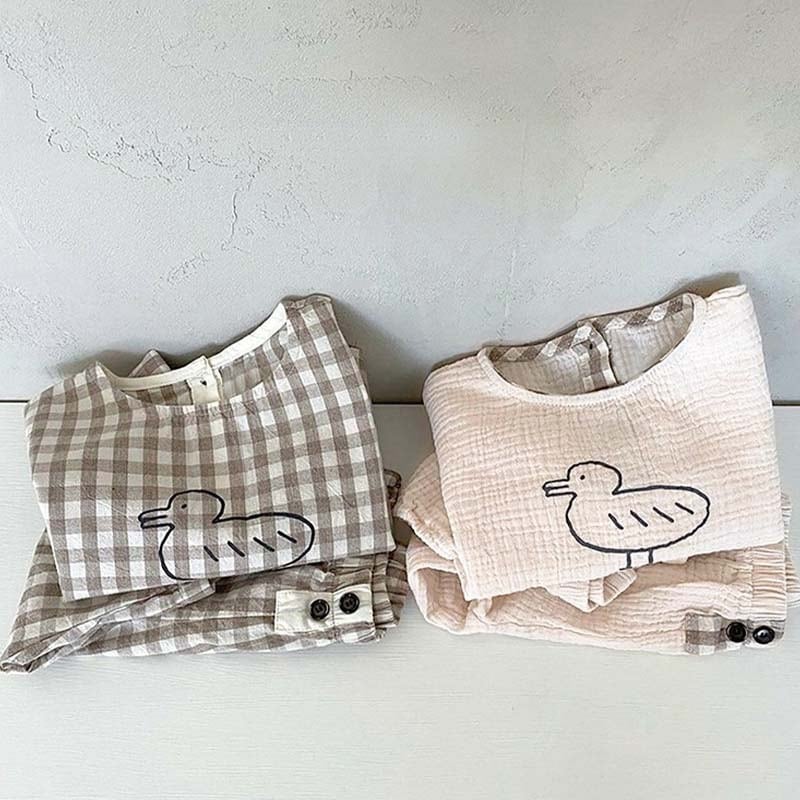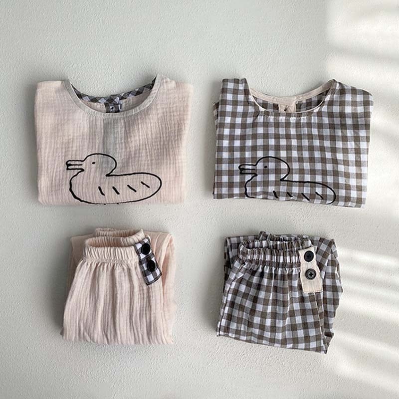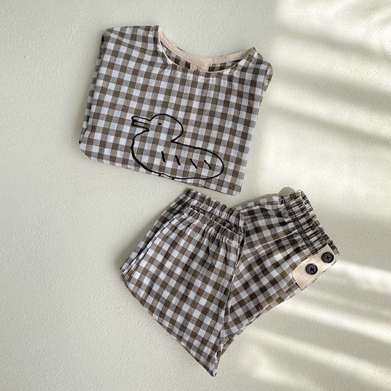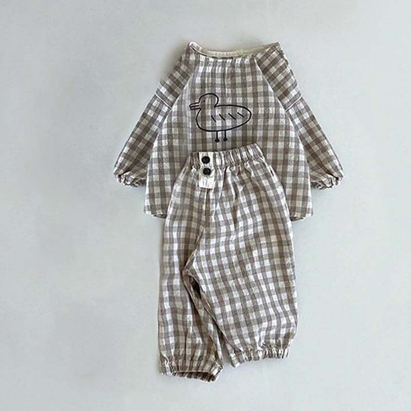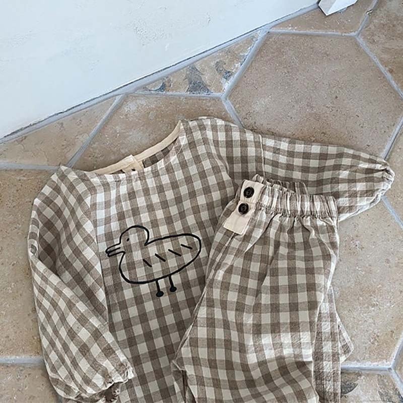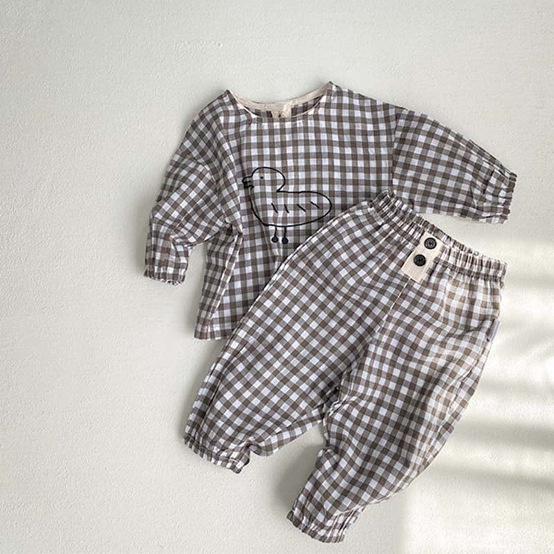 【BABY&KID】ミニマリズムレトロアヒルチェック柄セットアップSK062105