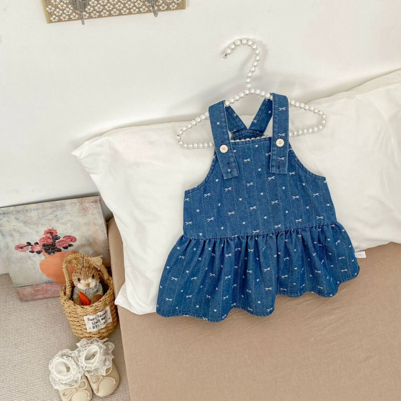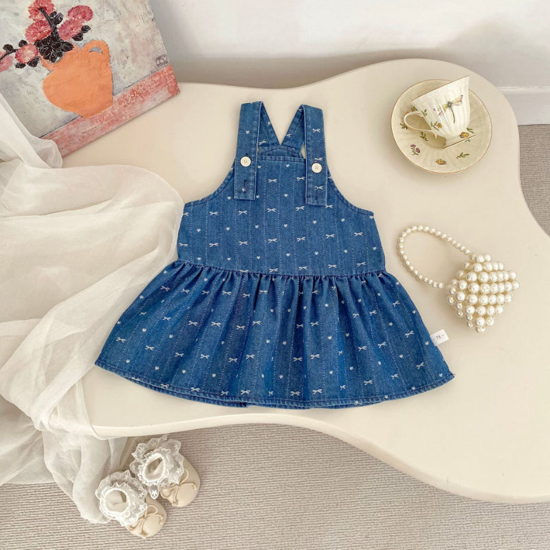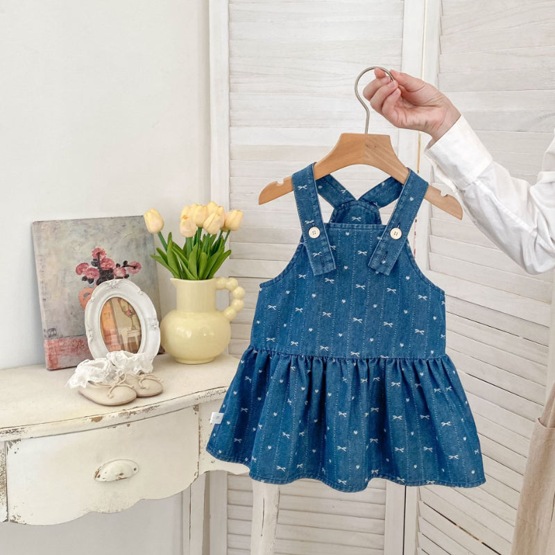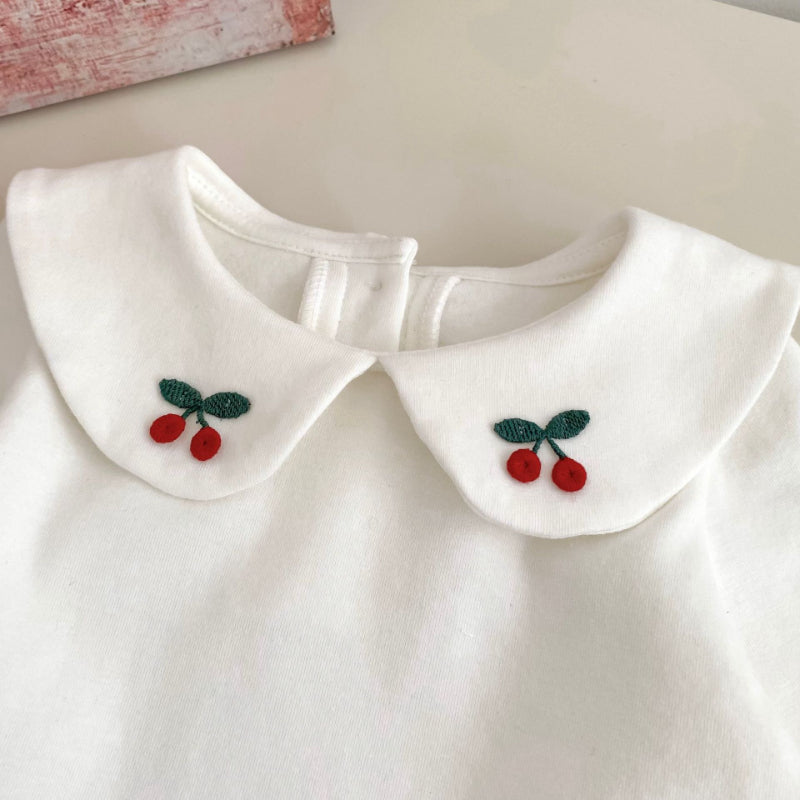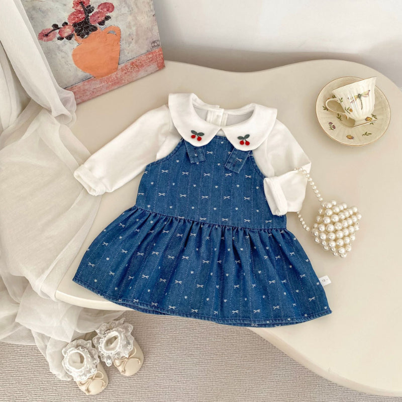 【BABY&KID】リボンジャンパースカート、さくらんぼ刺繍襟TシャツSK100843
