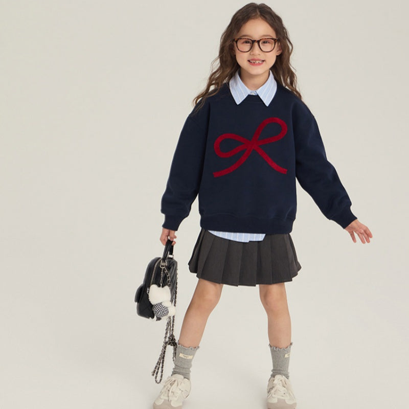【BABY&KID】リボンスウェット&ボーダーシャツ&スカート3点セットSK102433