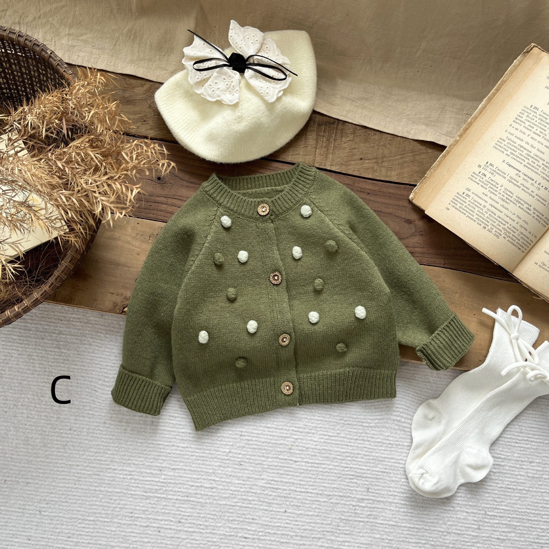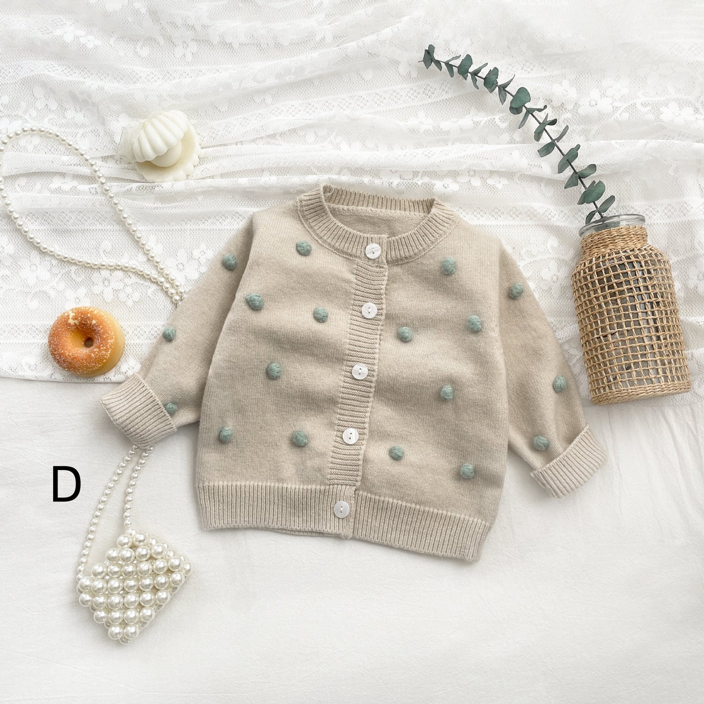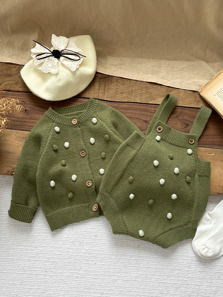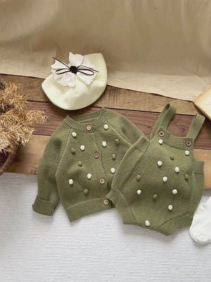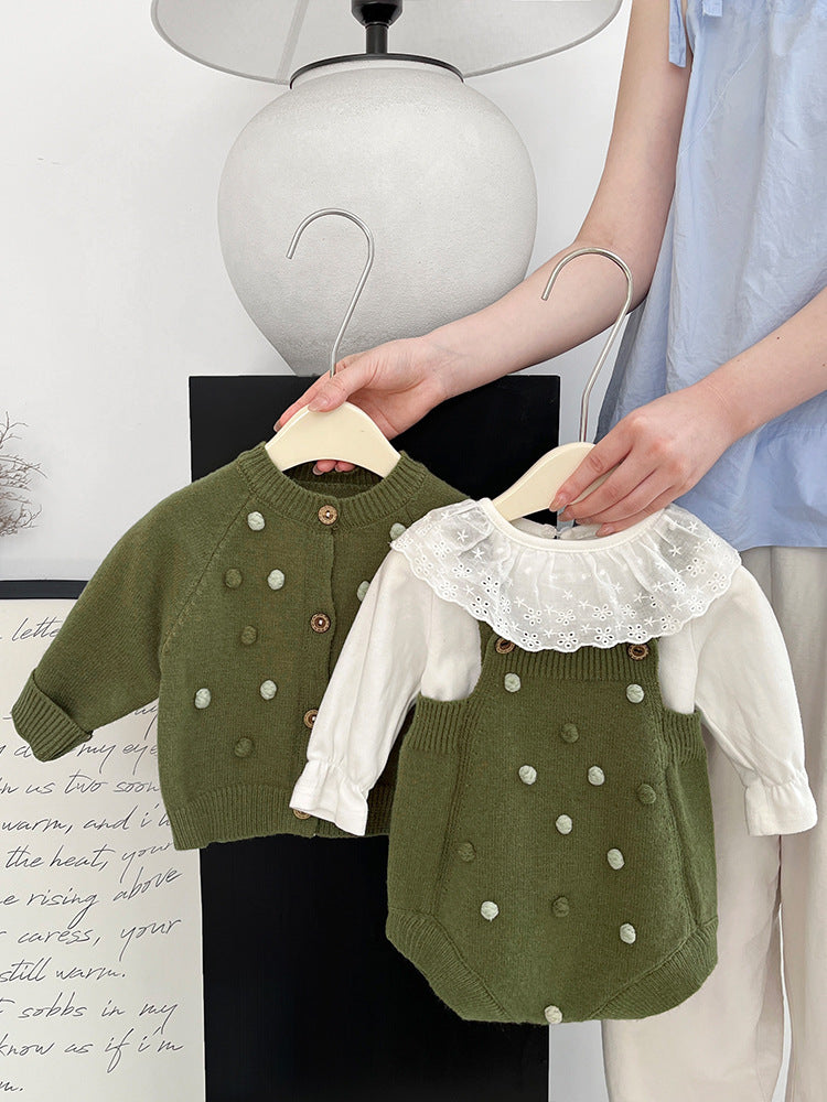 【BABY&KID】レトロポンポン付きカーディガン、サロペットSK022206
