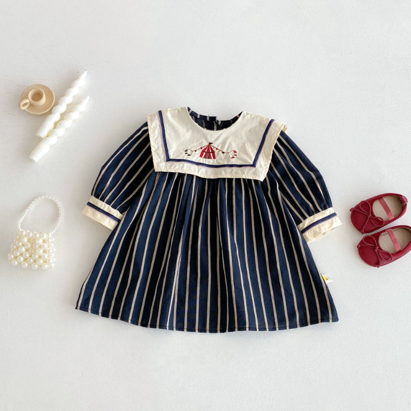 【BABY&KID】レトロ刺繍ストライプワンピースSK092325