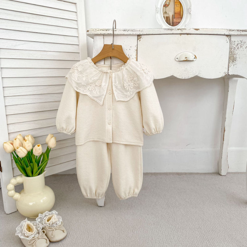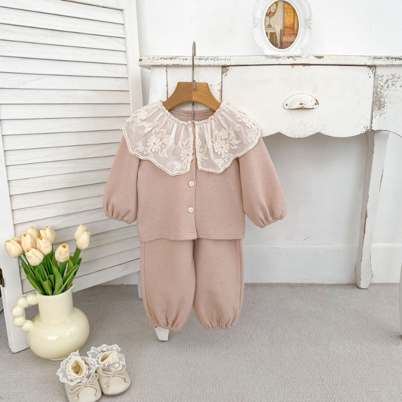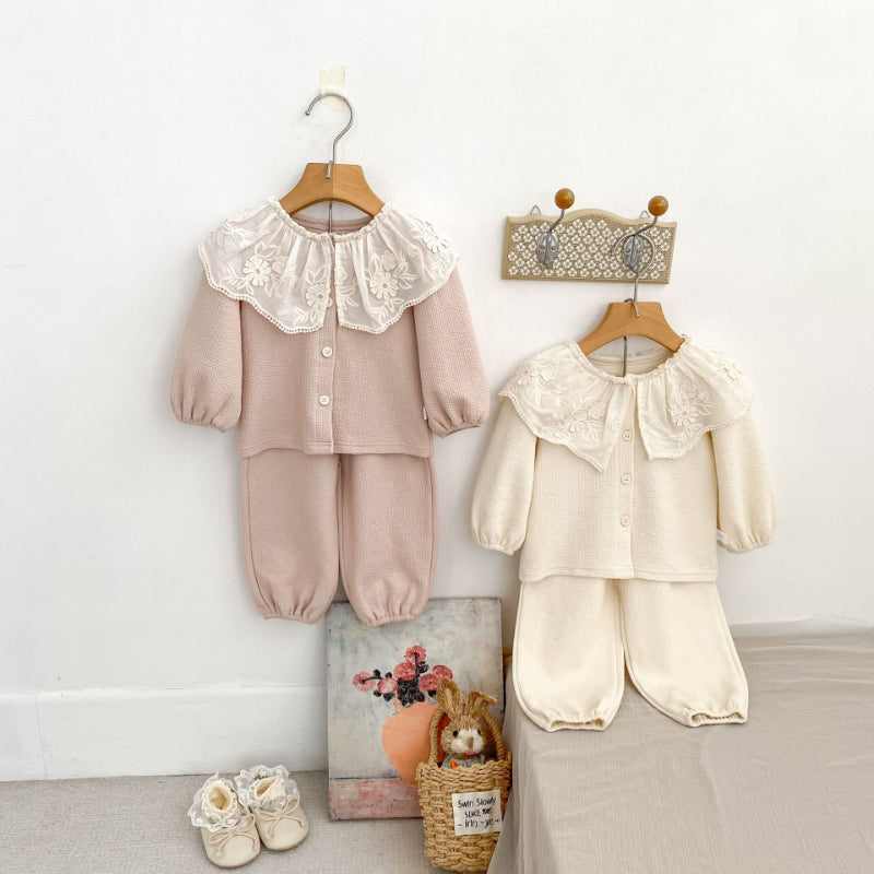 【BABY&KID】レースフリル襟カーディガン&パンツセットアップSK100828
