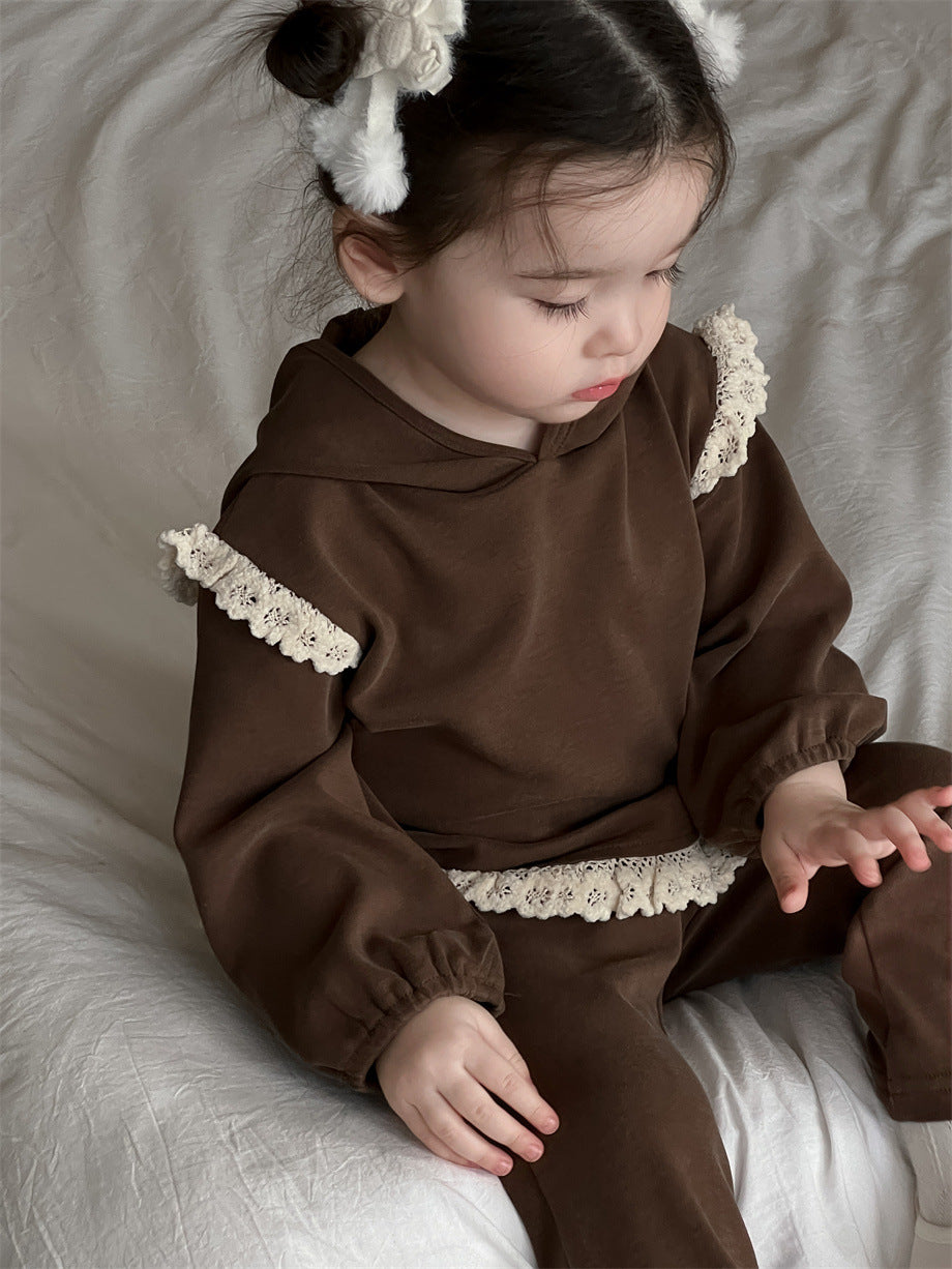 【BABY&KID】レース無地トップス&パンツセットSK012405