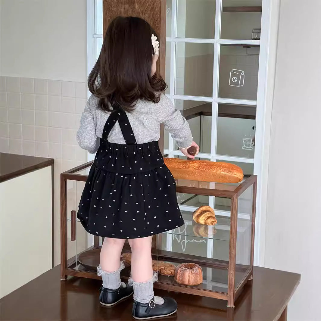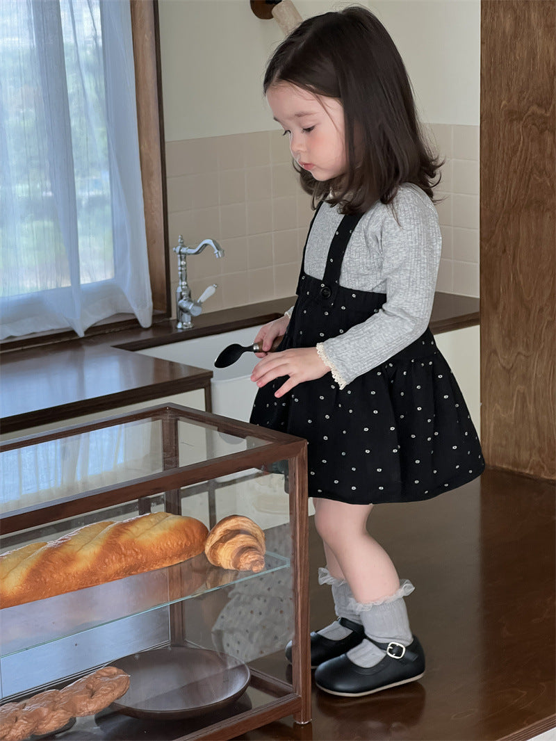 【BABY&KID】レース襟可愛いTシャツ、いドットサロペットスカートSK021503
