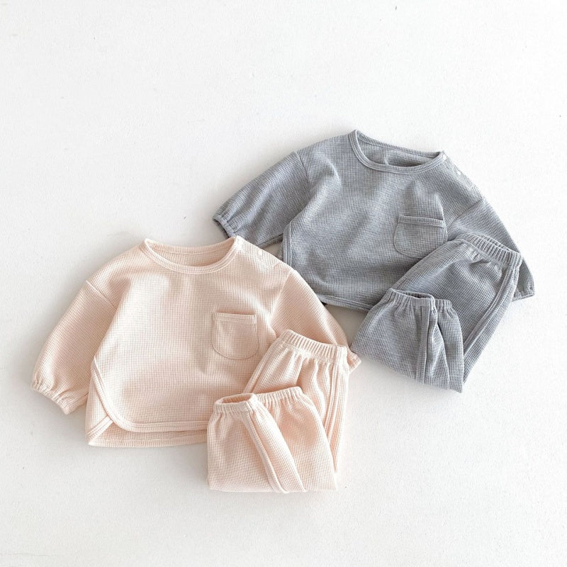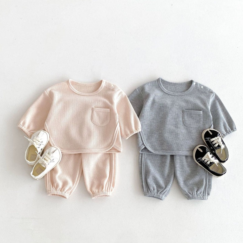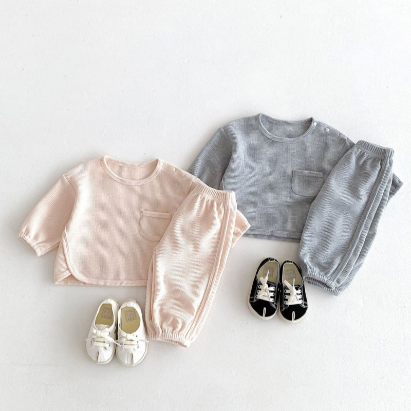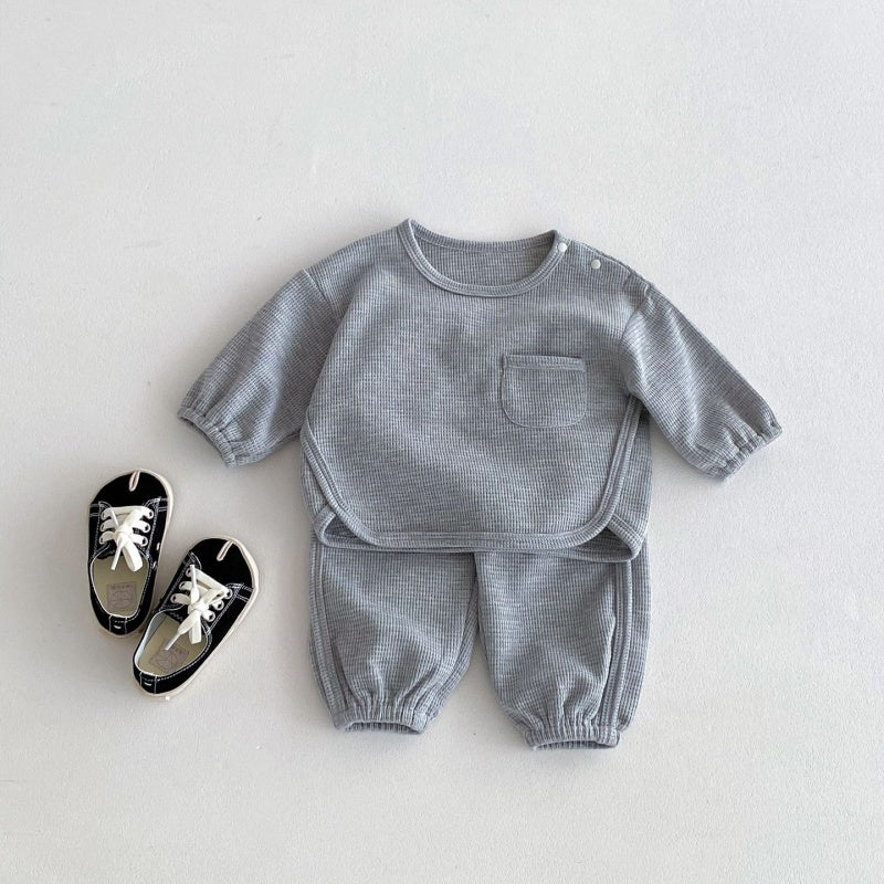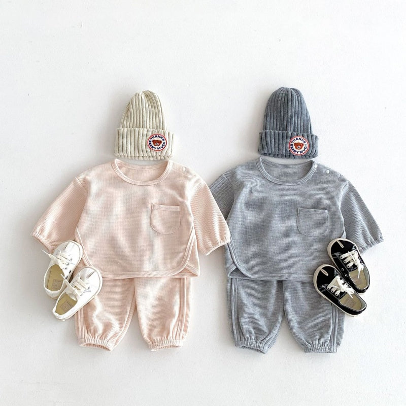 【BABY&KID】ワッフル無地ポケット付きセットアップSK032205