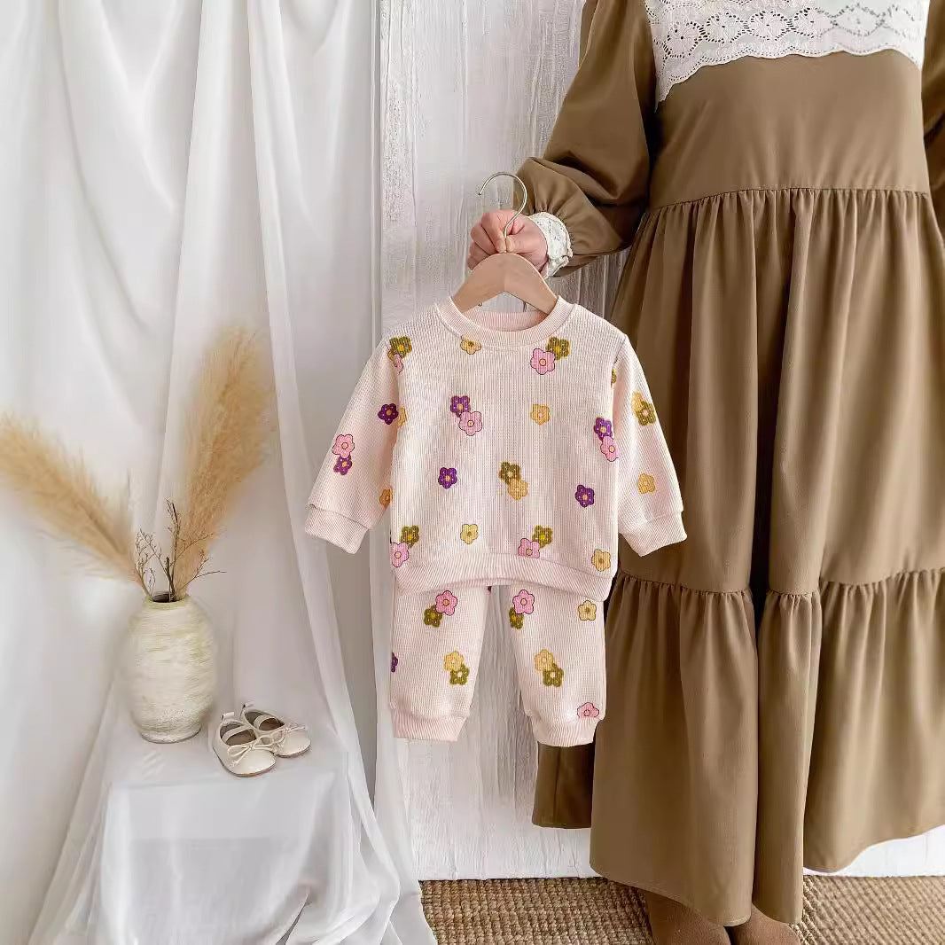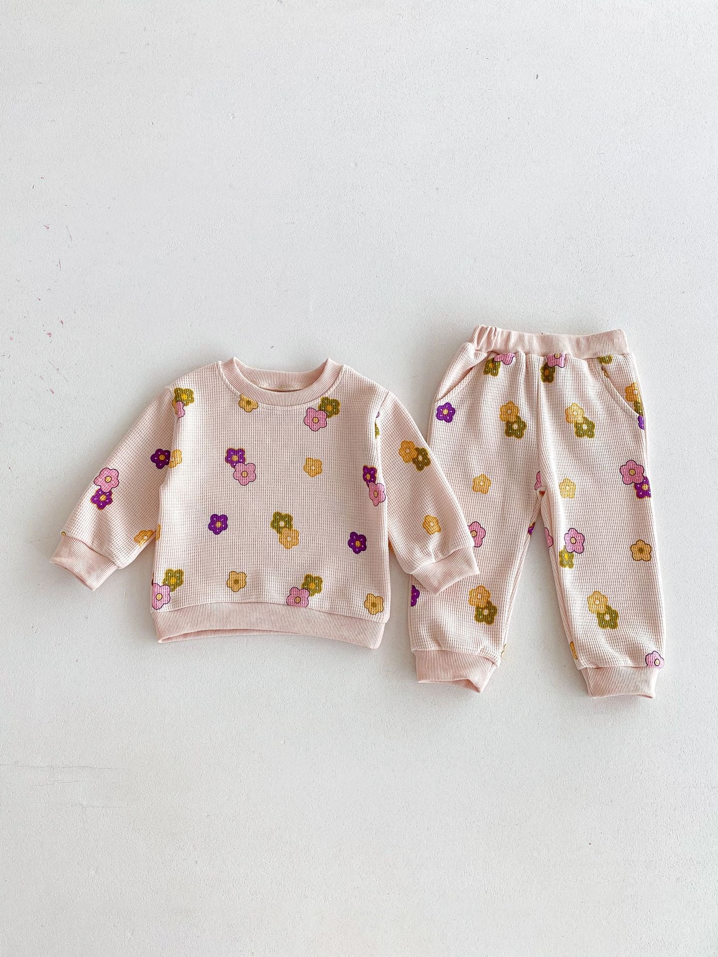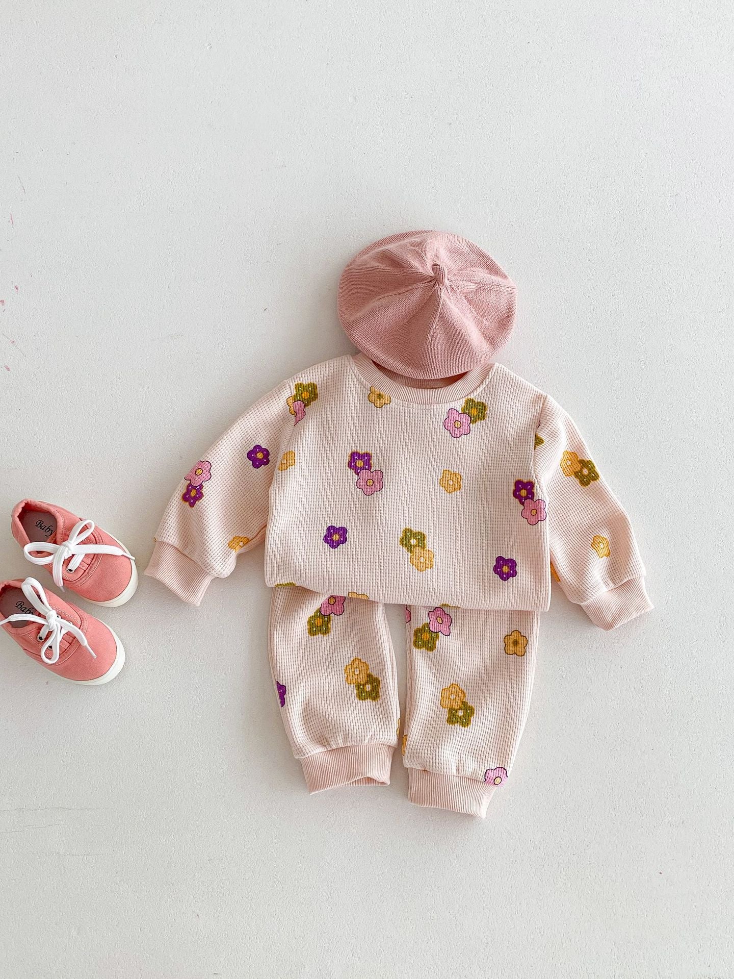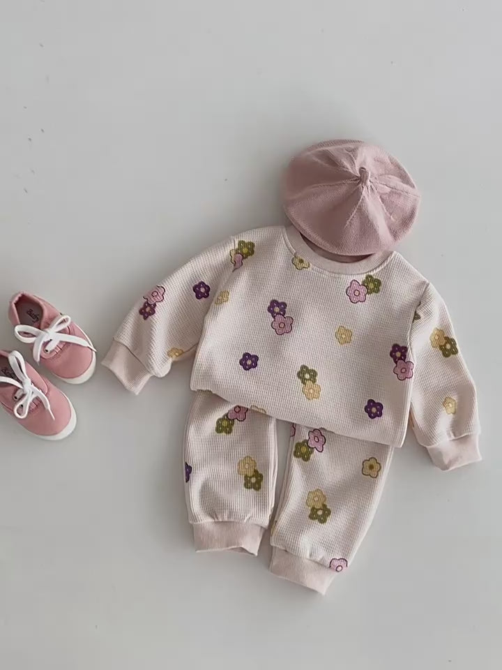 【BABY&KID】ワッフル花柄ピンクセットアップSK022404