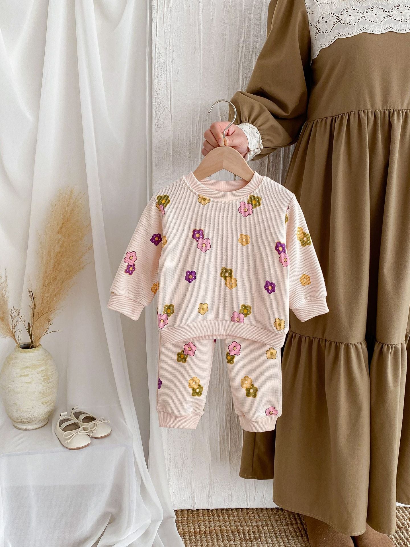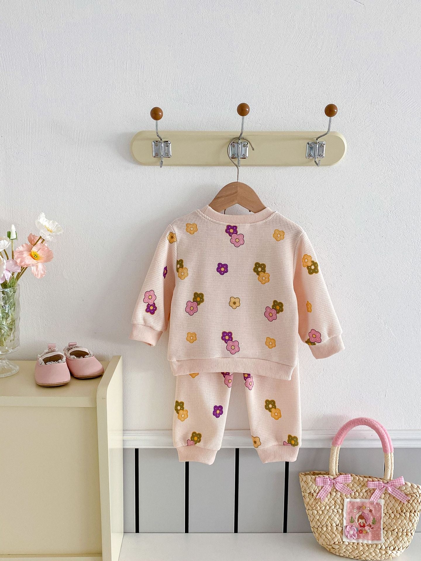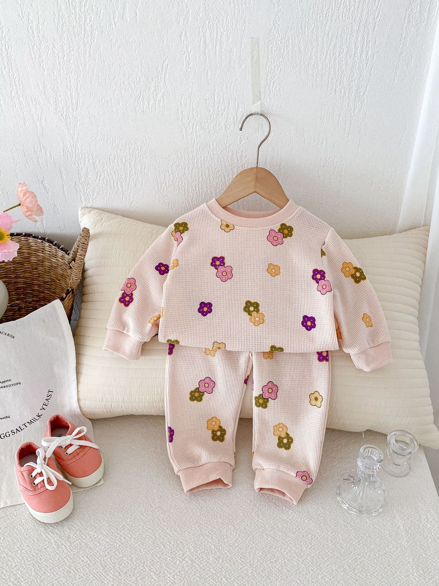 【BABY&KID】ワッフル花柄ピンクセットアップSK022404