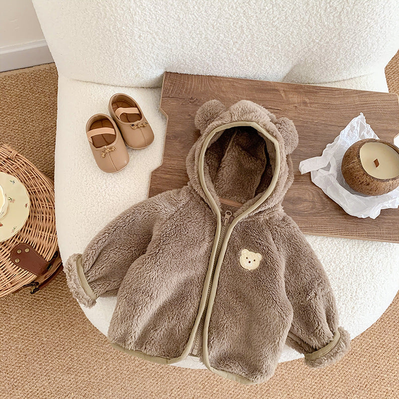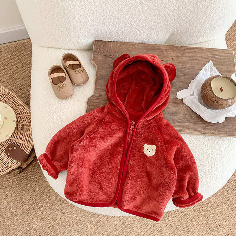 【BABY&KID】冬新作くまフード付きもふもふバイカラーコートSK11328