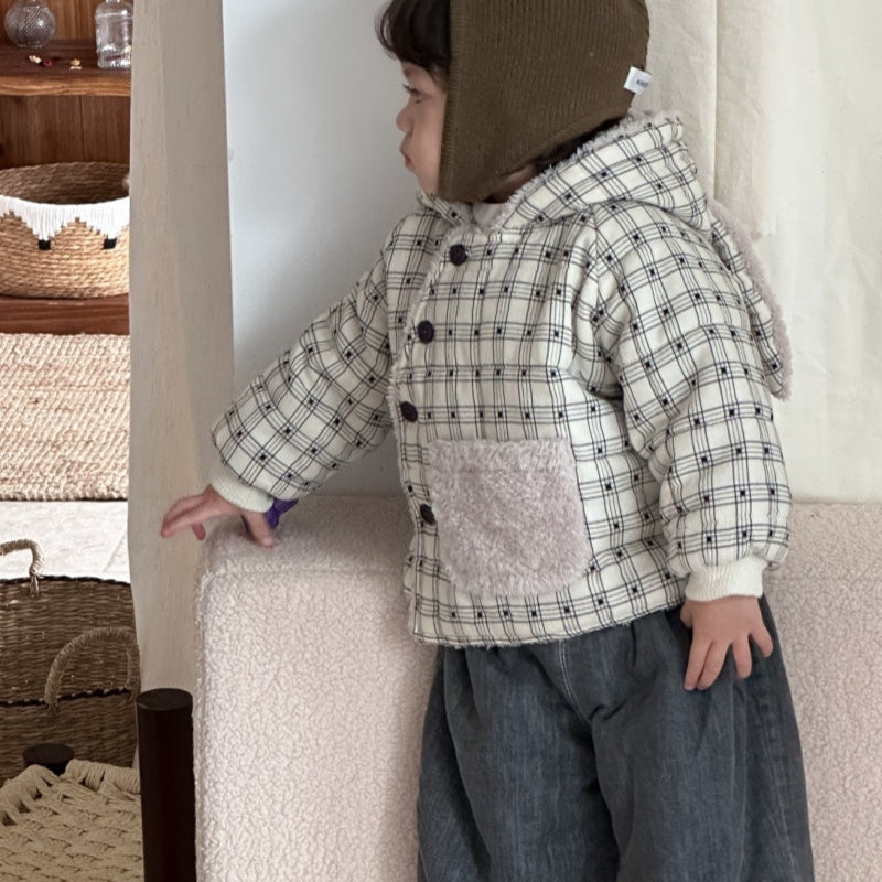 【BABY&KID】冬新作チェックフード付きジャケットSK103126