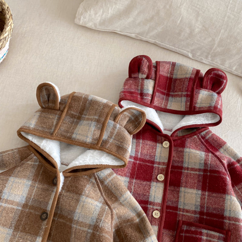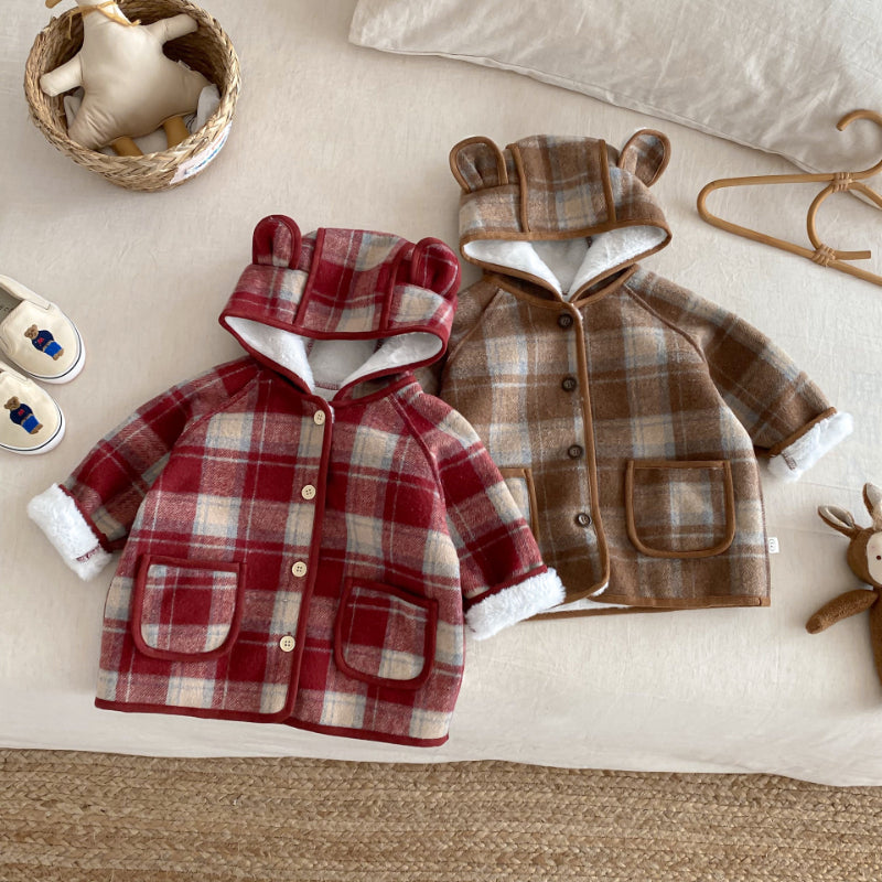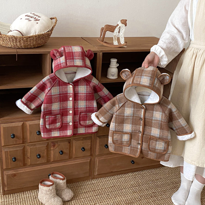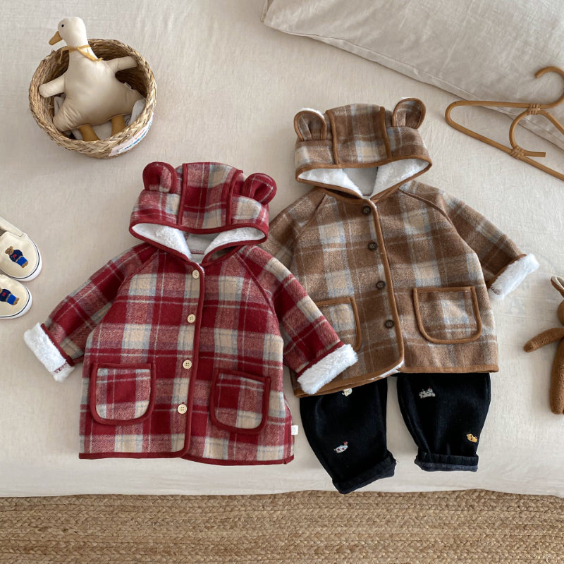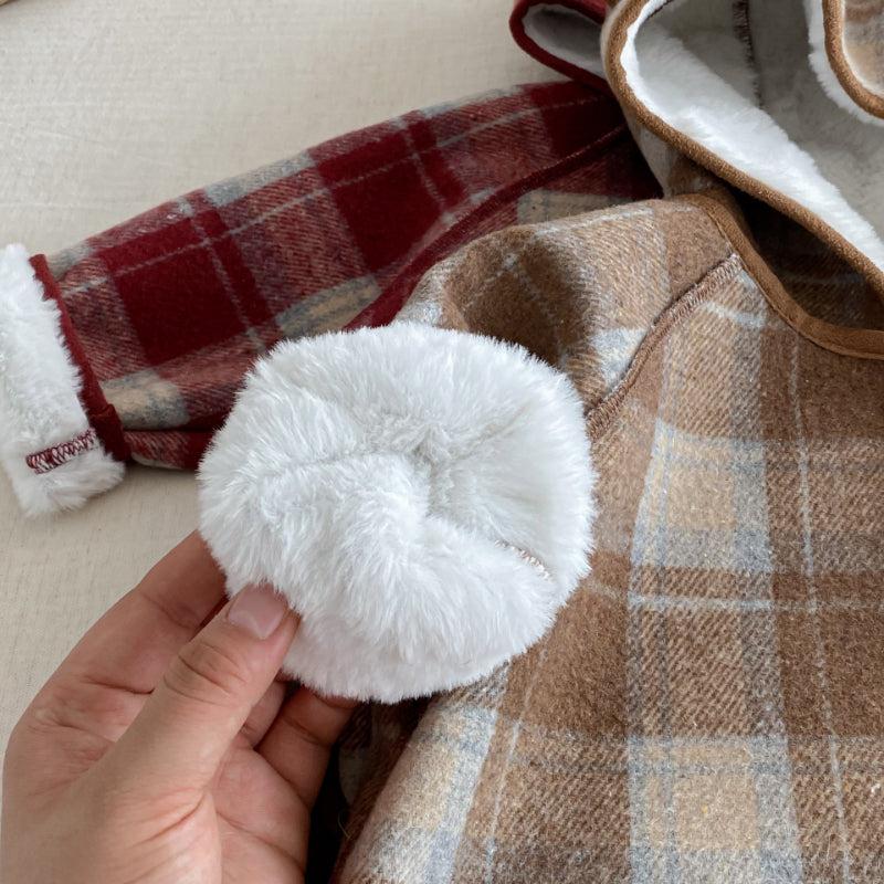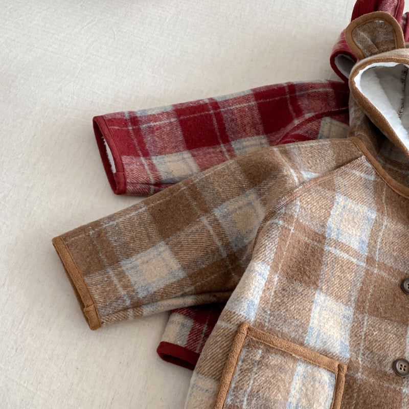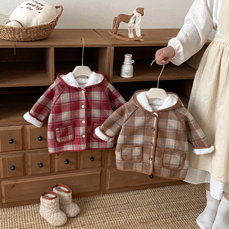 【BABY&KID】冬新作チェック柄フード付きモコモコアウターSK102523
