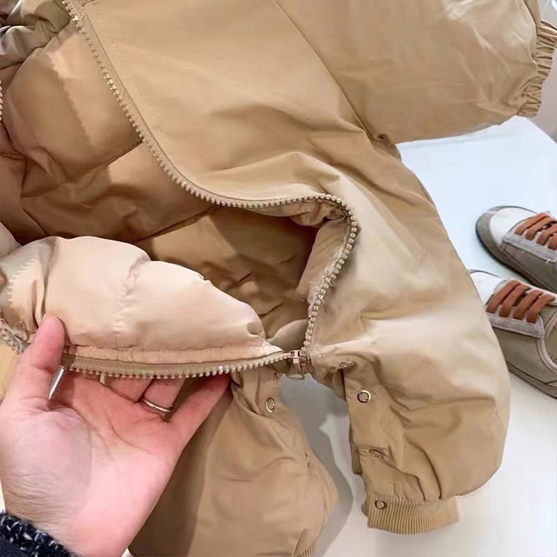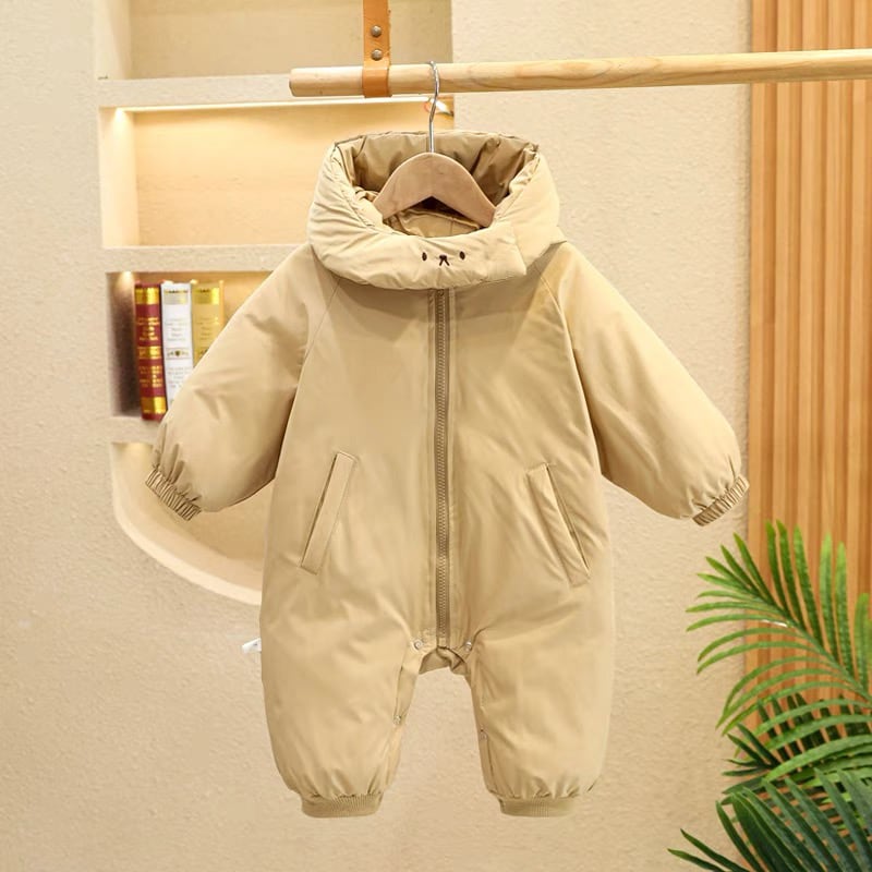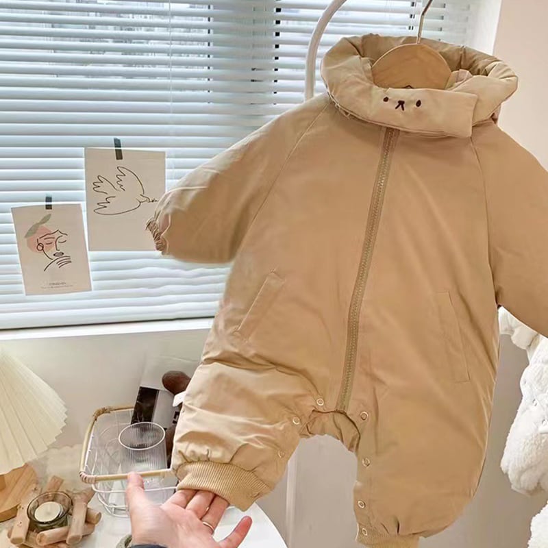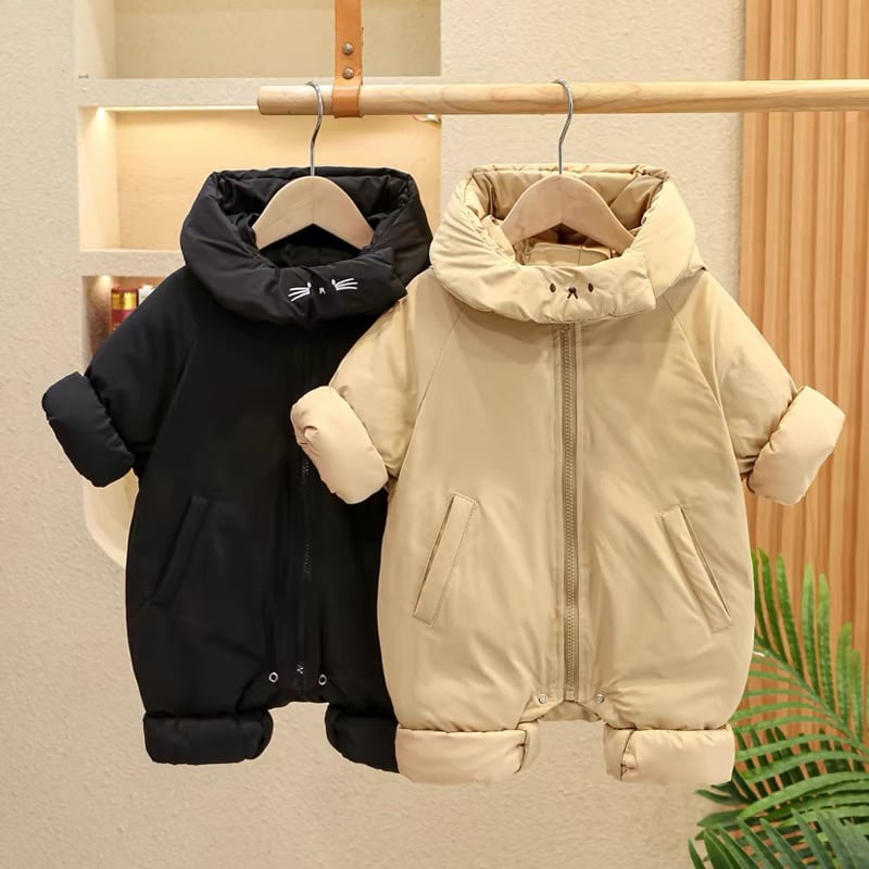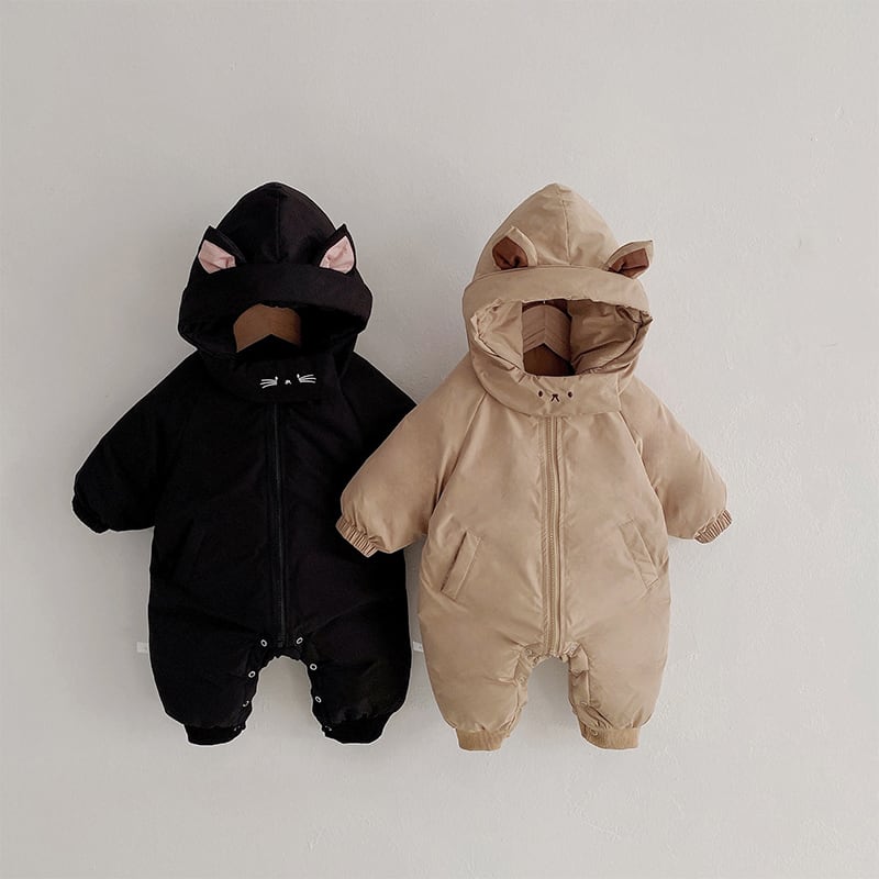 【BABY&KID】冬新作ネコ柄帽子付き中綿キルティングオールインワン 全2色SK11386