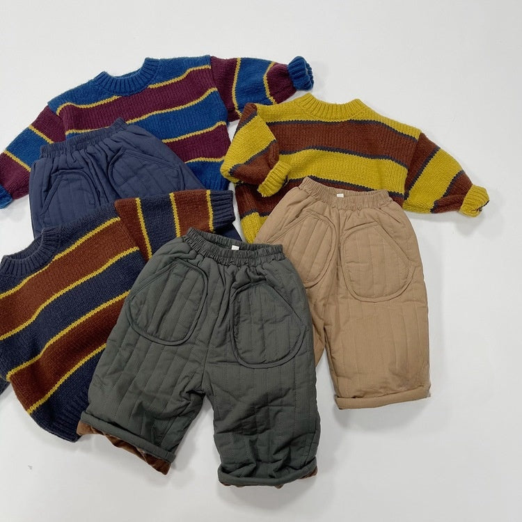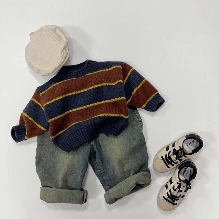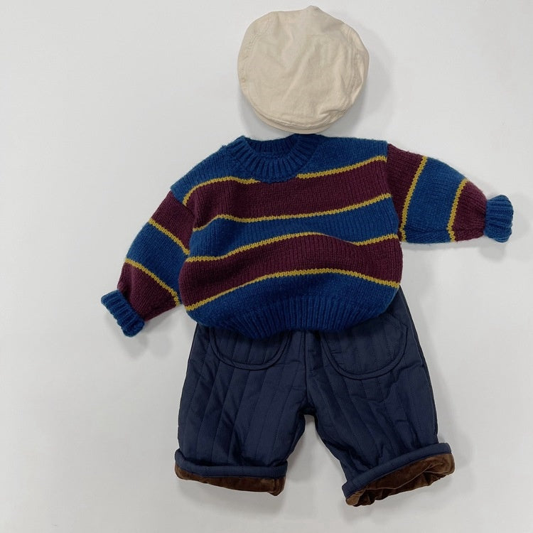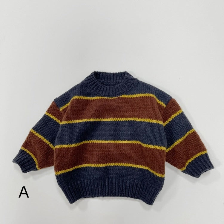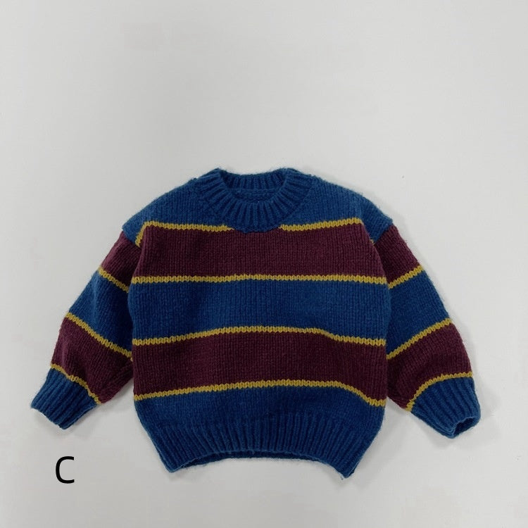 【BABY&KID】冬新作バイカラー丸襟ニットセーターSK022901