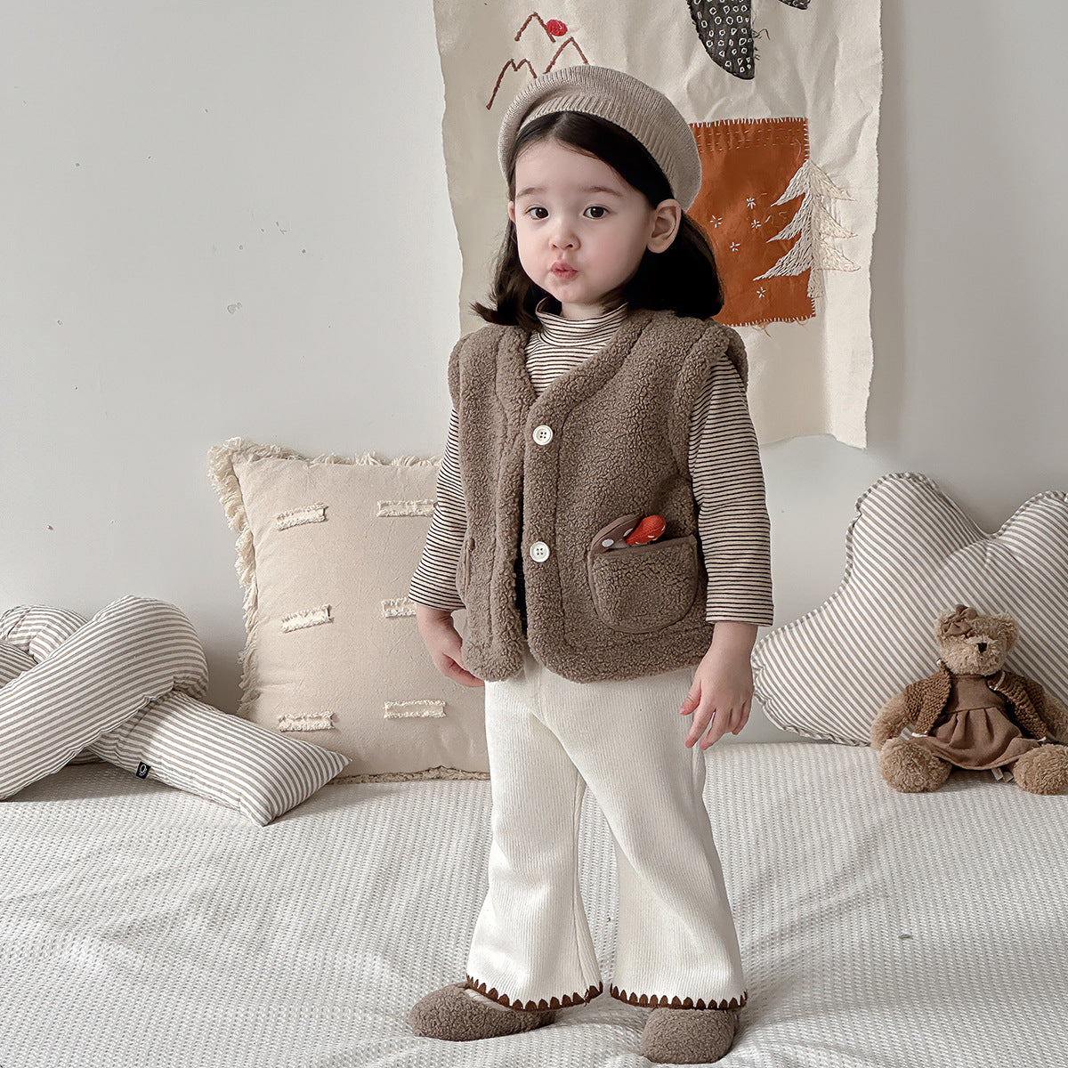 【BABY&KID】冬新作ベルベットアウターベストワイドレッグパンツスーツSK11310