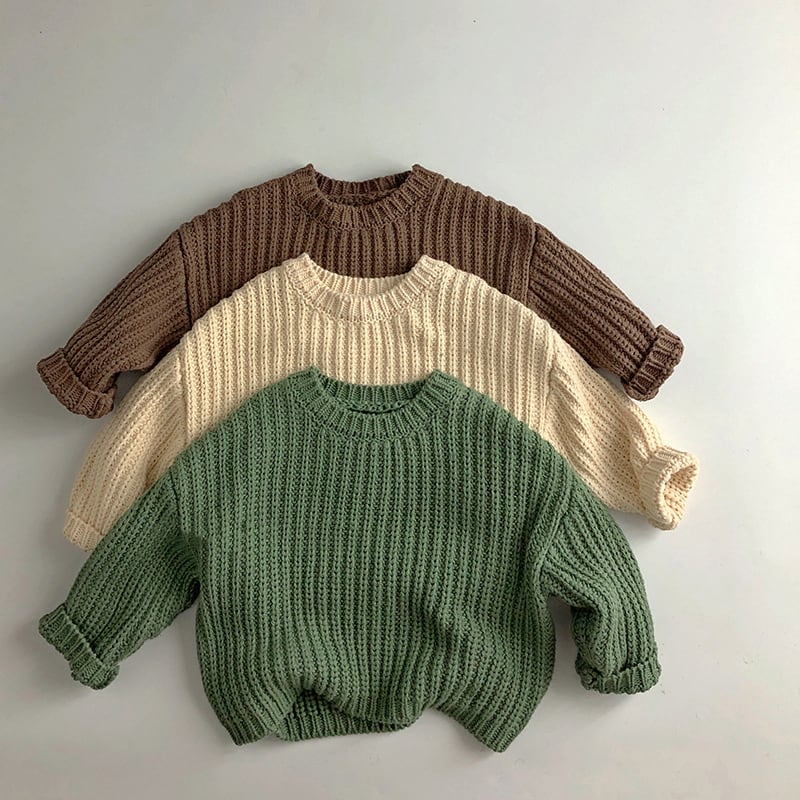 【BABY&KID】冬新作無地丸襟ニットセーター 全3色SK11336