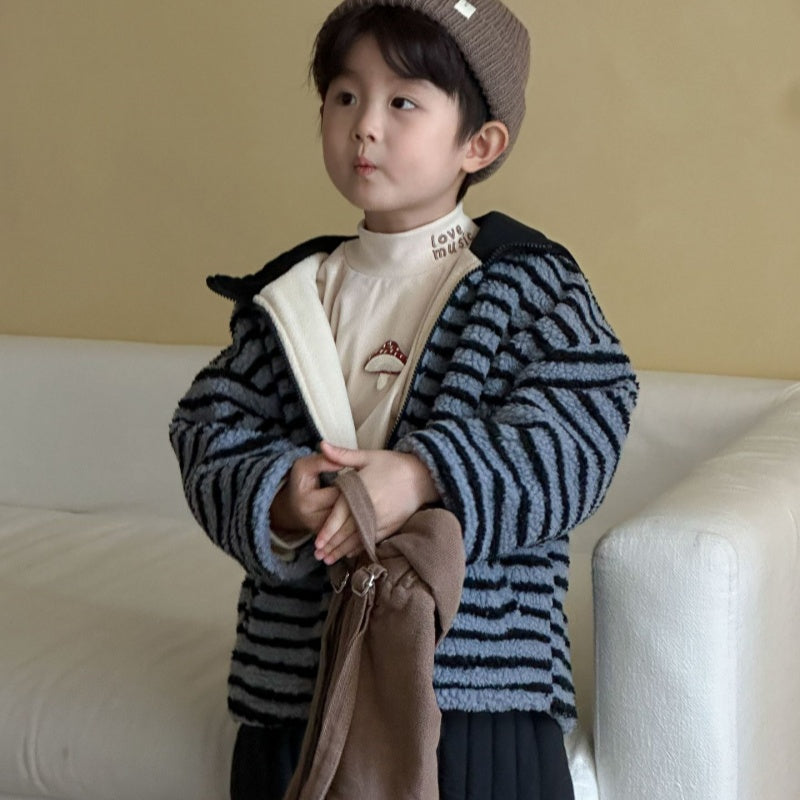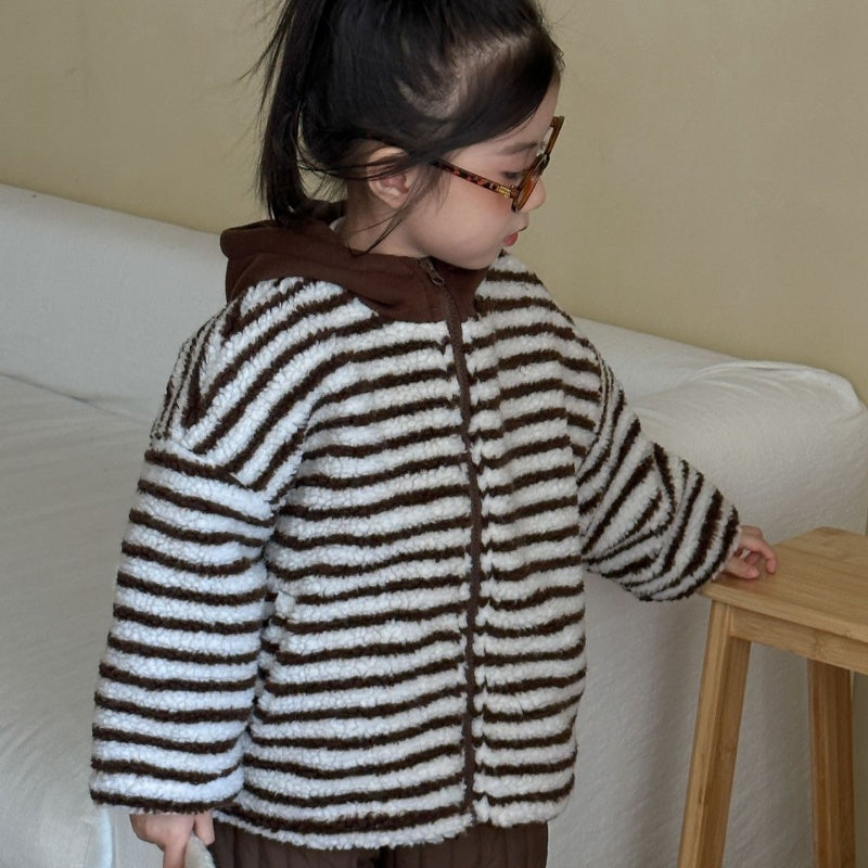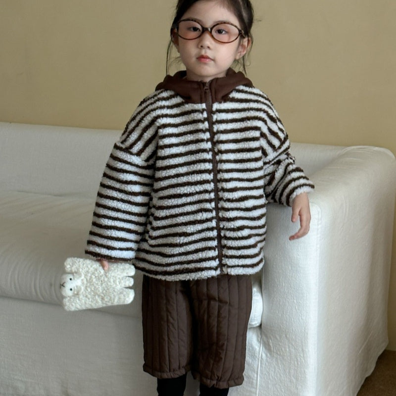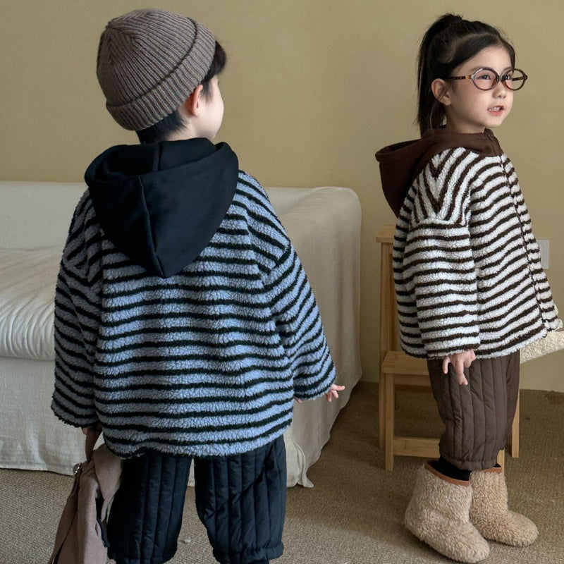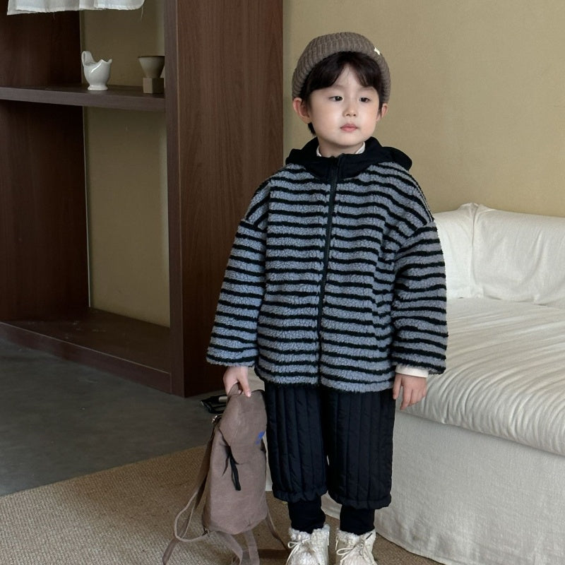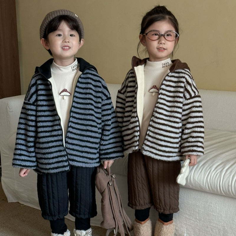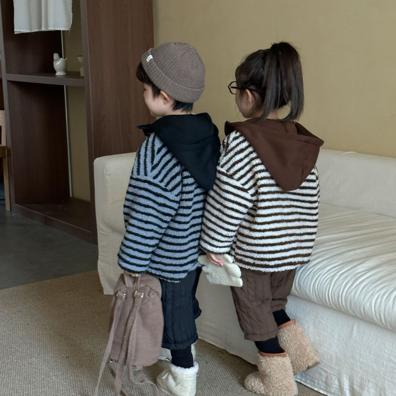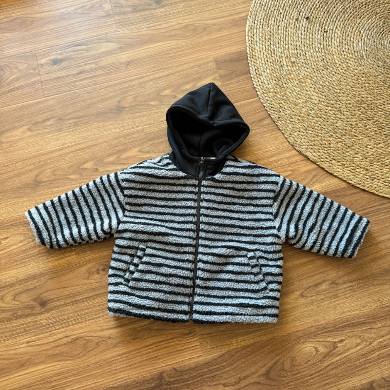 【BABY&KID】冬新作 フード付きボーダー裏起毛アウターSK102027