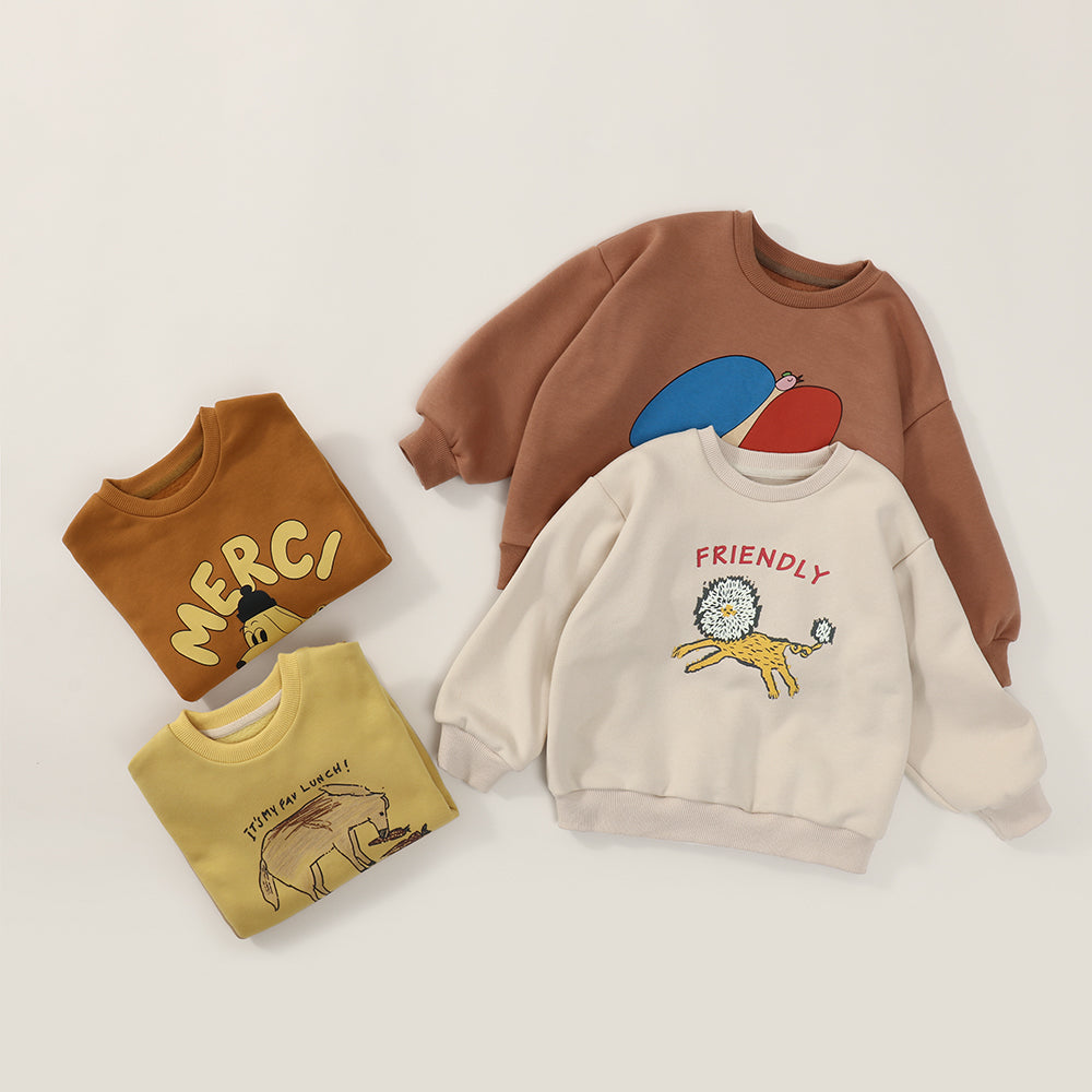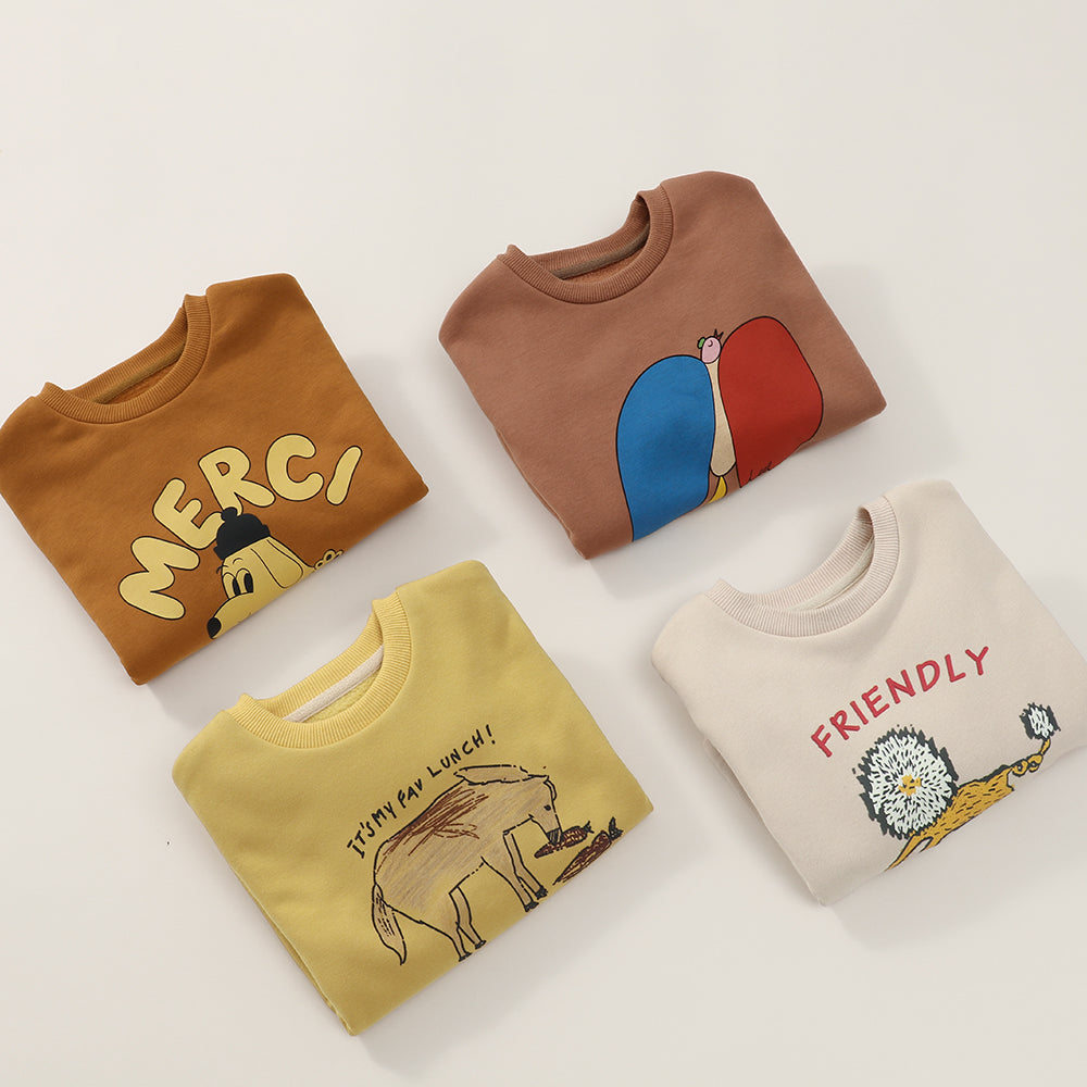 【BABY&KID】北欧風 ミネマリズム英字&動物ロゴ純綿トレーナSK012501