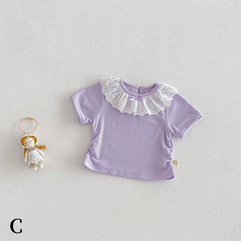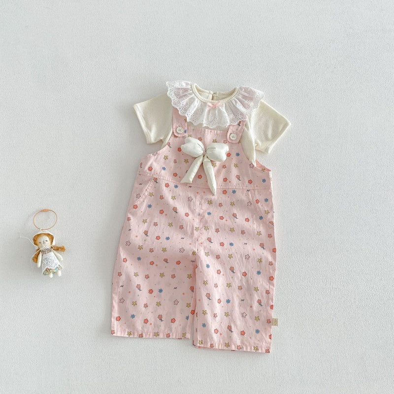 【BABY&KID】夏新作蝶結び総柄サロペット、レース襟TシャツSK104823