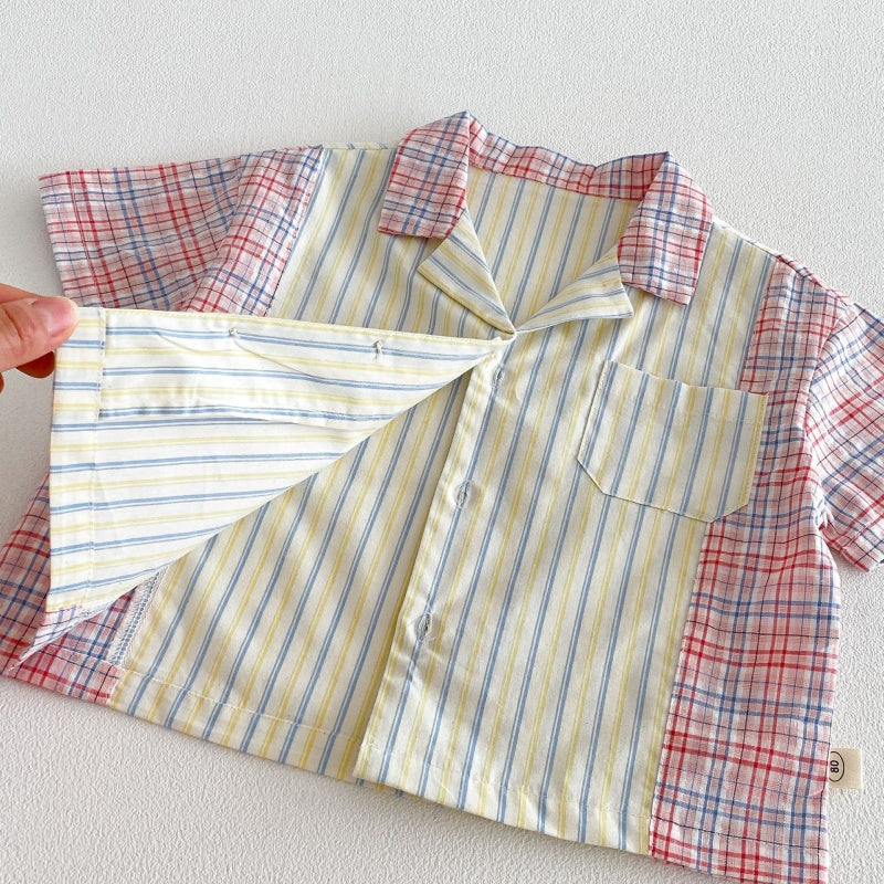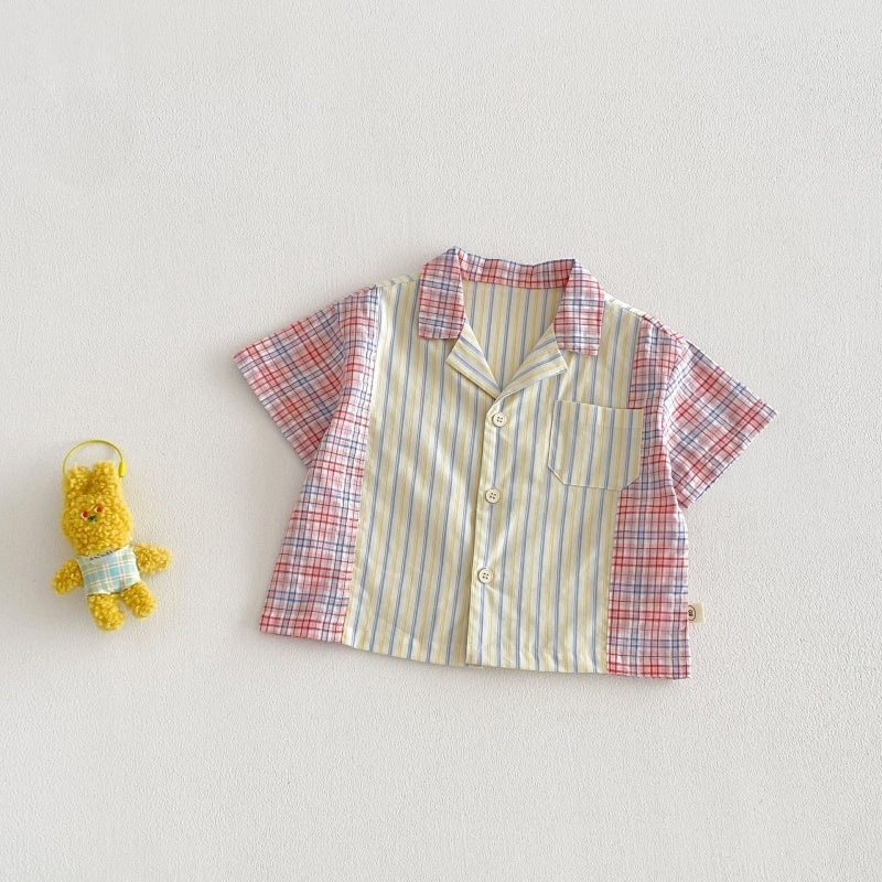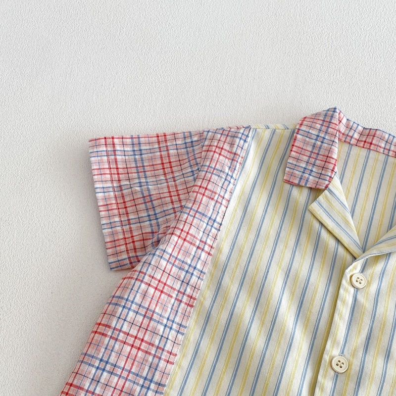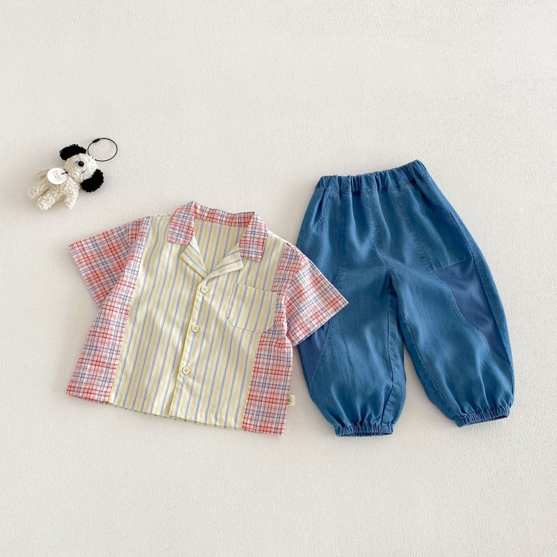 【BABY&KID】夏新作韓国風ストライプ半袖シャツ、デニムパンツSK104824