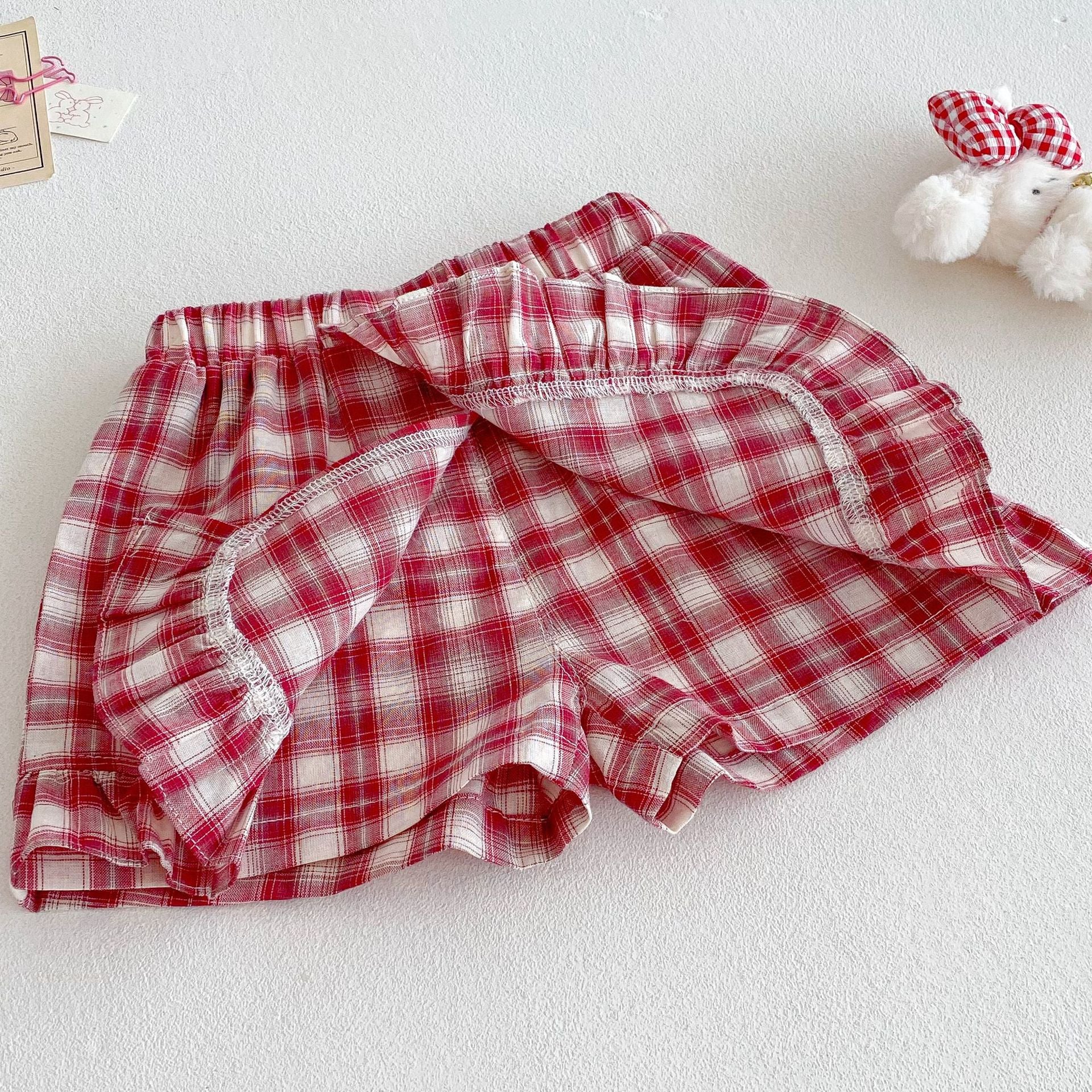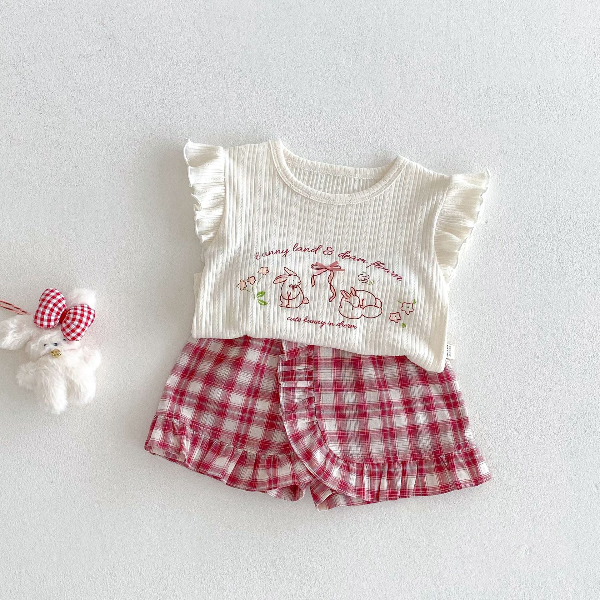 【BABY&KID】夏新作 うさぎプリントトップス、チェックショートパンツSKO71218