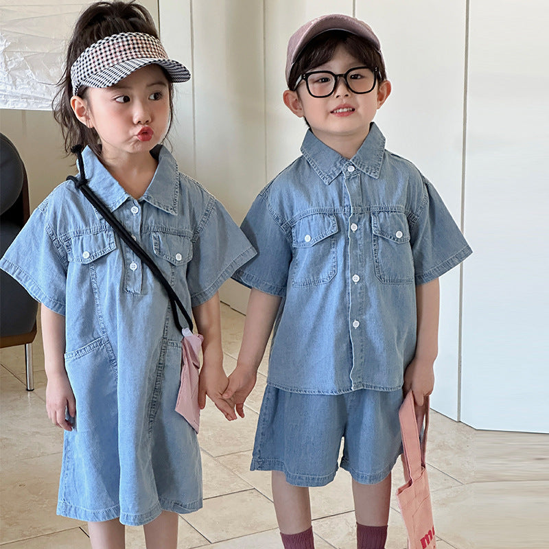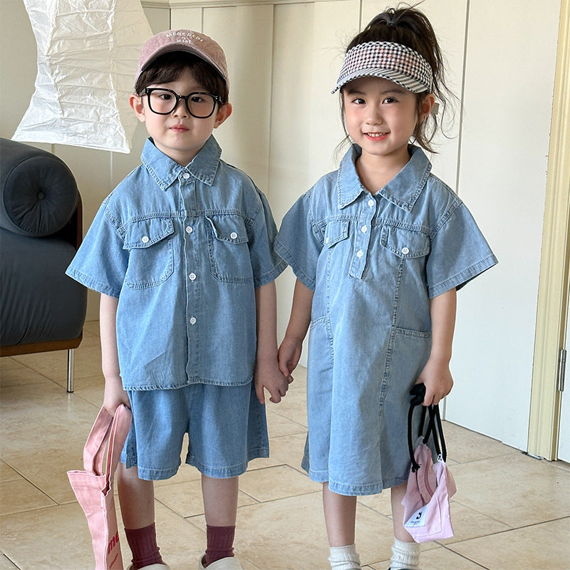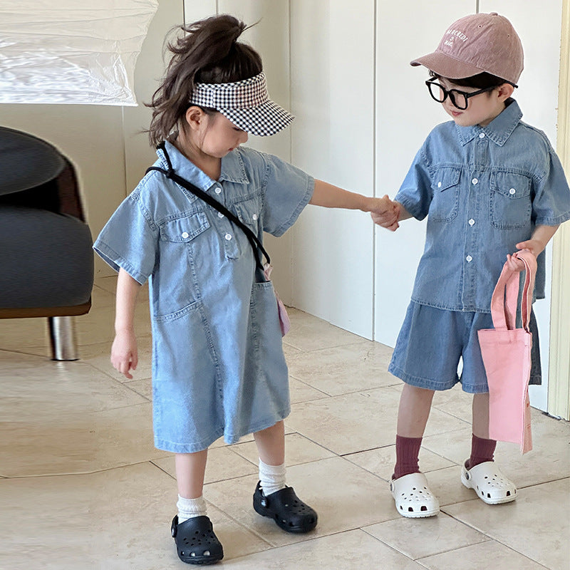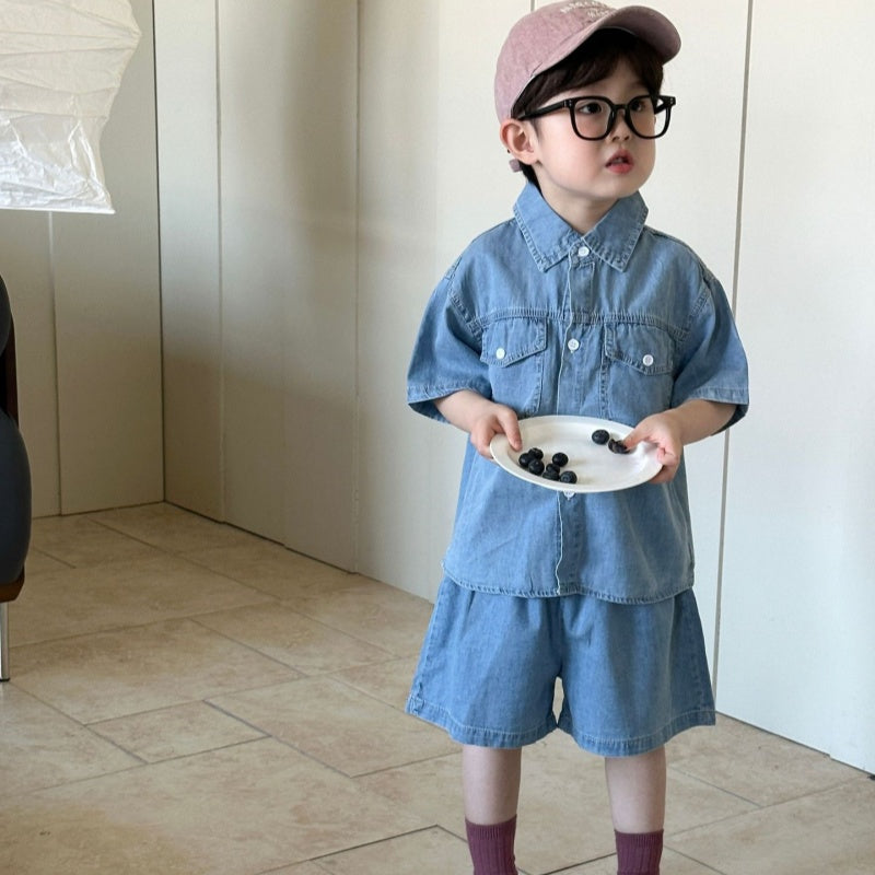 【BABY&KID】夏新作 おしゃれビッグポケットデニムセットSK063014