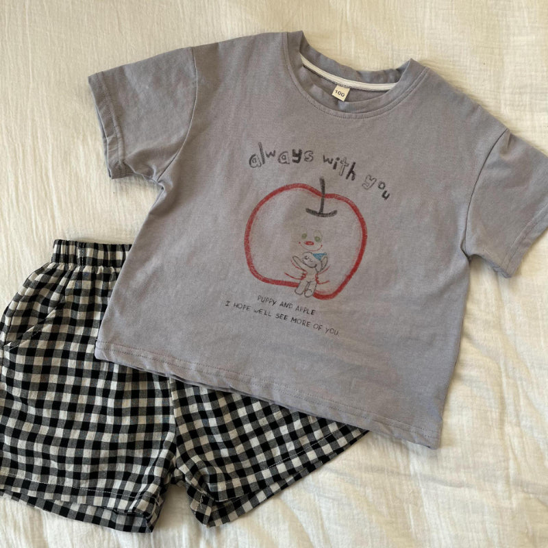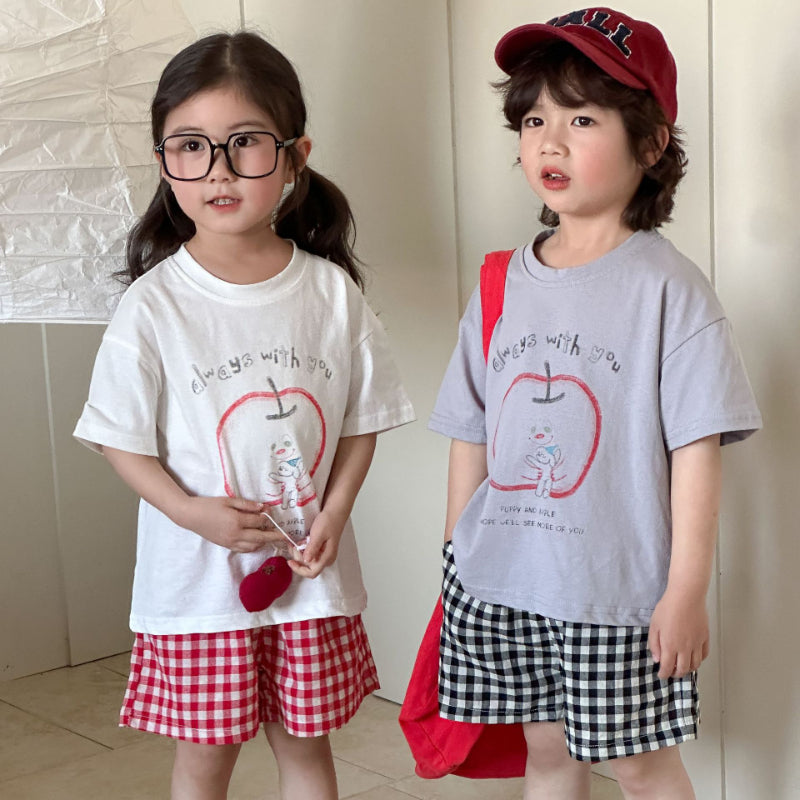 【BABY&KID】夏新作 アップルモチーフTシャツセットアップSK072105