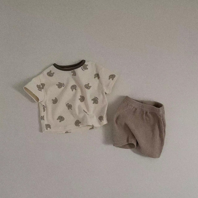 【BABY&KID】夏新作 アニマル総柄トップス&無地ショートパンツSK082717