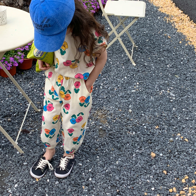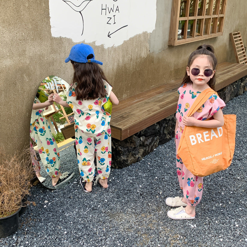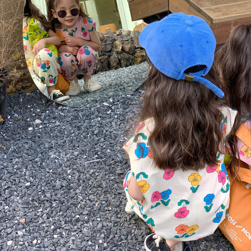 【BABY&KID】夏新作 カラフルフラワーセットアップSK080503