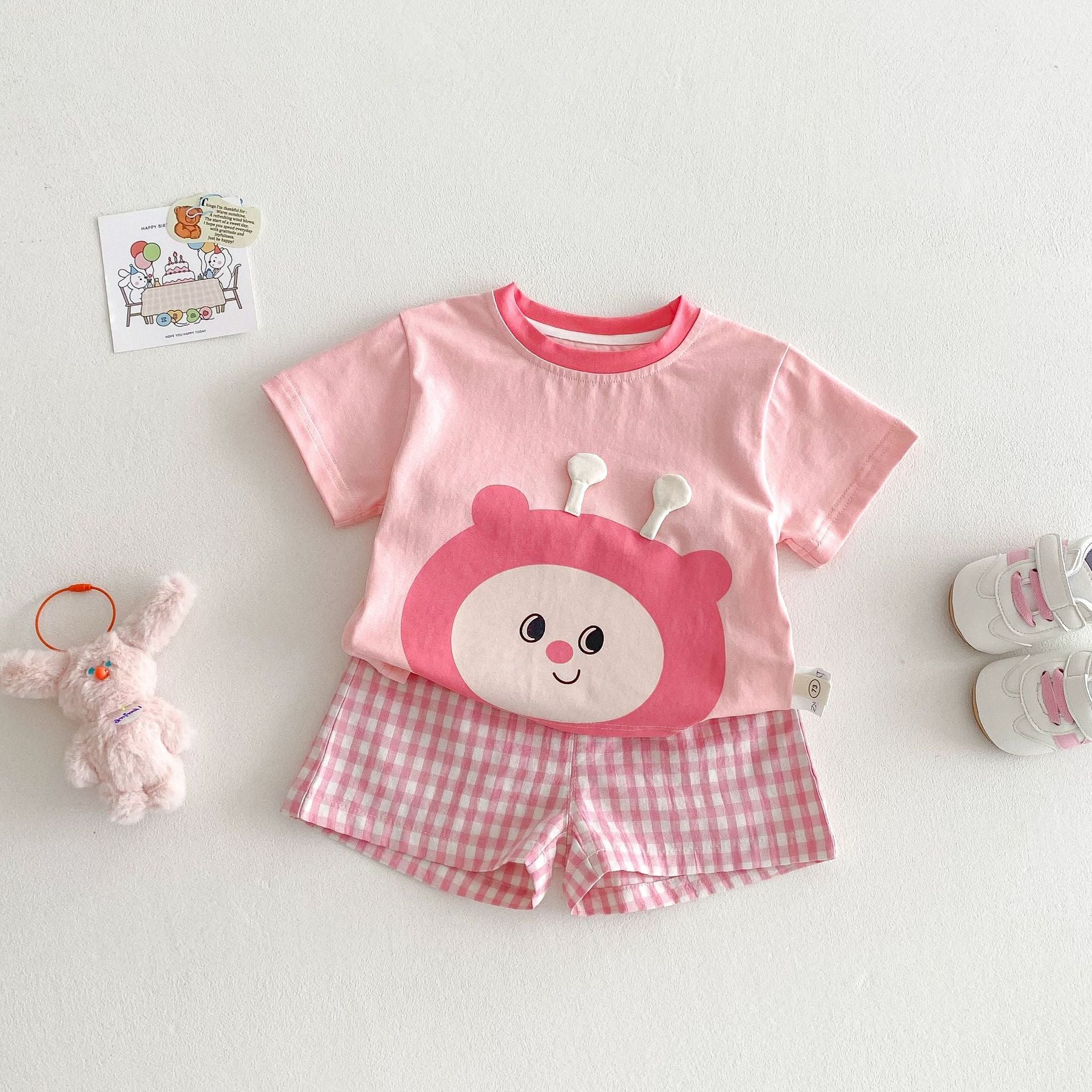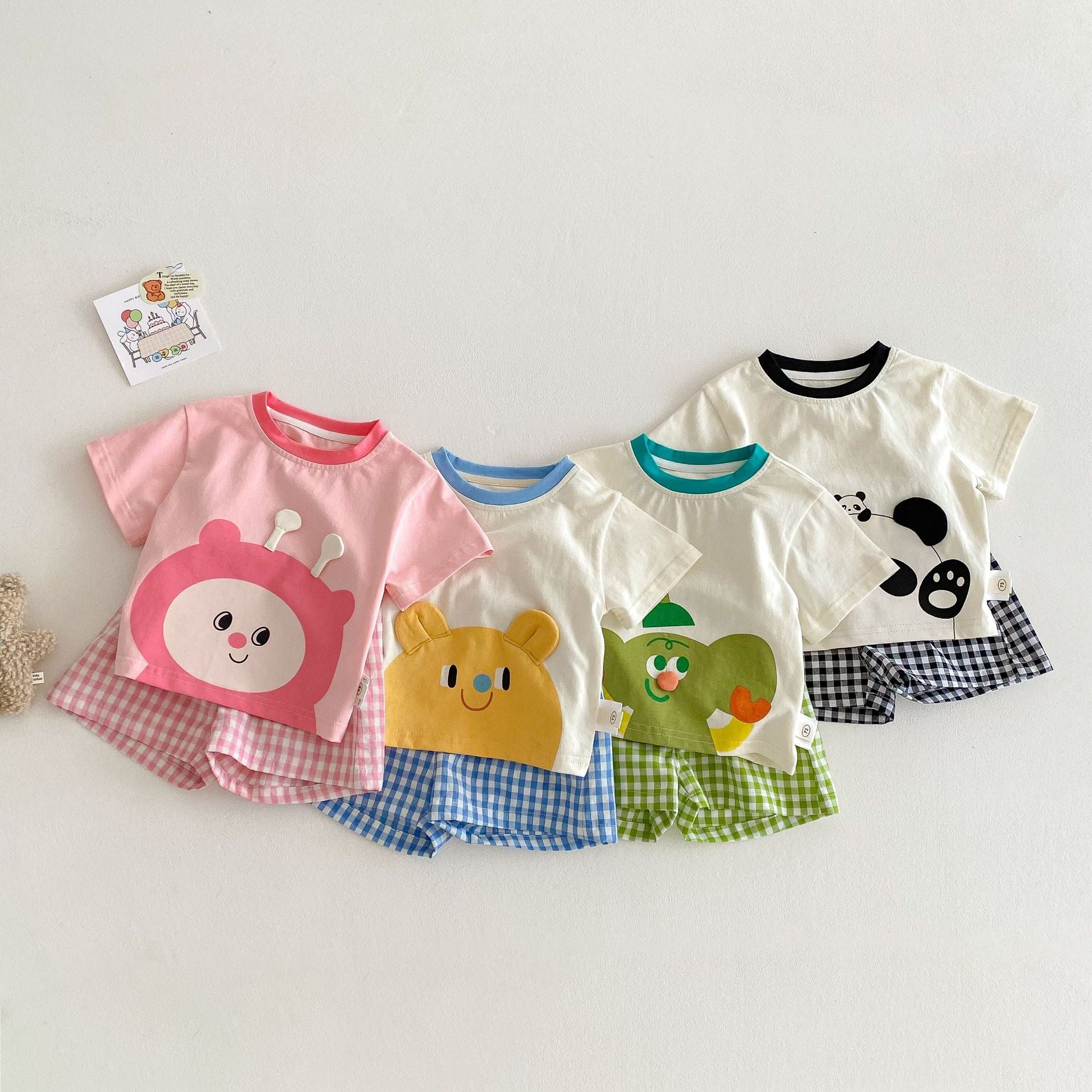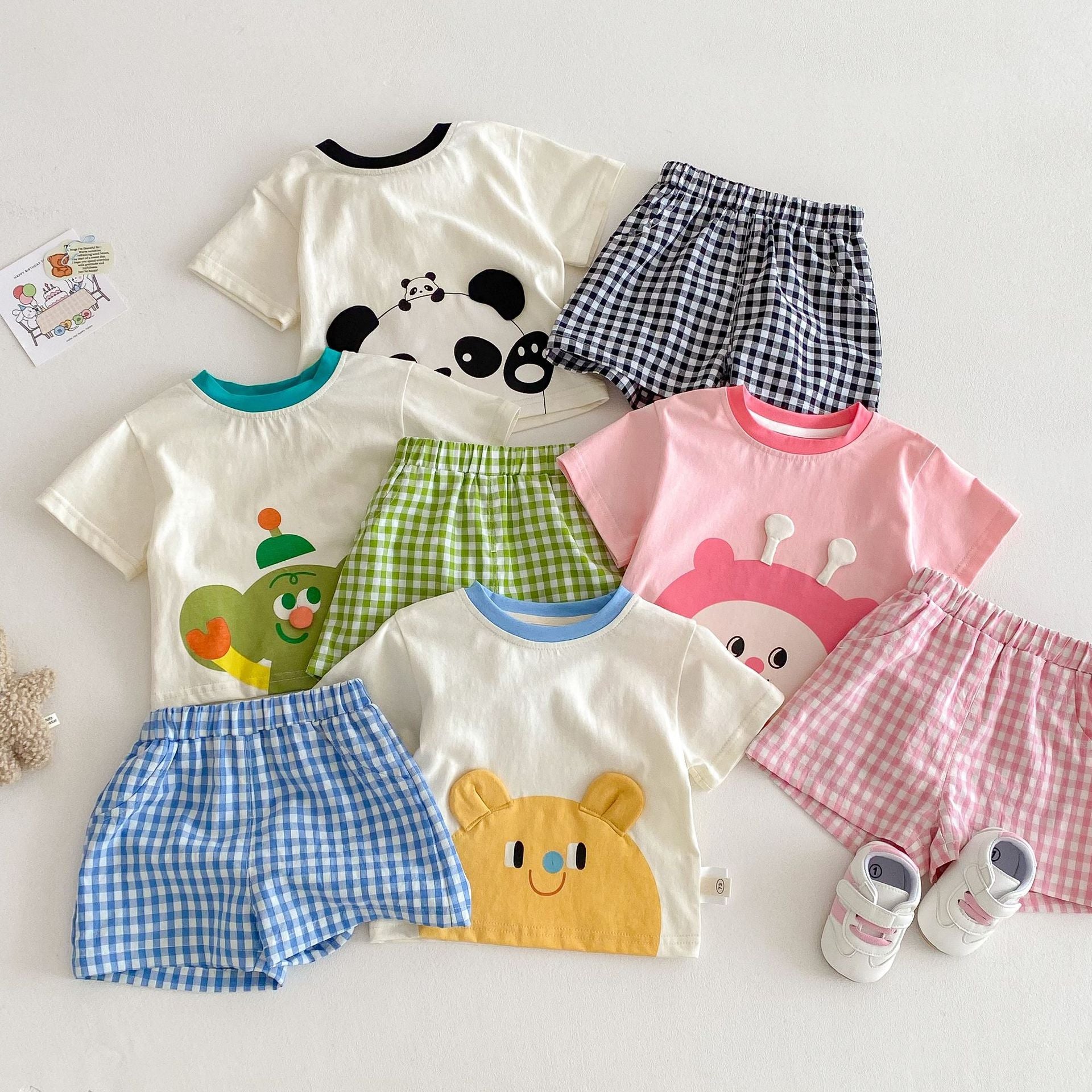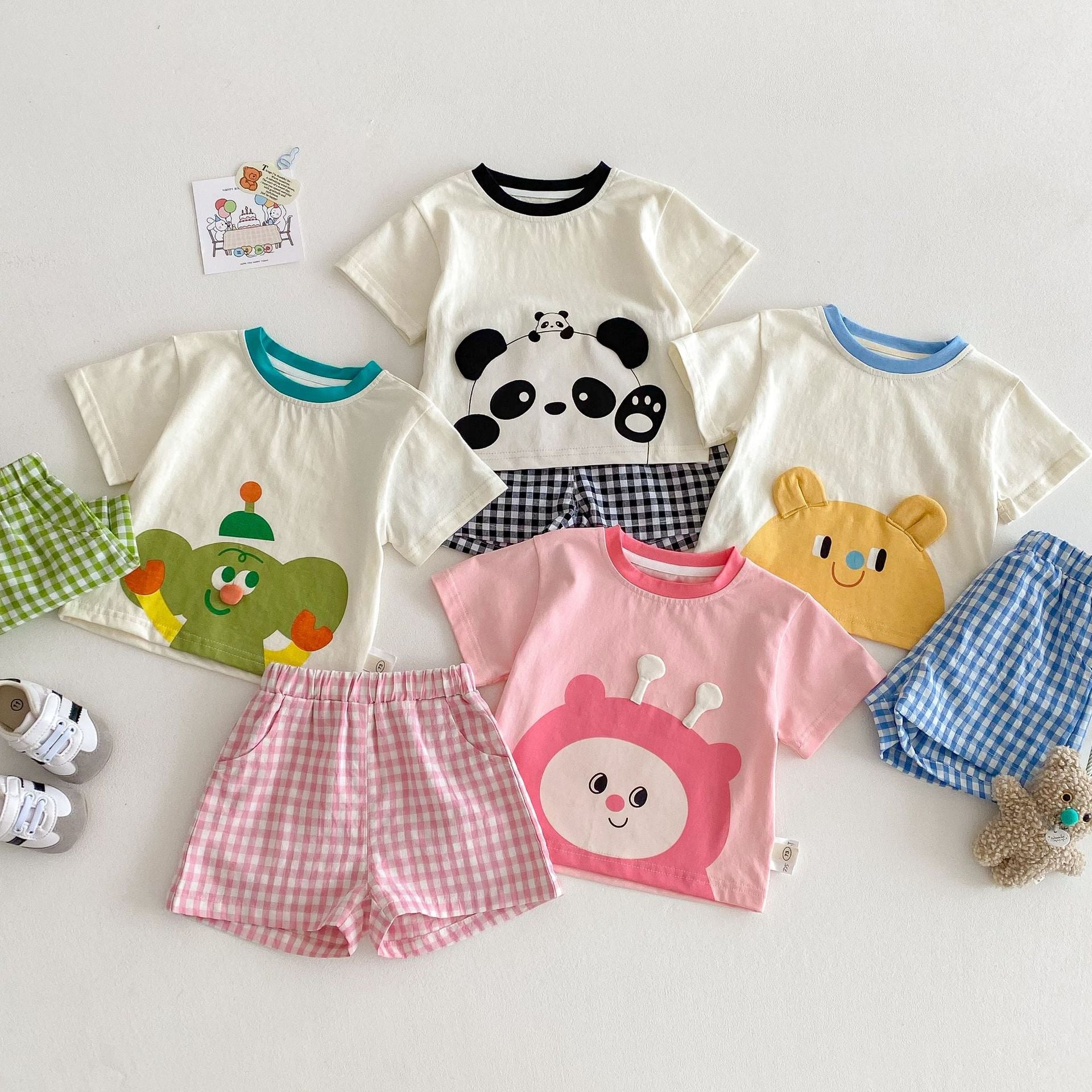 【BABY&KID】夏新作 カートゥーンTシャツ&チェックパンツSK061803