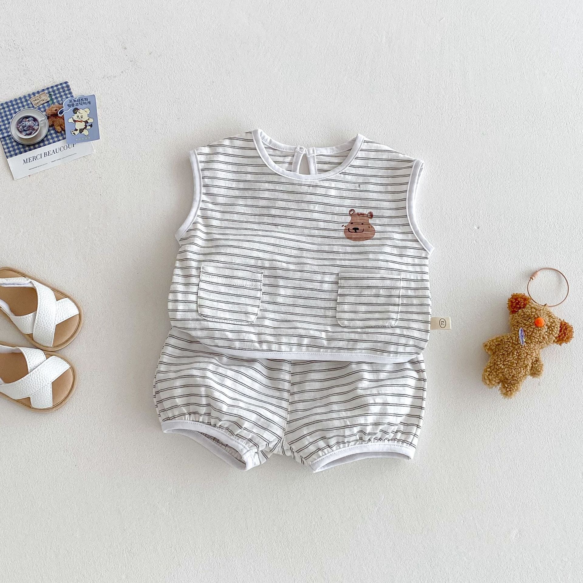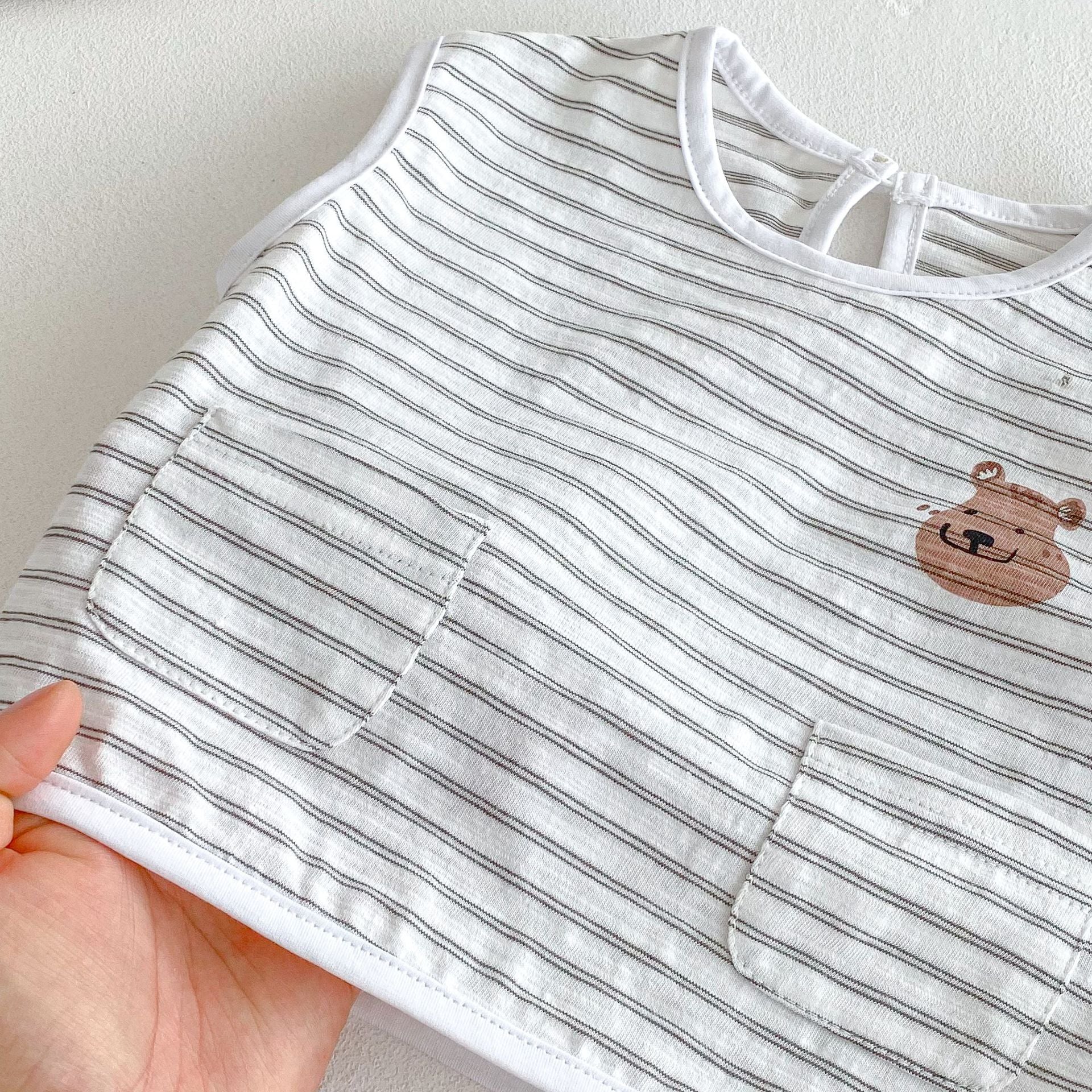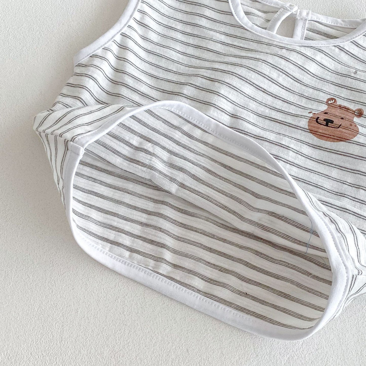 【BABY&KID】夏新作 クマボーダーノースリーブセットアップSKO71214