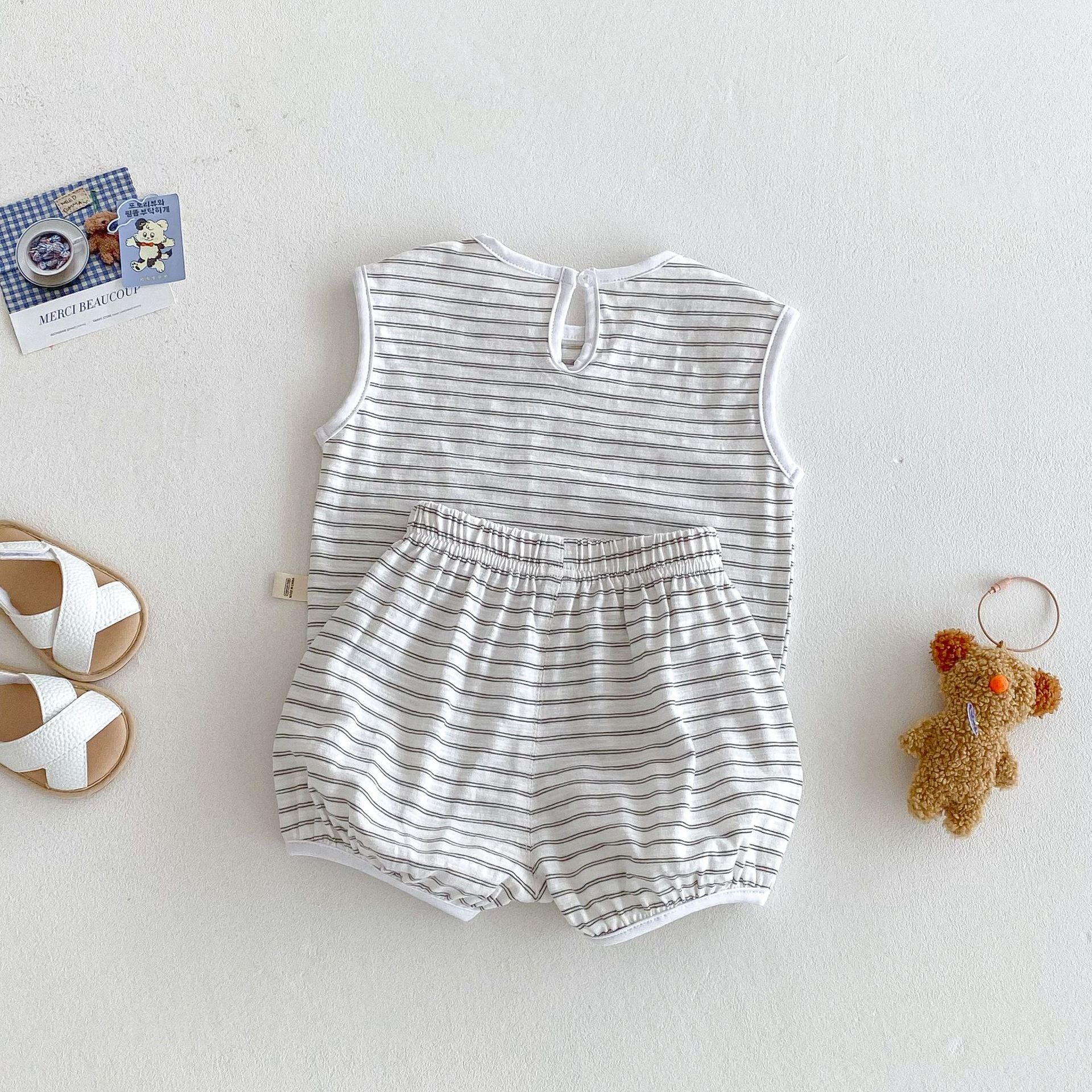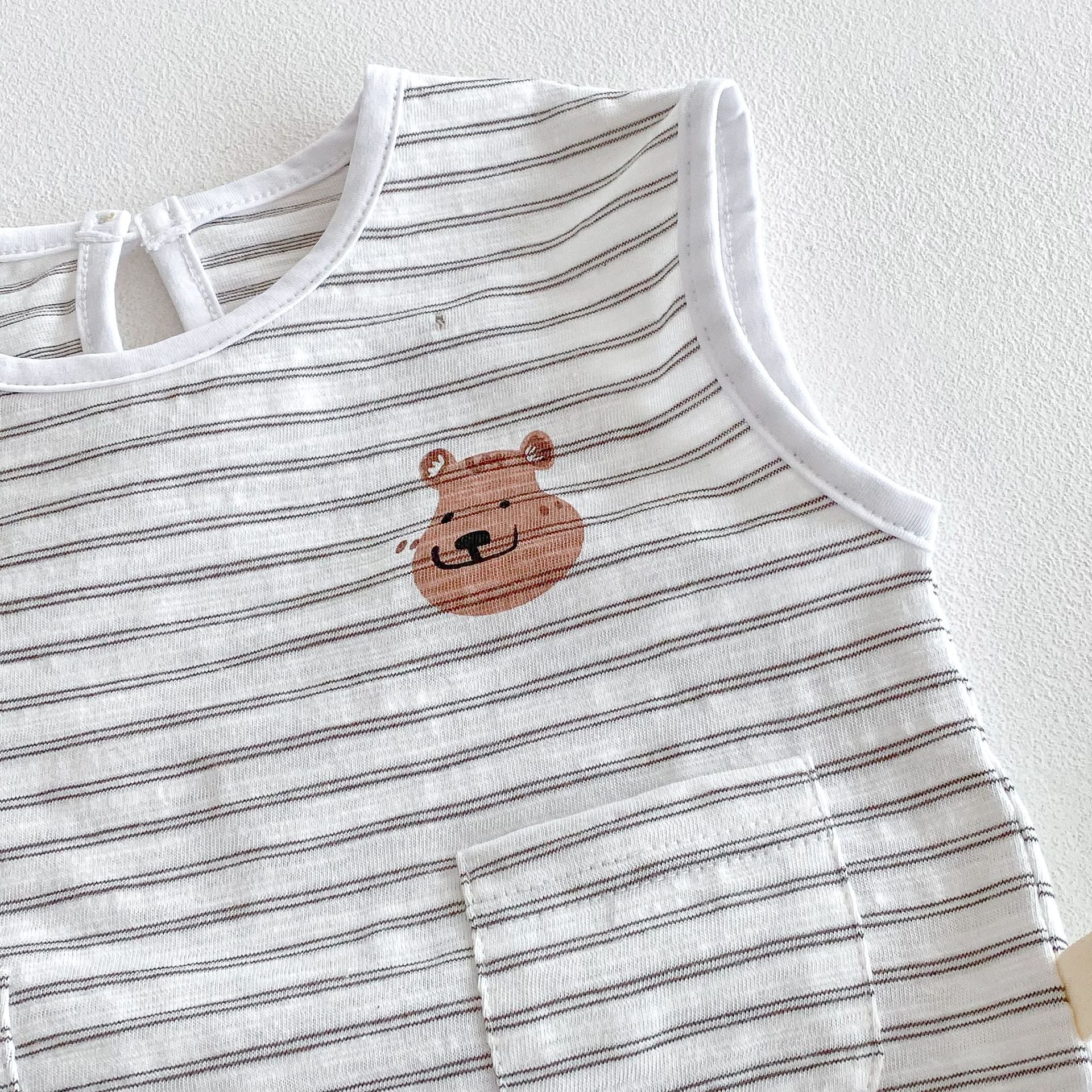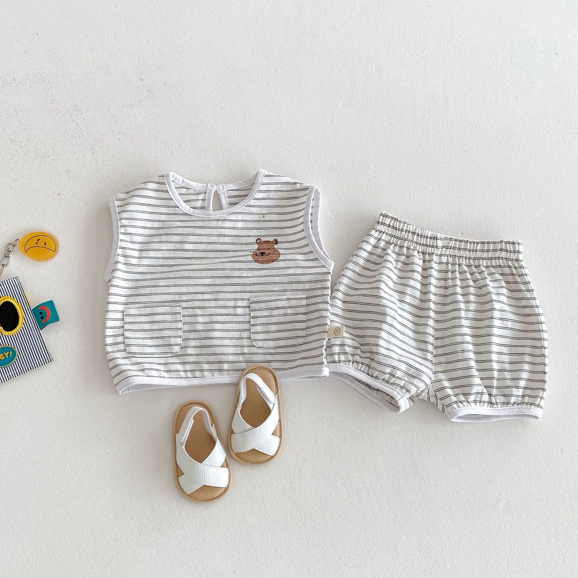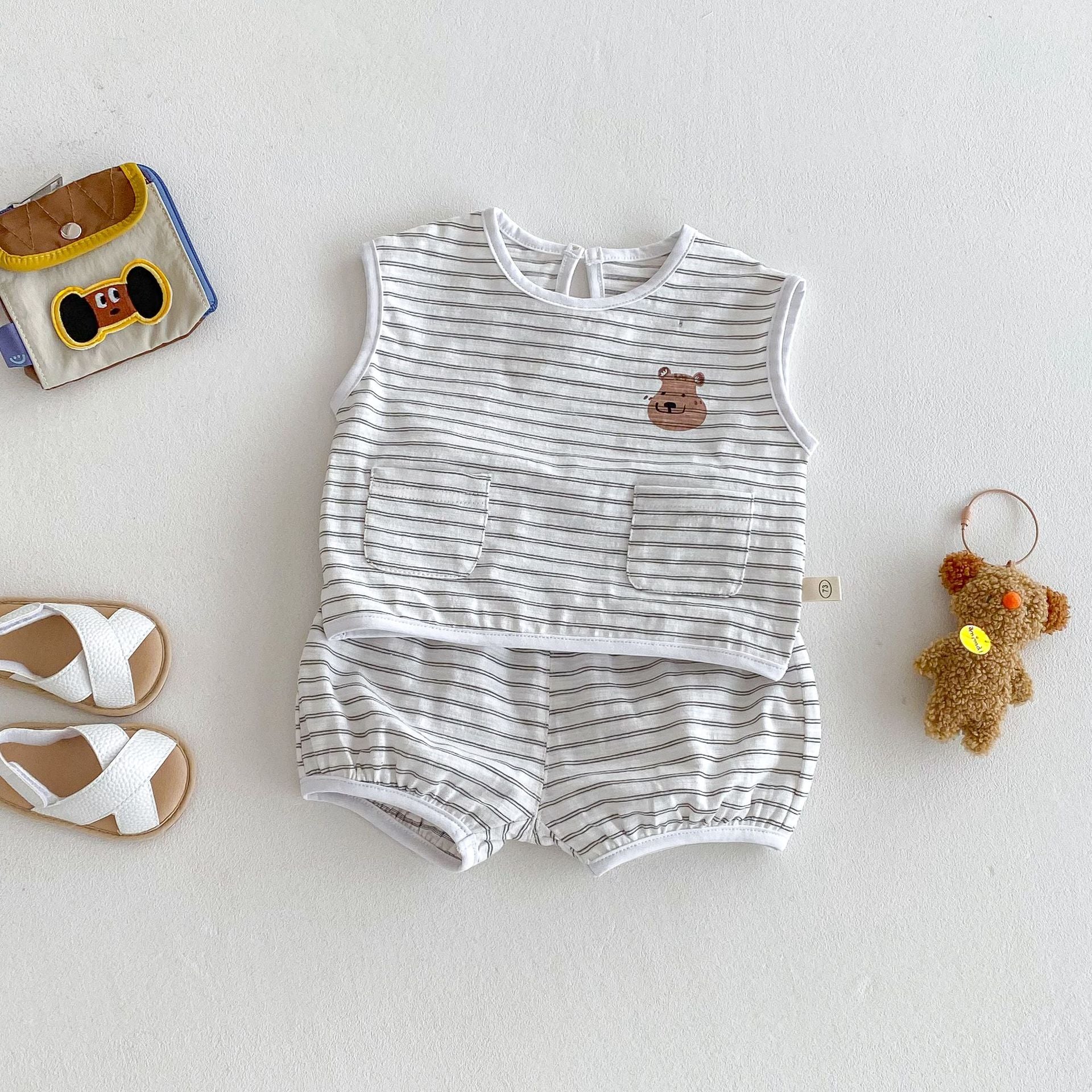 【BABY&KID】夏新作 クマボーダーノースリーブセットアップSKO71214