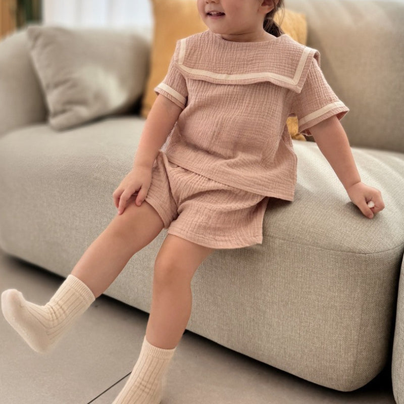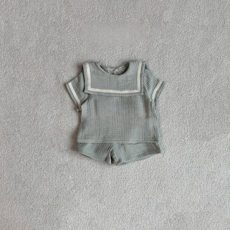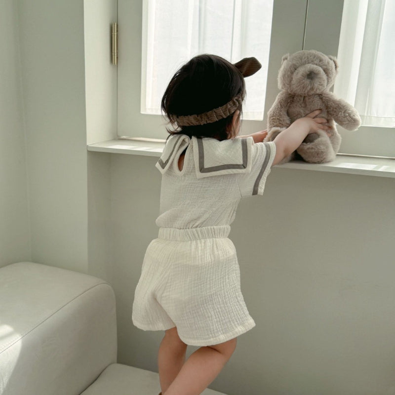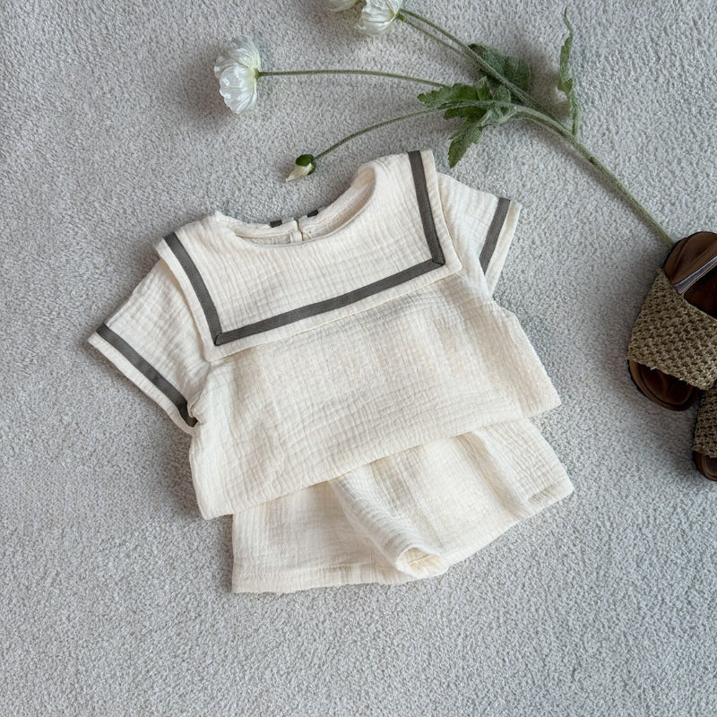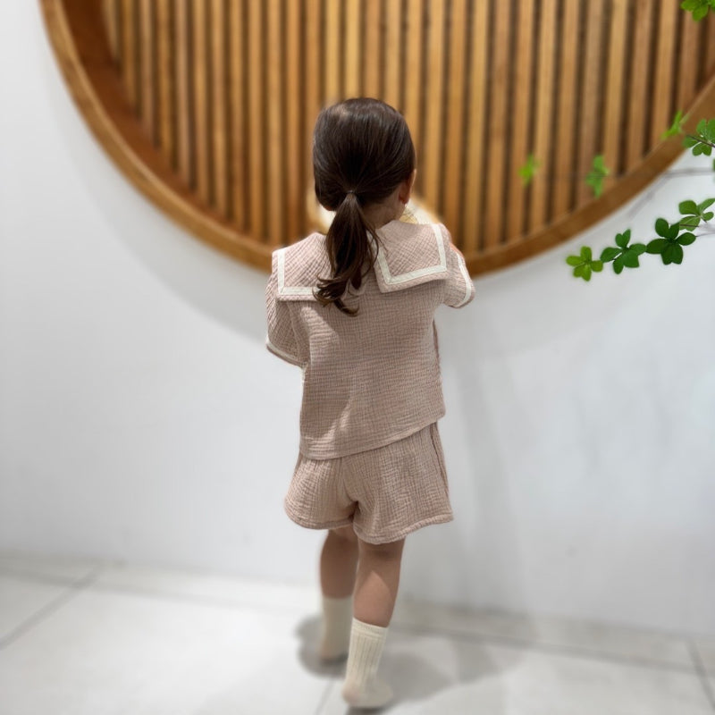 【BABY&KID】夏新作 コットンニット海軍襟セットアップSK071806