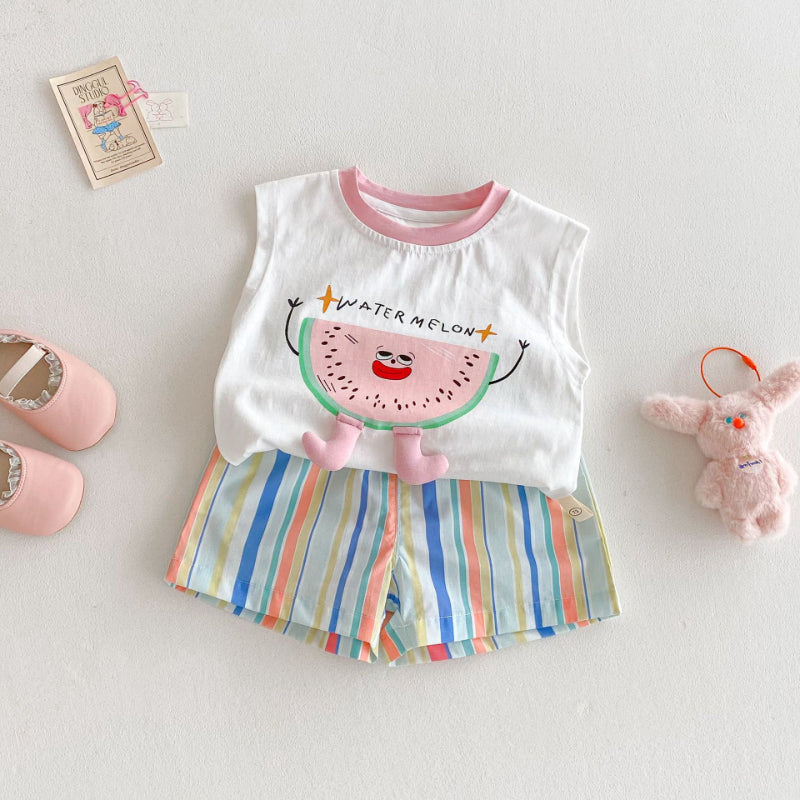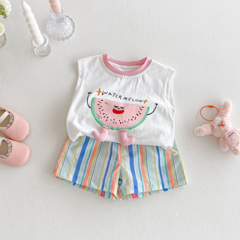 【BABY&KID】夏新作 スイカベスト、レインボーショーツSK080610