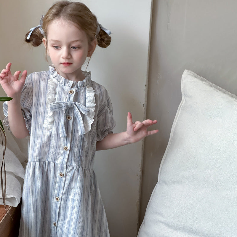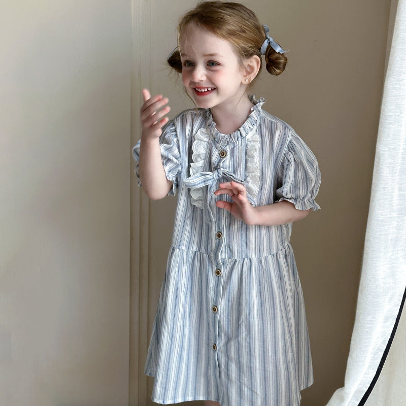 【BABY&KID】夏新作 スクール風ストライプシャツワンピースSKO71104