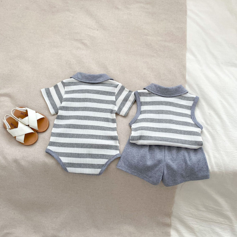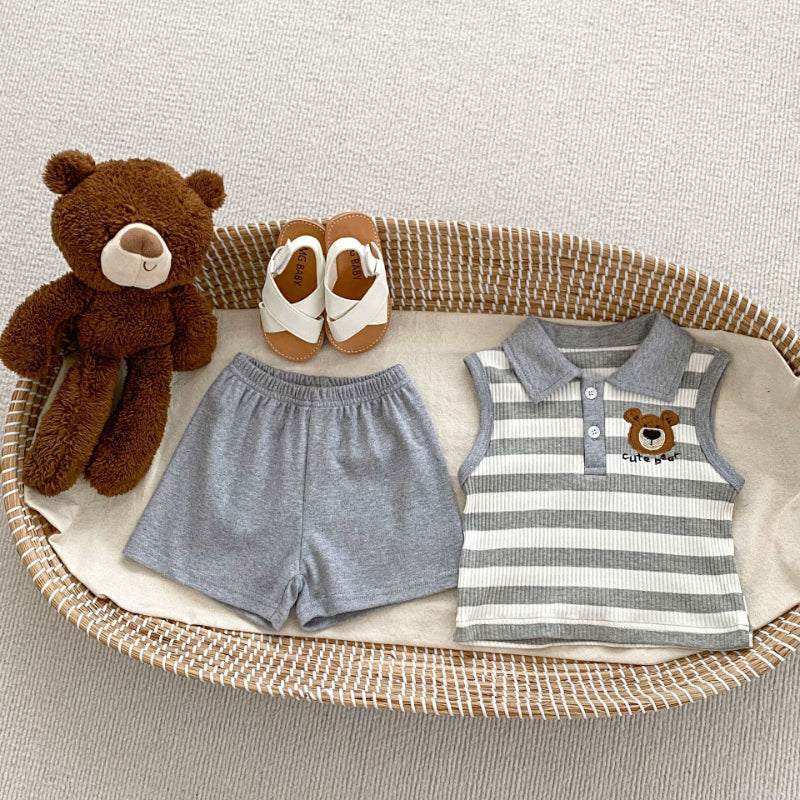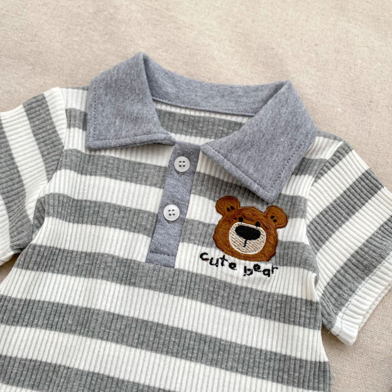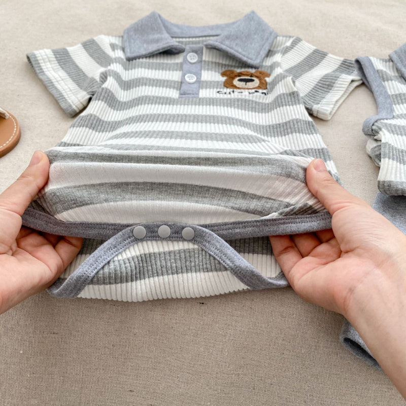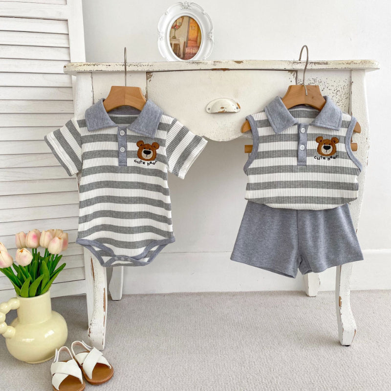 【BABY&KID】夏新作 ストライプくまロンパース、セットアップSK072524