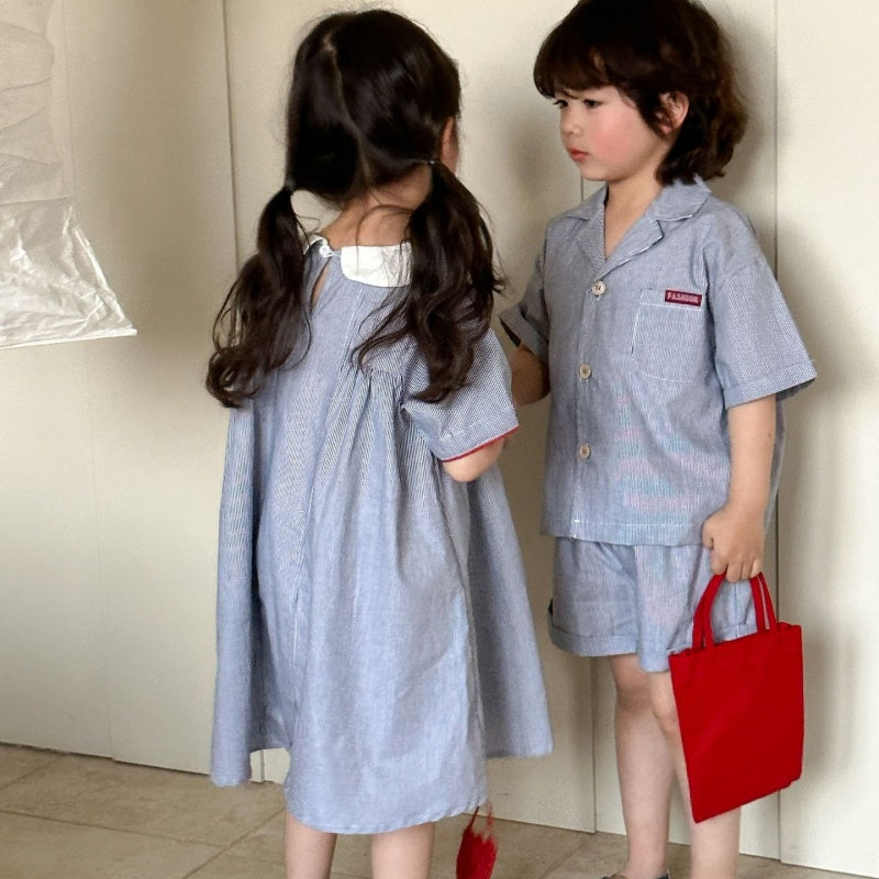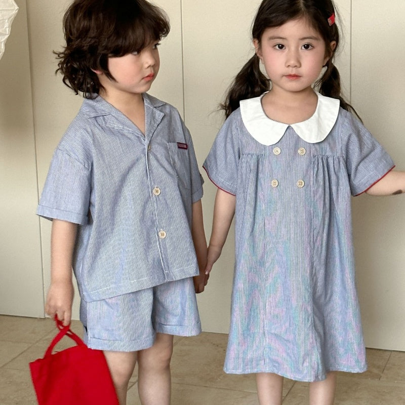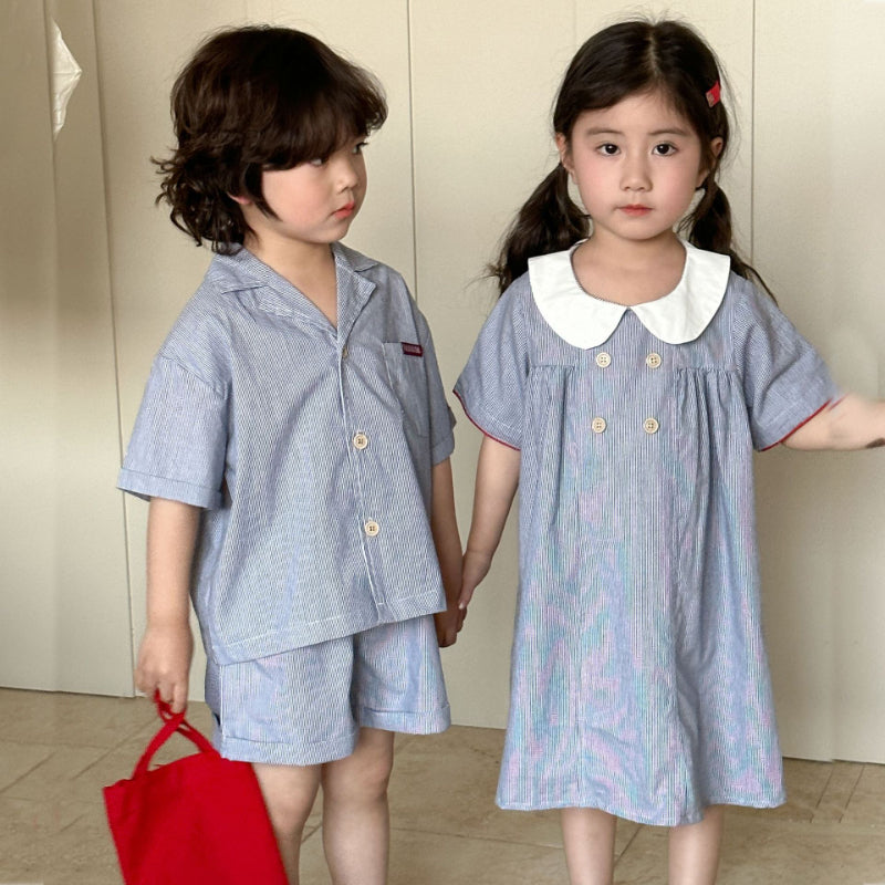 【BABY&KID】夏新作 ストライプシャツスーツ、ワンピースSK063020
