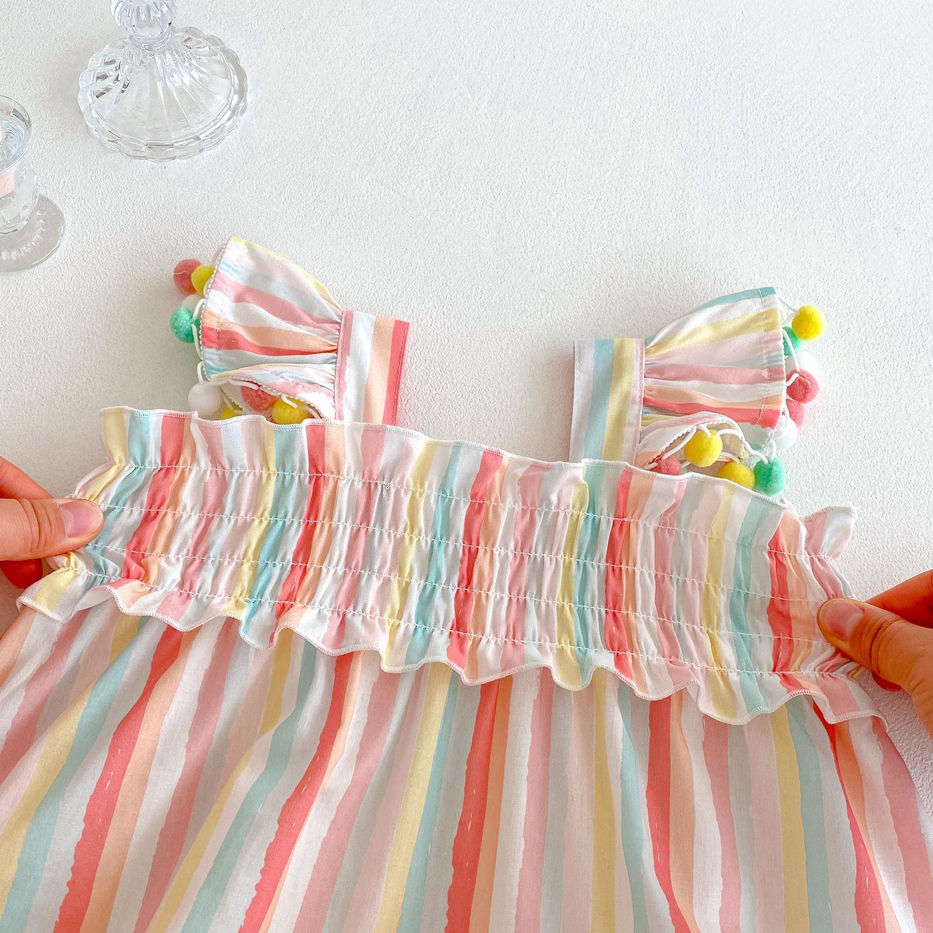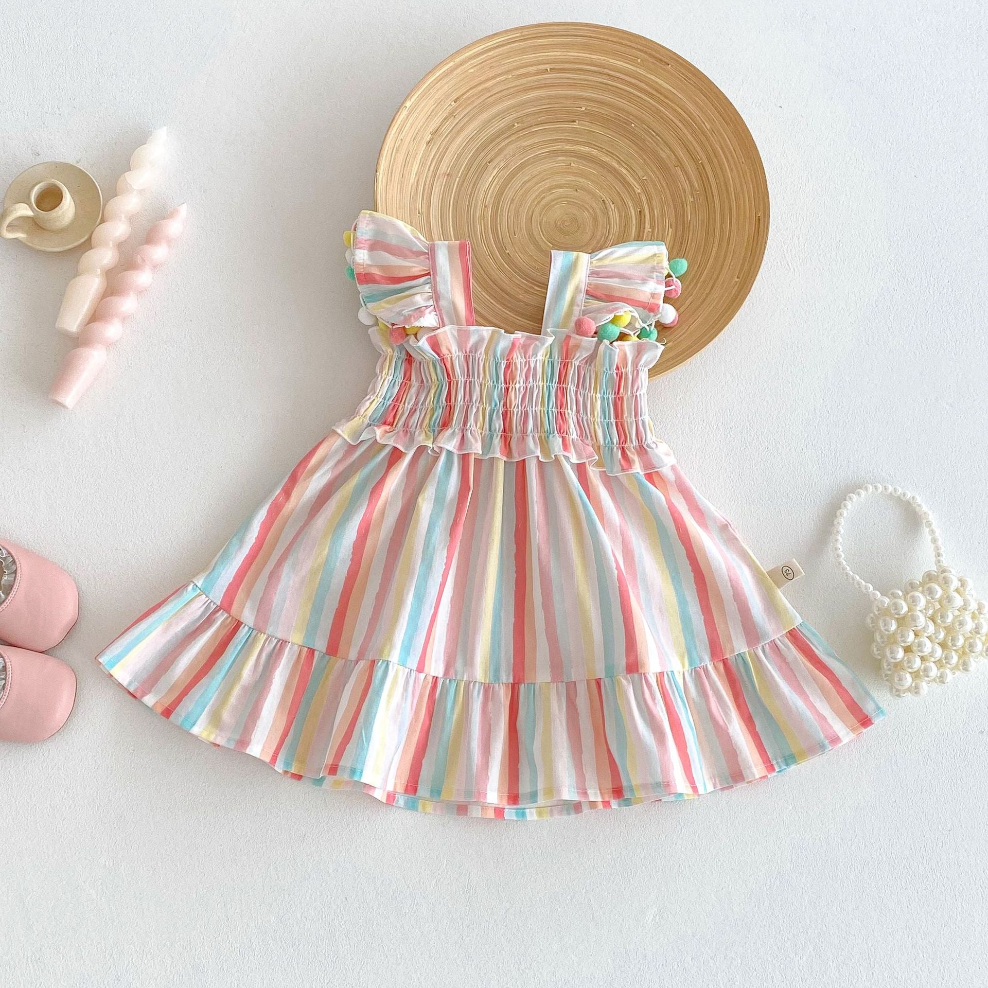 【BABY&KID】夏新作 ストライプ柄フリルスリーブワンピースSKO71202