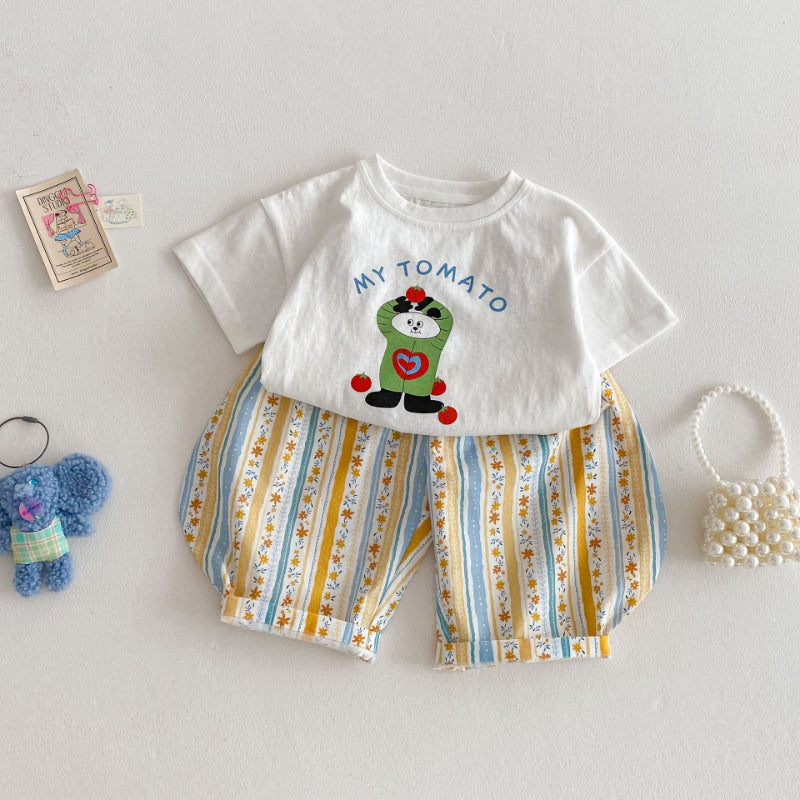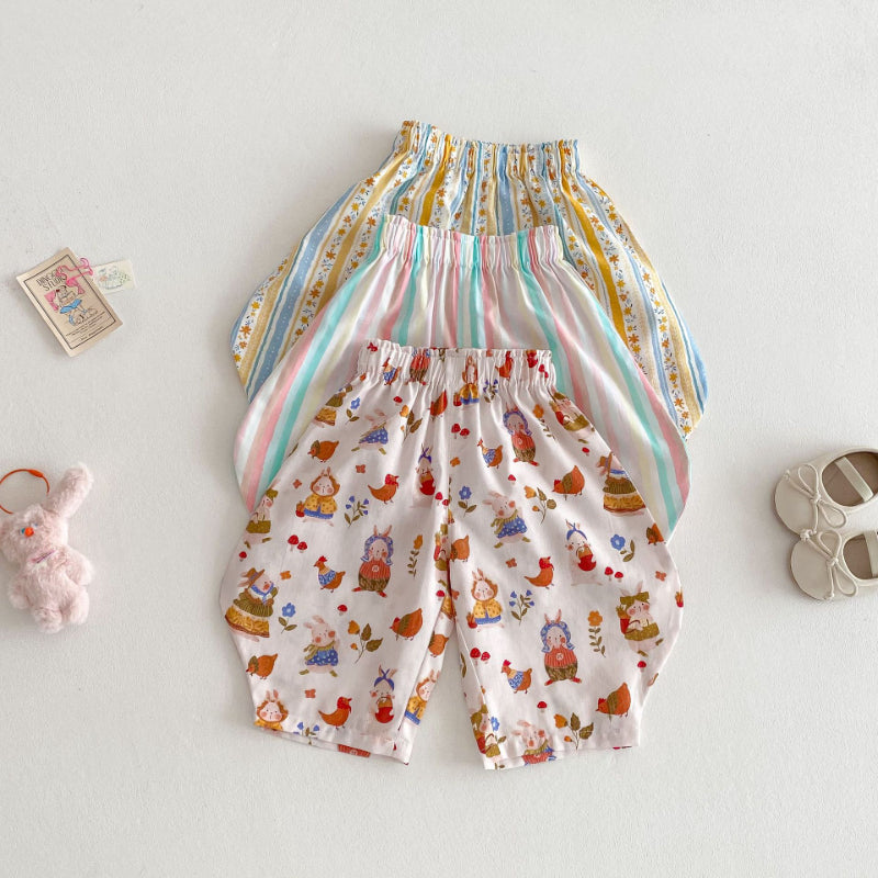 【BABY&KID】夏新作 ストライプ花柄カジュアルパンツSK070606