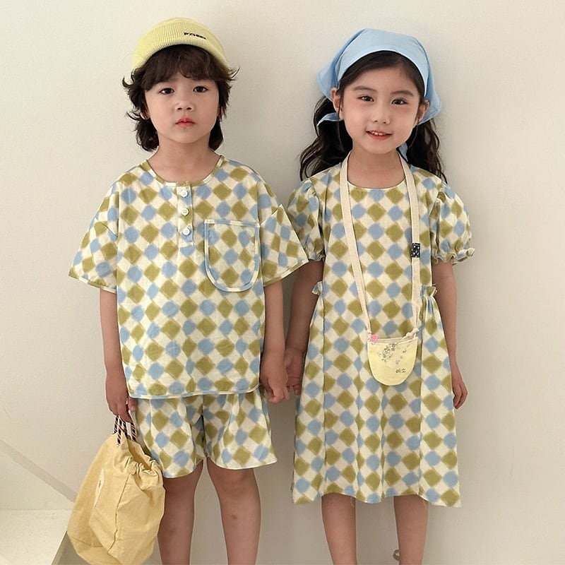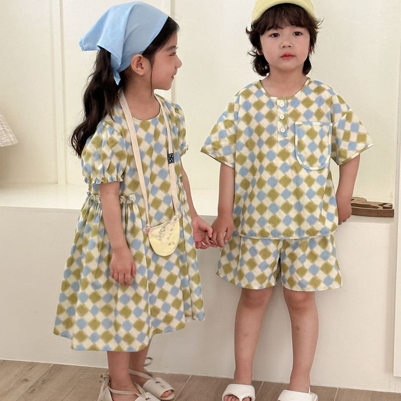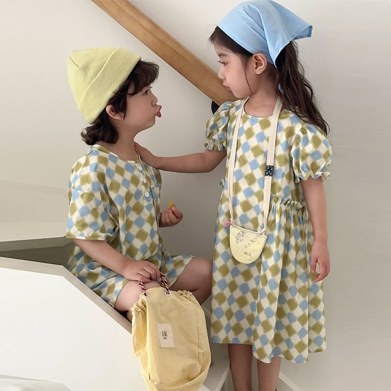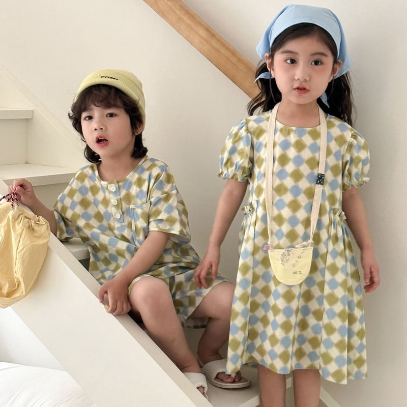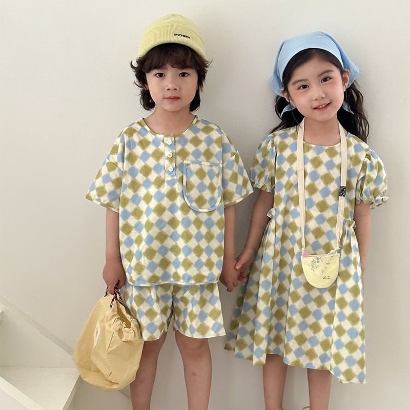 【BABY&KID】夏新作 チェッカーボードセットアップ、ワンピースSK063108