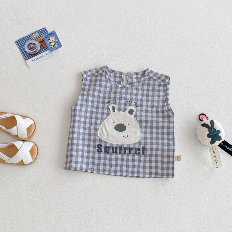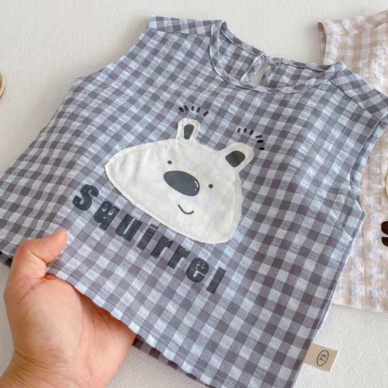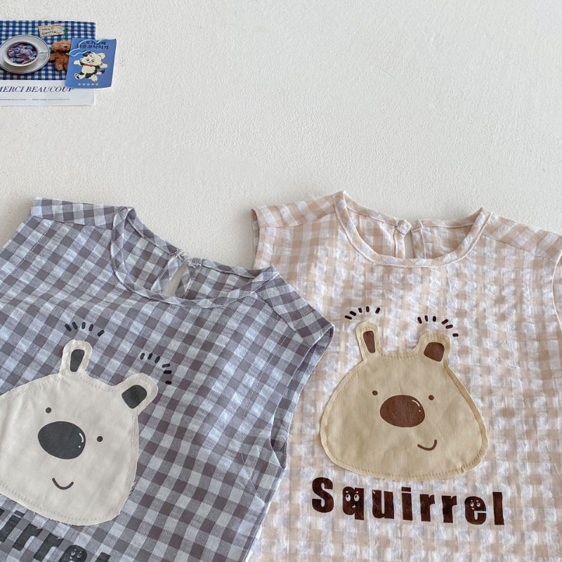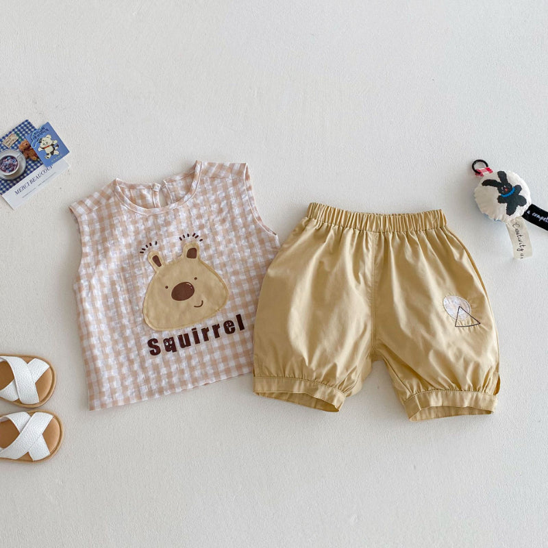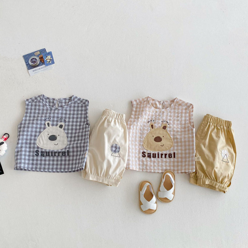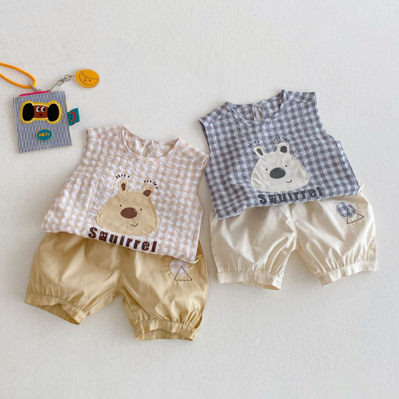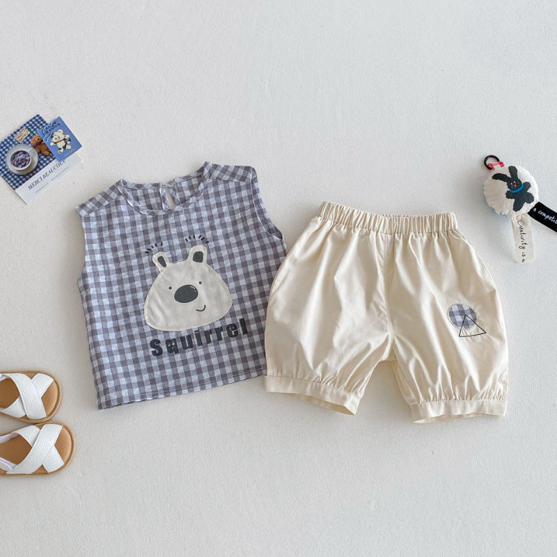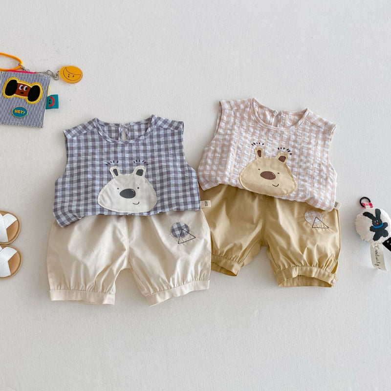 【BABY&KID】夏新作 チェッククマトップス&パンツセットSK080605